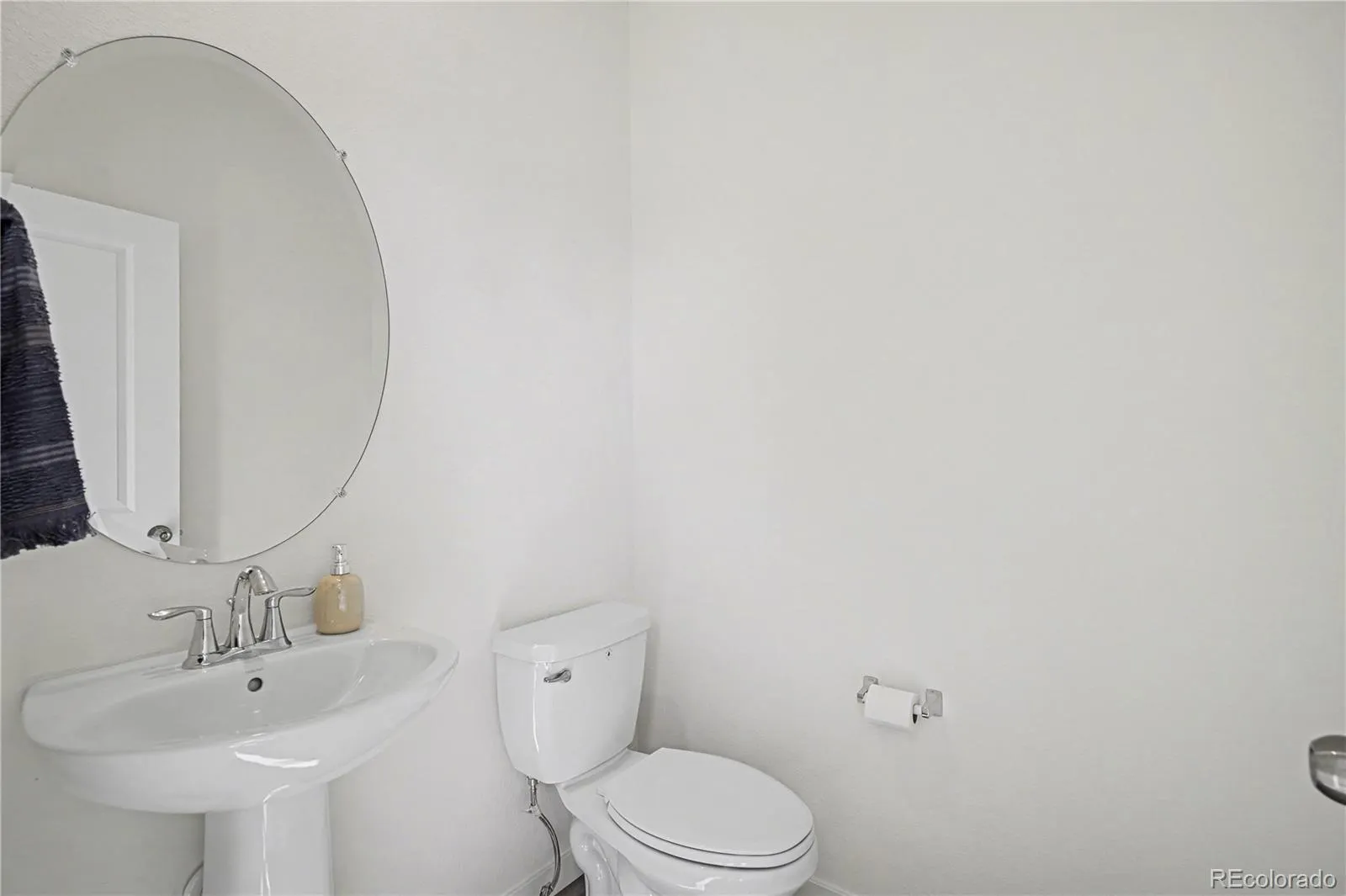 Step into a welcoming home where thoughtful design meets everyday comfort. The main level features a private bedroom with carpet, double door closet, and en suite full bathroom with tile flooring, quartz countertop, and a tiled tub and shower combination. Upstairs, vinyl plank flooring flows throughout a bright living space. The family room is filled with natural light from large windows and recessed lighting, perfect for relaxing or entertaining. The kitchen offers quartz countertops, a spacious island, pantry, and stainless steel appliances including refrigerator, microwave, electric range, dishwasher, and disposal. The primary suite provides a peaceful retreat with carpet, recessed lighting, walk-in closet, and en suite 3/4 bathroom with dual sinks, quartz counters, and tiled shower. A half bath and laundry area with washer, dryer, shelving, and tile flooring complete the level. Enjoy year-round comfort with central air conditioning. The two-car attached garage is fully drywalled, insulated, and has an automatic opener while the driveway snow removal is handled by the HOA. Outside, a composite back balcony deck overlooks a small park and green space. The backyard is fully fenced, xeriscaped with decorative rock and artificial turf, and features a flagstone pathway. A covered front porch and front sprinkler system add charm and low-maintenance ease. Located in the welcoming Aurora community where neighbors connect, green spaces are steps away, and everyday living feels peaceful and inviting.