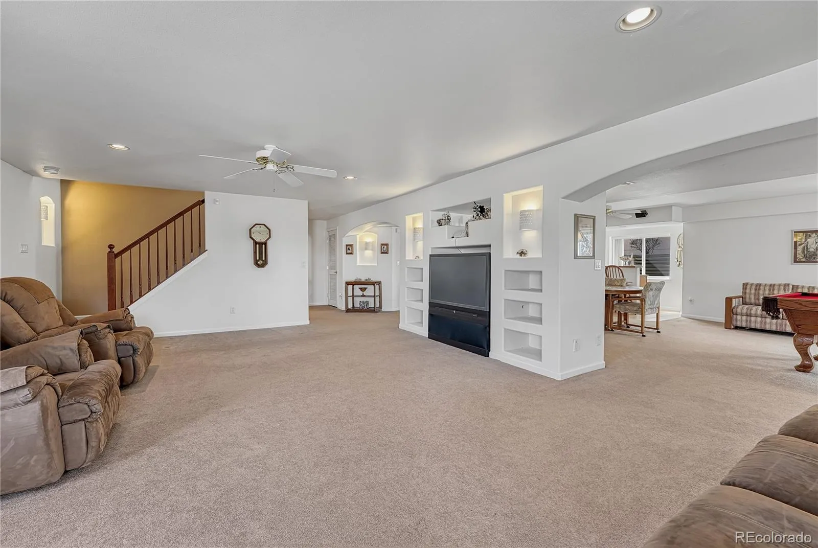 Enjoy low-maintenance main-level living paired with breathtaking views of Pikes Peak and the Front Range in this spacious 3,780 sq ft walk-out ranch featuring 5 bedrooms, 3 bathrooms, a 2-car garage, and a fully finished basement. Beautiful Brazilian cherry hardwood floors welcome guests from the entry into the kitchen, complete with slab granite countertops, 2 pantry spaces and large peninsula…refrigerator included! The great room offers a vaulted ceiling, gas fireplace, and walk-out access to a composite deck with a natural gas stub— a perfect place to enjoy the stunning mountain views. The living and dining areas both feature bay windows and vaulted ceilings creating a bright and open feel. The primary suite boasts a vaulted ceiling, walk-in closet, and walk-out to the covered deck. The adjoining 5-piece bath features granite countertops and a soaking tub. Two additional main-level bedrooms, each with vaulted ceilings and ceiling fans, a full bath and a well-equipped laundry room with cabinetry, sink, and garage access complete the main floor. The finished walk-out basement features a large 29ft x 20ft gathering space with wet bar and direct outdoor access. An adjacent 24ft x 16ft flex space offers endless possibilities for a media room, home gym, or hobby area. The basement also includes two additional bedrooms (one with a walk-in closet), a ¾ bath, and ample storage. Ideal for multi-family living! Additional highlights include central A/C, central vacuum, mature trees, and a desirable corner lot location in a cul-de-sac. HOA dues cover mowing, exterior water, trash, snow removal, pruning/fertilizing, and access to the Norwood Recreation Center with pool, tennis, and pickleball courts. Conveniently located with quick access to I-25 (10 minutes) and the Powers Corridor (7 minutes), makes shopping, dining, schools and entertainment easily accessible.