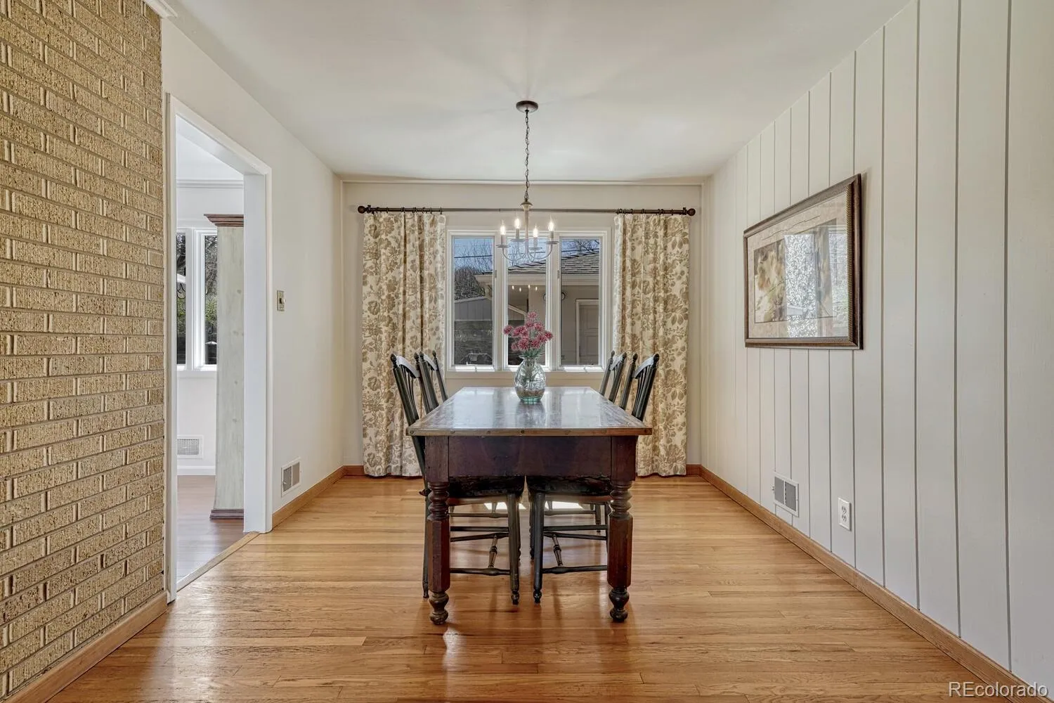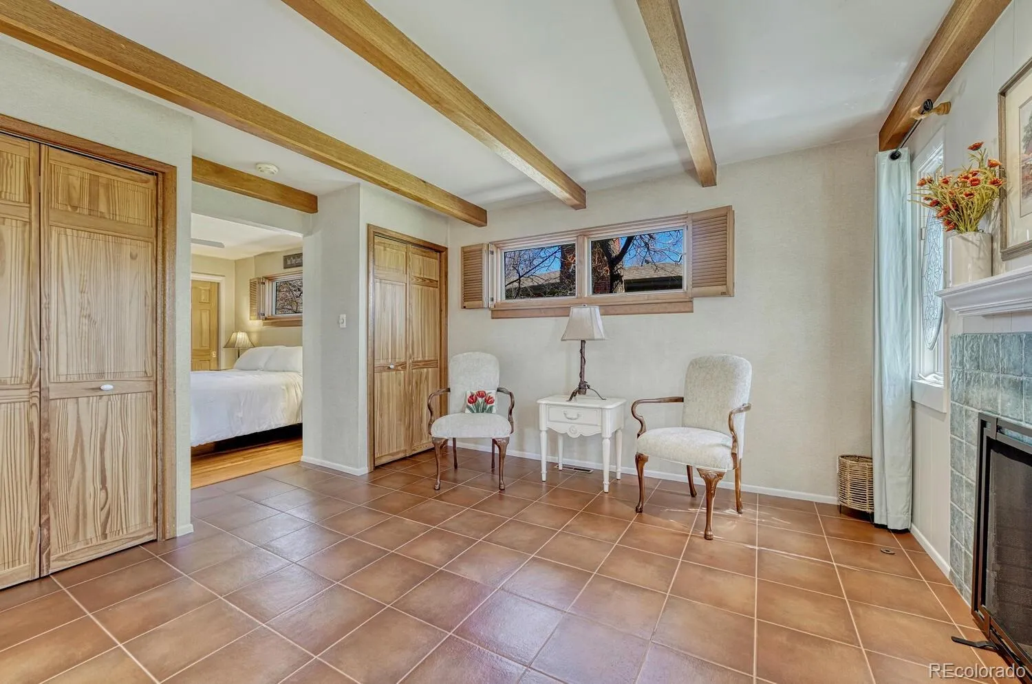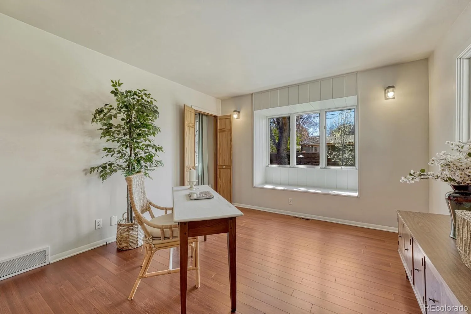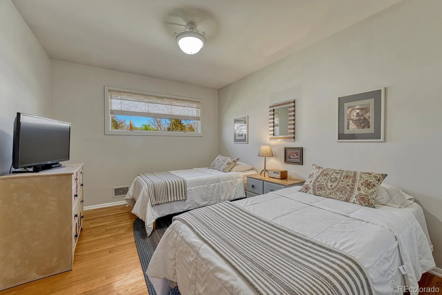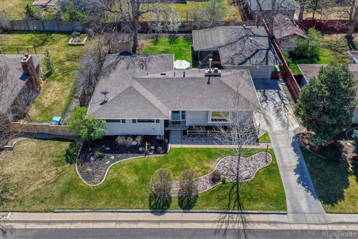 Immaculate and move-in ready, this beautifully maintained ranch offers 4 bedrooms, 2 bathrooms, and an oversized detached 2-car garage with workshop—ideal for hobbies, storage, or additional workspace. Situated on a private, fully fenced backyard just under a quarter acre in the highly desirable Cherry Creek School District, this home combines comfort, functionality, and charm. The updated kitchen is a true standout, featuring quartz countertops, stainless steel appliances, new shaker-style cabinetry, a built-in spice rack, farmhouse sink, and a sleek hood vent over the range. Hardwood floors flow throughout the main living areas, complemented by a cozy Vermont Castings wood-burning stove with a classic brick surround and a bright bay window that fills the living room with natural light. Enjoy seamless indoor-outdoor living with a walkout from the kitchen to your backyard oasis, complete with mature trees, a spacious wood deck, garden beds, and a covered porch off the detached garage/workshop—perfect for relaxing, entertaining, or enjoying Colorado evenings. The spacious primary suite offers a private retreat with an en-suite bathroom and a versatile attached tiled sitting room, complete with additional closet space and a gas fireplace—ideal for a home office, nursery, or quiet lounge. Meticulously cared for, this home reflects true pride of ownership with thoughtful updates and excellent maintenance throughout. Ideally located near a park with public tennis courts, grocery stores, restaurants, major commuter routes including I-25, two hospitals, and a convenient nearby school bus stop, this home offers both comfort and convenience in a prime location.