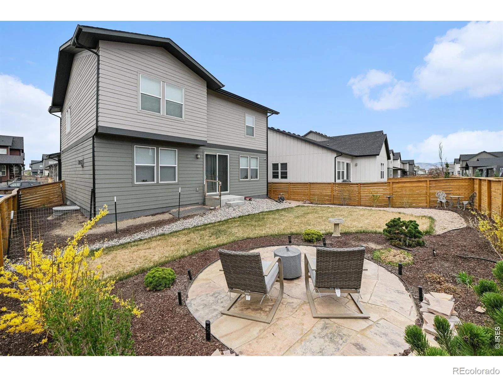 Welcome to this like new modern two story in the highly desirable Mosaic neighborhood with NO Metro tax! This beautifully designed home features 3 bedrooms, 3 bathrooms, with upgraded finishes. The large garage already has an EV charger installed! Enter your backyard oasis through your nine foot sliding patio door. It comes complete with a flagstone patio, sprinkler system, and a drip system to make your yard maintenance a breeze. The gourmet kitchen offers a large island, quartz countertops, a gas range w/hood, soft close cabinets, beautiful accent backsplash, and a walk in pantry. The open floorplan flows from the kitchen into the open dining room, and into the living room complete with an upgraded fireplace for those cozy Colorado winters. Enjoy two neighborhood pools, parks, bike paths, the convenience of being just minutes from downtown Fort Collins, shopping, and easy access to I25.