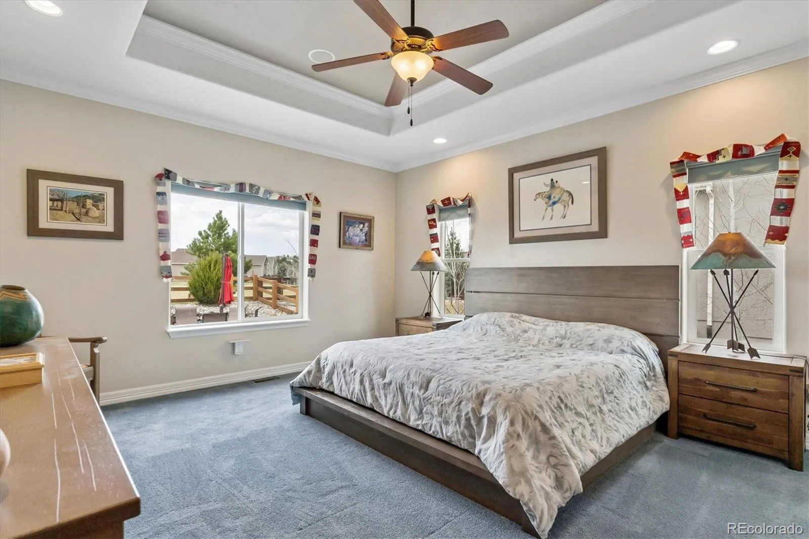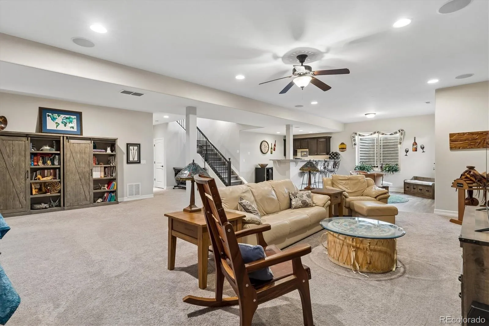 The ultimate move-in-ready, low-maintenance, spacious 6-bedroom ranch backing to large park on a quiet street just minutes from I-25. Experience effortless main-level living in this phenomenally maintained home with over $106K in thoughtful recent upgrades. Enjoy true peace of mind with a professional pre-inspection already completed and with all major systems updated, including a new roof, HVAC, water heater, kitchen appliances, Andersen front door, and more. With the perfect layout including high ceilings, large windows, & open-concept design, you’re welcomed at the foyer with engineered hardwood floors opening to the gourmet kitchen with induction range (with gas hook-up), double oven, large pantry & island with raised bar, flowing seamlessly into the living & dining rooms. The large primary suite with high tray ceilings connects directly to the 5-piece bathroom, adjoining through the walk-in closet to the laundry room with sink. The main level hosts three additional bedrooms, a Jack & Jill double vanity bathroom with quartz, a half-bath, and an insulated, well-equipped oversized 3-car garage. The lower level welcomes you with new luxury vinyl tile to an enormous family room with high ceilings, including a custom wet bar with granite countertops and sitting area, perfect for entertaining. The large basement-level secondary primary suite boasts a huge walk-in closet and adjoining full bathroom. The sixth bedroom could also serve as a gym or craft room, and the large storage room is expansive. The fully upgraded exterior with new landscaping, 14 trees, stamped concrete patio, lighted waterfall, gas fire pit, and decorative stone wall create a private and inviting outdoor retreat. More features–stucco siding, integrated smart home security, built-in speakers, upgraded electrical, jetted tub, window well covers, xeriscaped low-water landscaping, a secure doggie door, & Jeld-Wen storm front door. Convenience, comfort, and buyer confidence in one outstanding package.