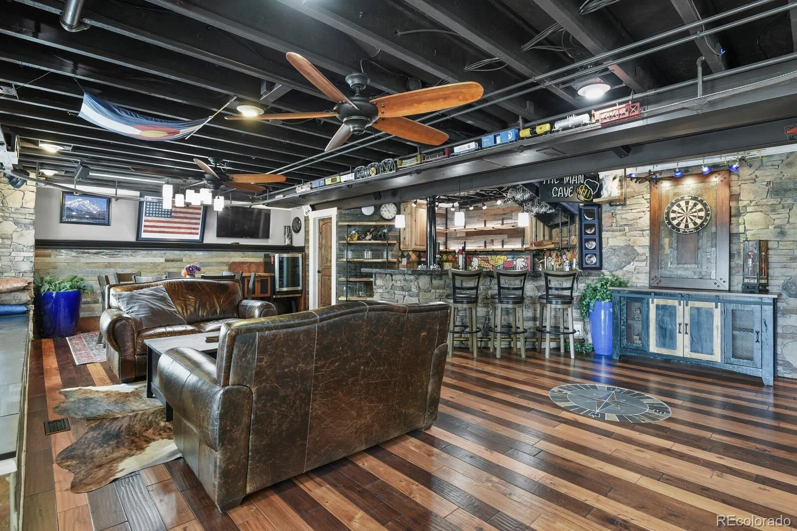 wood at ceiling and accent wall. The finished walkout basement is a dream mancave w/ wet bar with 3-tap kegerator,