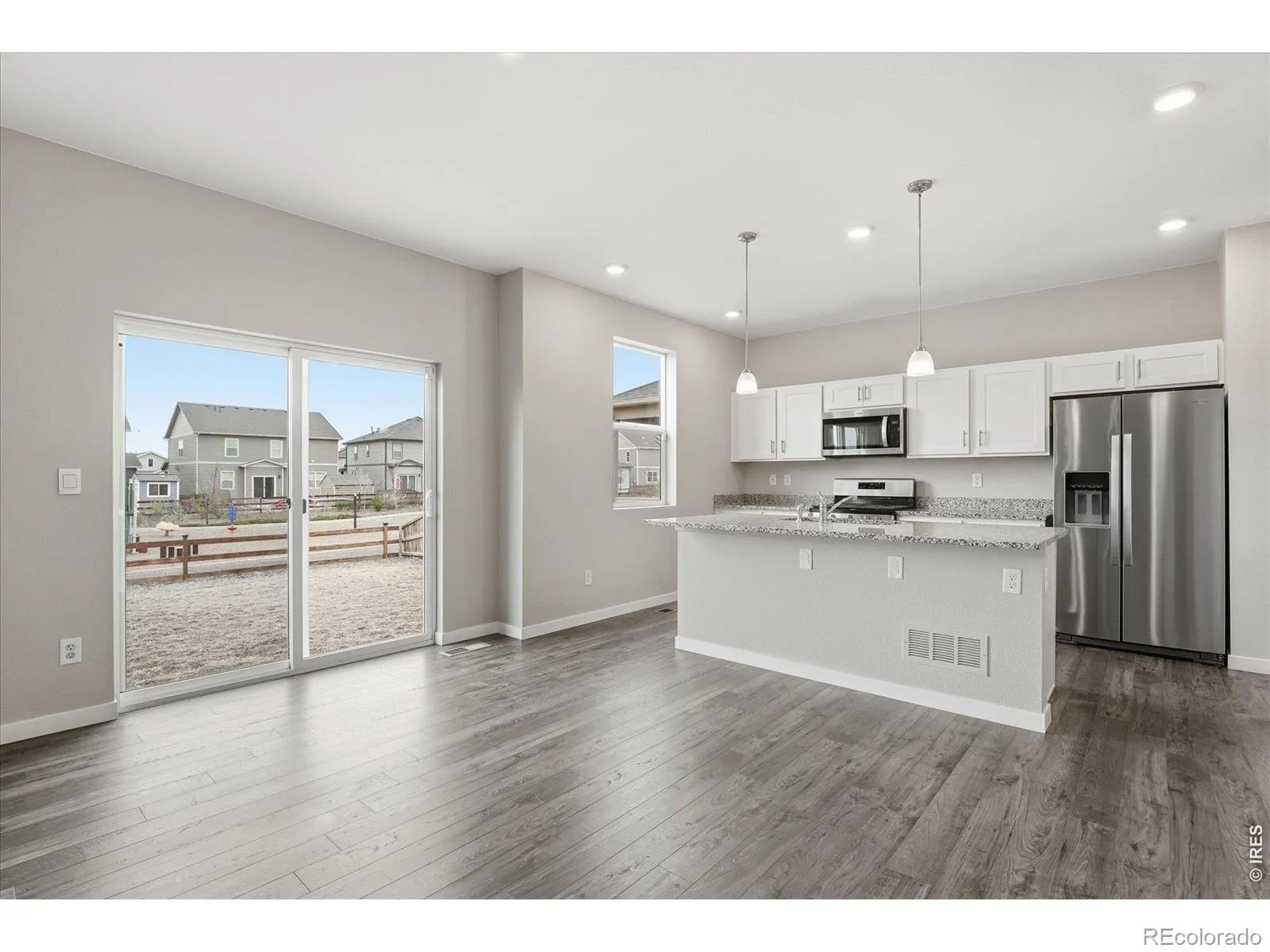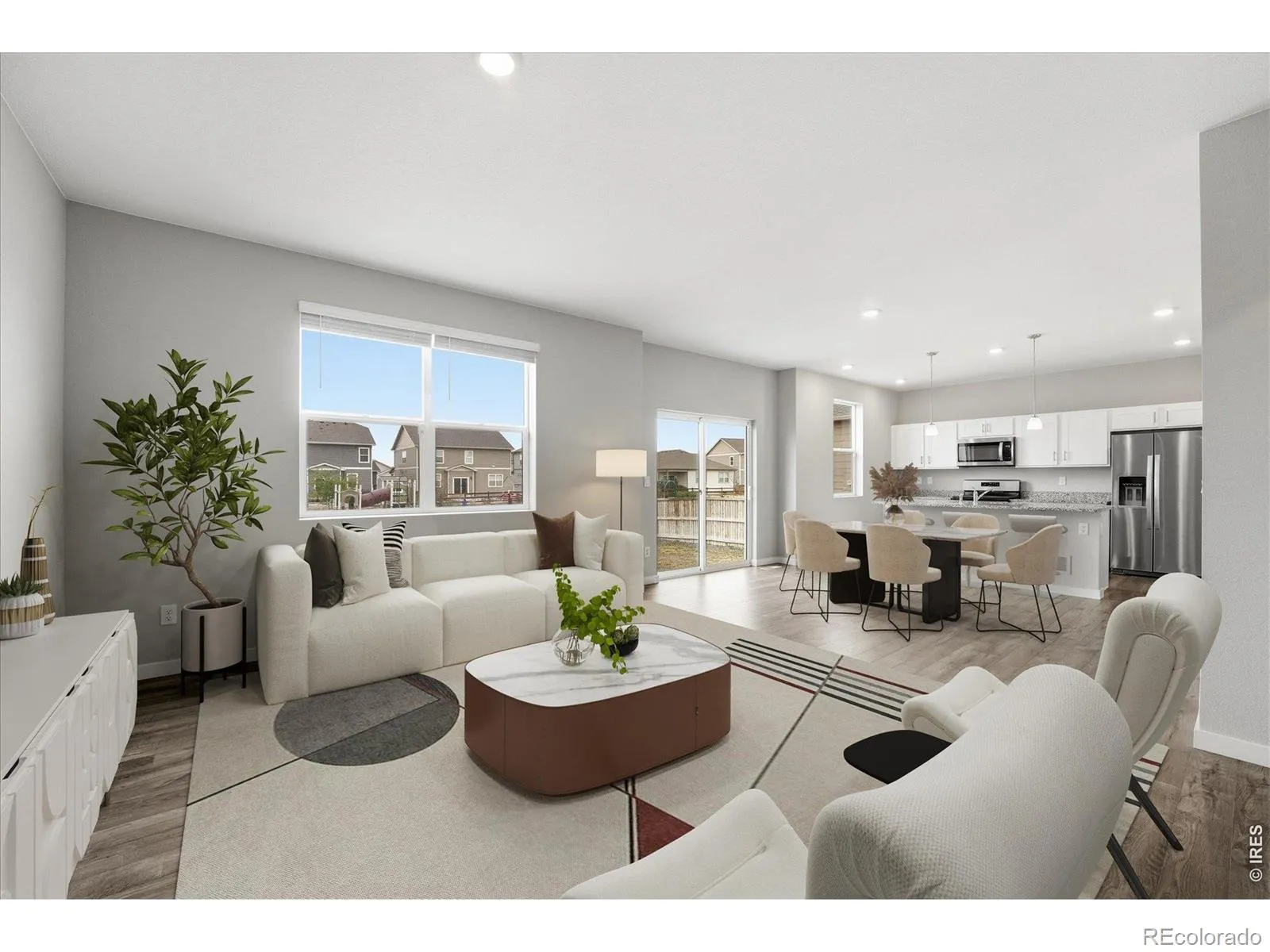 You WILL want to see this beautifully maintained, move-in ready residence ideally positioned along the neighborhood greenbelt with direct access to walking and biking trails and a nearby playground. With its desirable setting and thoughtful design, this home offers both comfort and connection to the open-concept great room that seamlessly blends the living, dining and kitchen spaces-perfect for everyday living or gathering friends. The kitchen is both stylish and functional, featuring crisp white cabinetry, large island, granite countertops and a spacious walk-in pantry to keep everything organized. Durable, low-maintenance luxury vinyl plank flooring extends throughout the main living areas, adding both elegance and practicality. Upstairs, the spacious primary suite provides a relaxing retreat with a private en-suite bath complete with dual sinks, solid surface counters and a generous walk-in closet. Two additional bedrooms-each with their own walk-in closets-offer flexibility for family, guests, or a home office. A versatile loft creates the perfect bonus space for a media area, playroom, or workspace, while the conveniently located upstairs laundry room and large linen/storage closet add everyday ease. Fenced backyard opens directly to the greenbelt and trail system-an ideal setting for outdoor gatherings. Additional highlights include an oversized two-car garage with built-in shelving and opener, newer carpeting and desirable southern exposure that fills the home with natural light. This is the one you’ve been waiting for-combining location, layout, and livability in one exceptional home.
