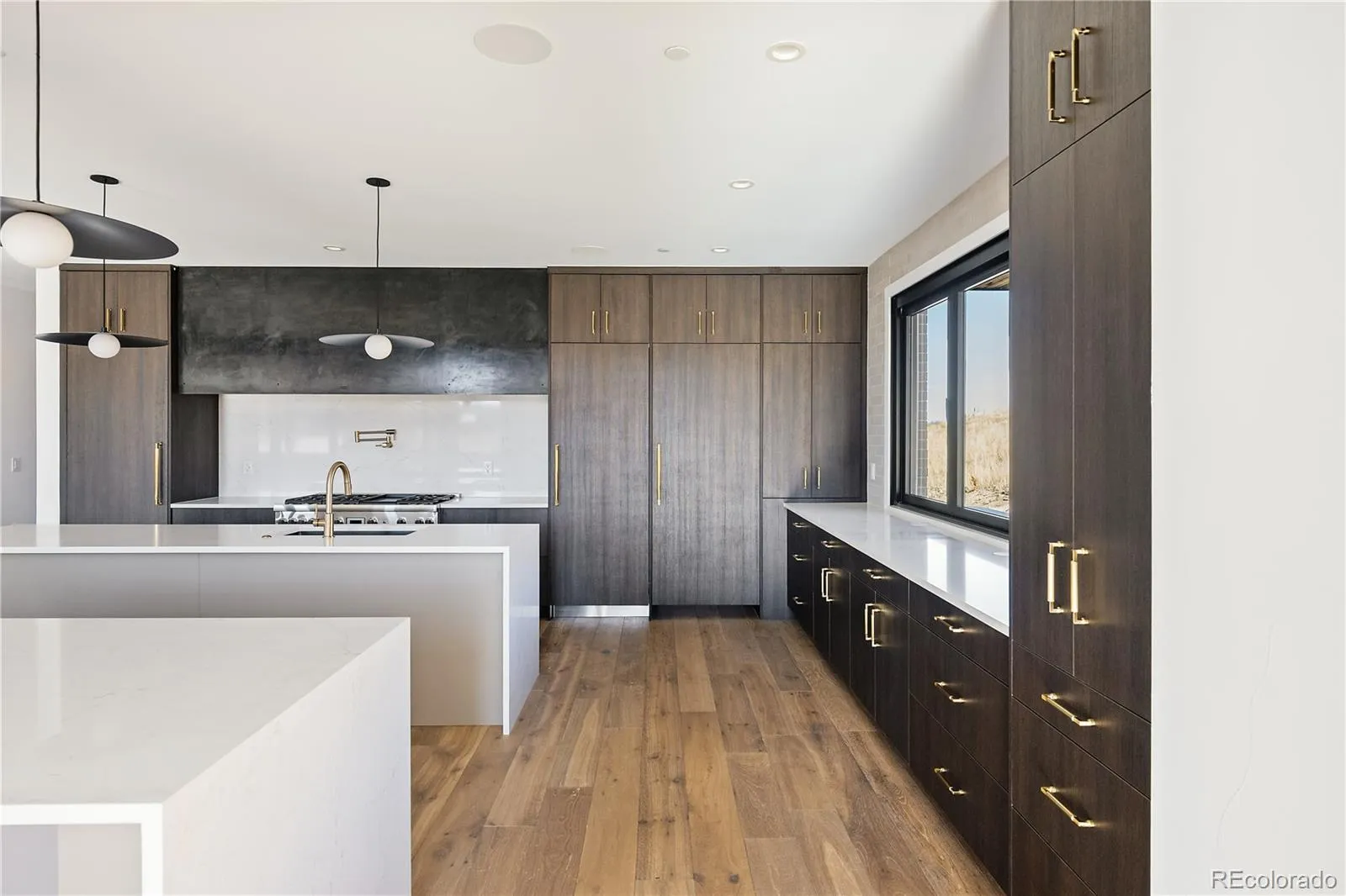 The chef’s kitchen is a culinary haven, equipped with abundant storage, a unique back kitchen complete with an additional dishwasher, and a hidden walk-in pantry to streamline your cooking experience. The thoughtful functionality is matched only by the beauty of its design.