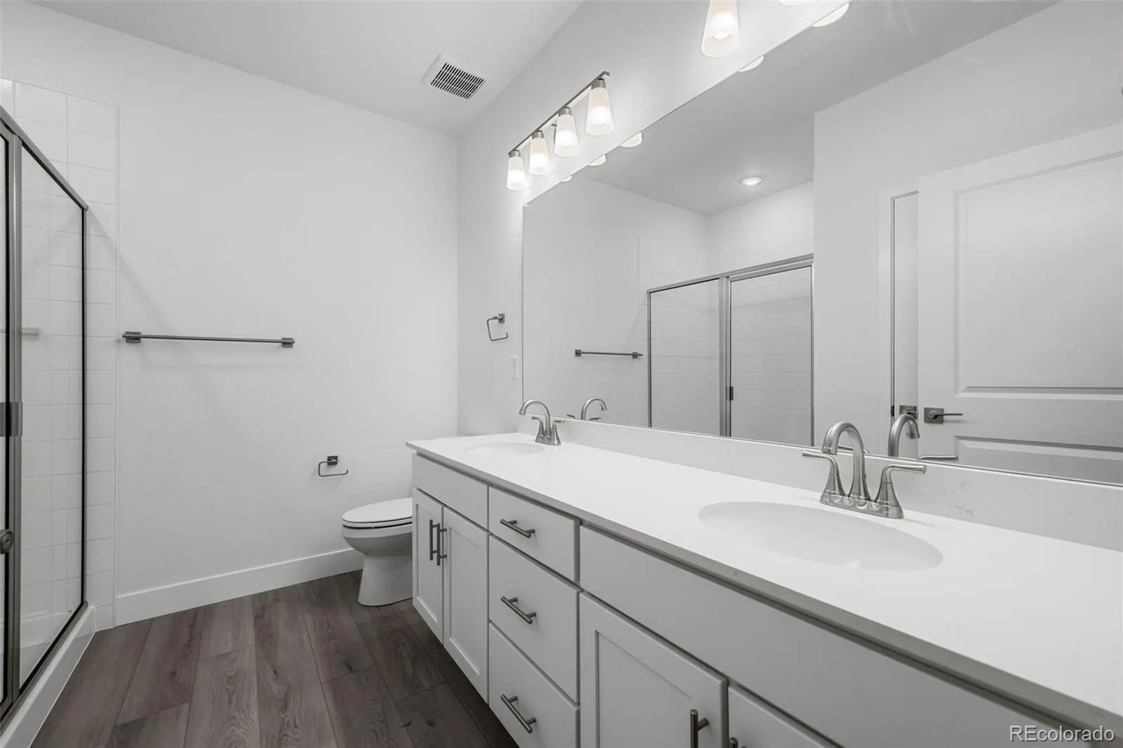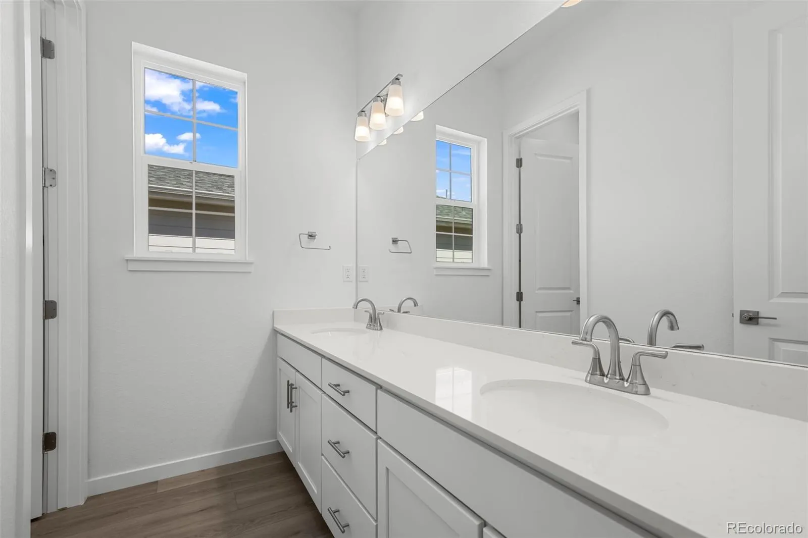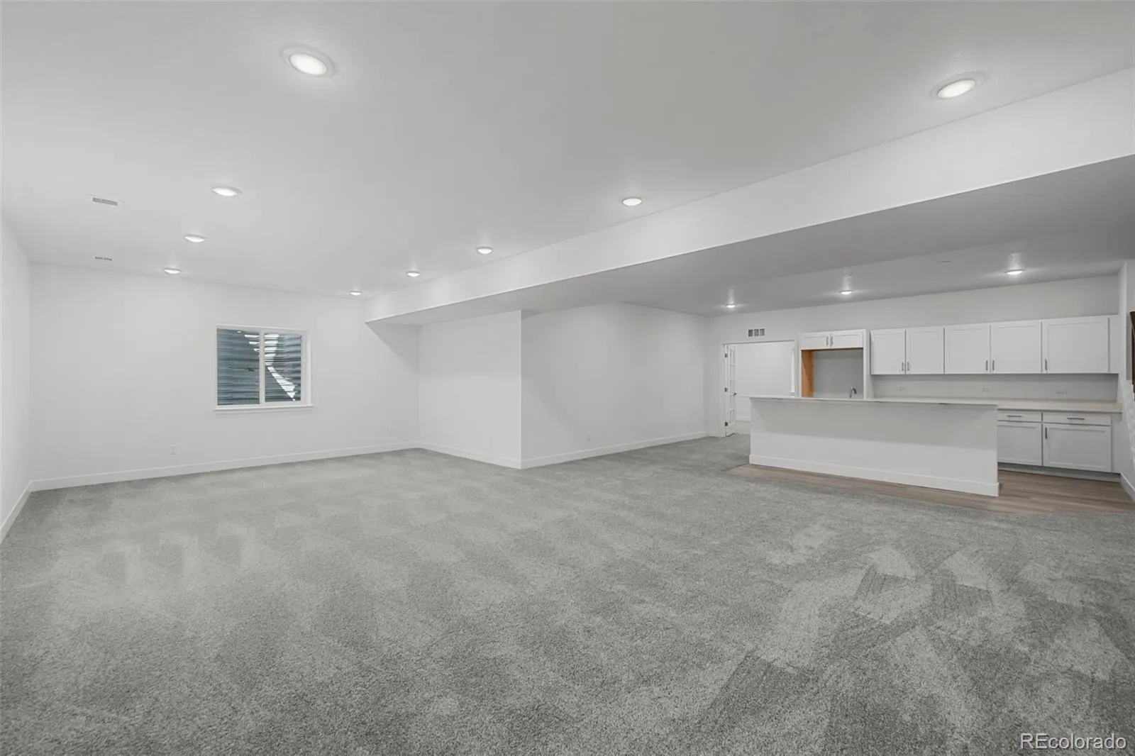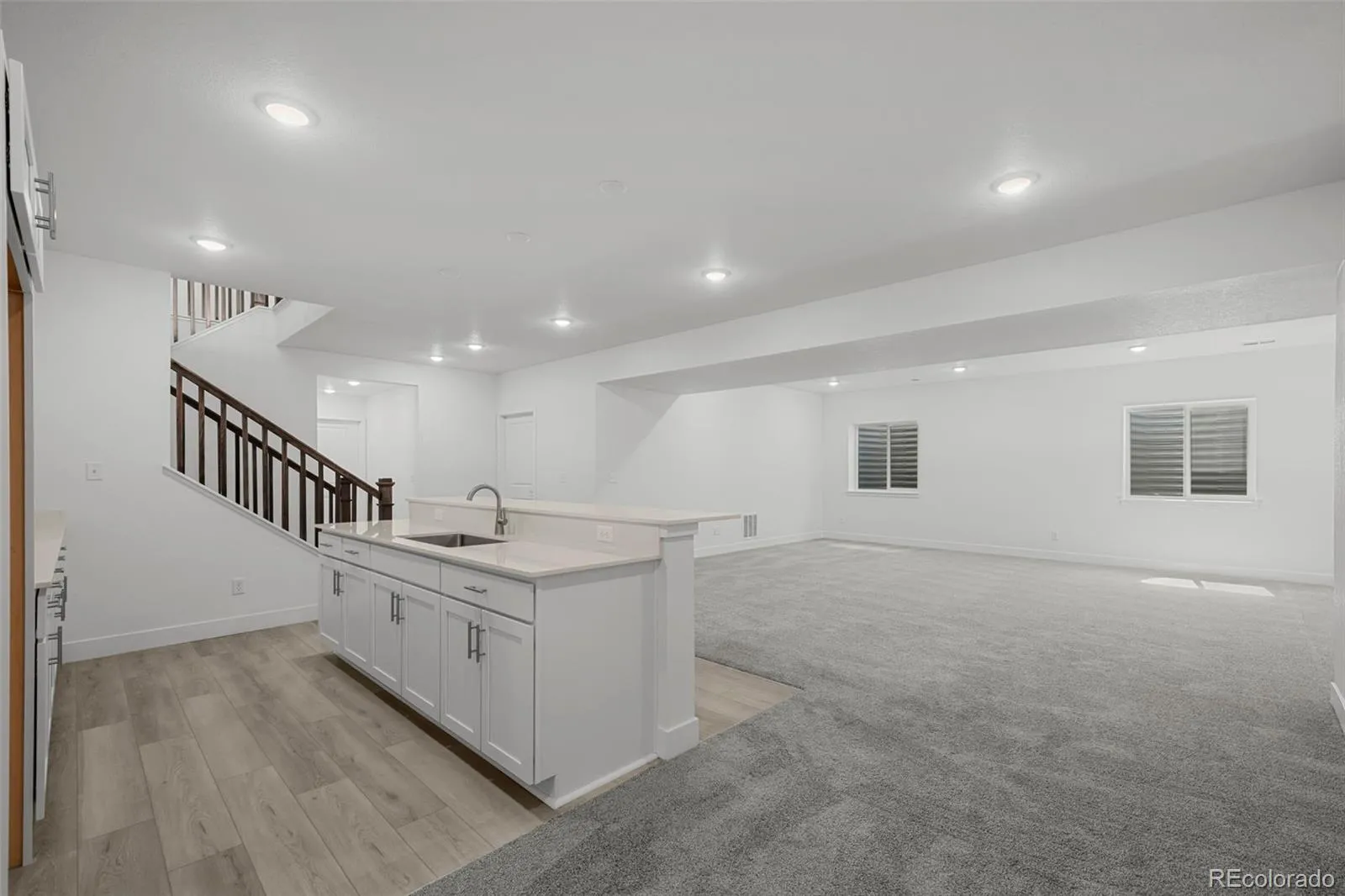 The main floor also includes a primary suite with dual vanities, LVP flooring, quartz counters, and dual walk-in closets, along with two additional bedrooms, a full bathroom. A convenient laundry room and powder room complete the main level. The finished basement is ideal for entertaining, featuring a spacious recreation room, a wet bar with quartz countertops, an additional bedrooms, a ¾ bath, and a versatile flex space that can serve as a fifth bedroom, office, or gym.