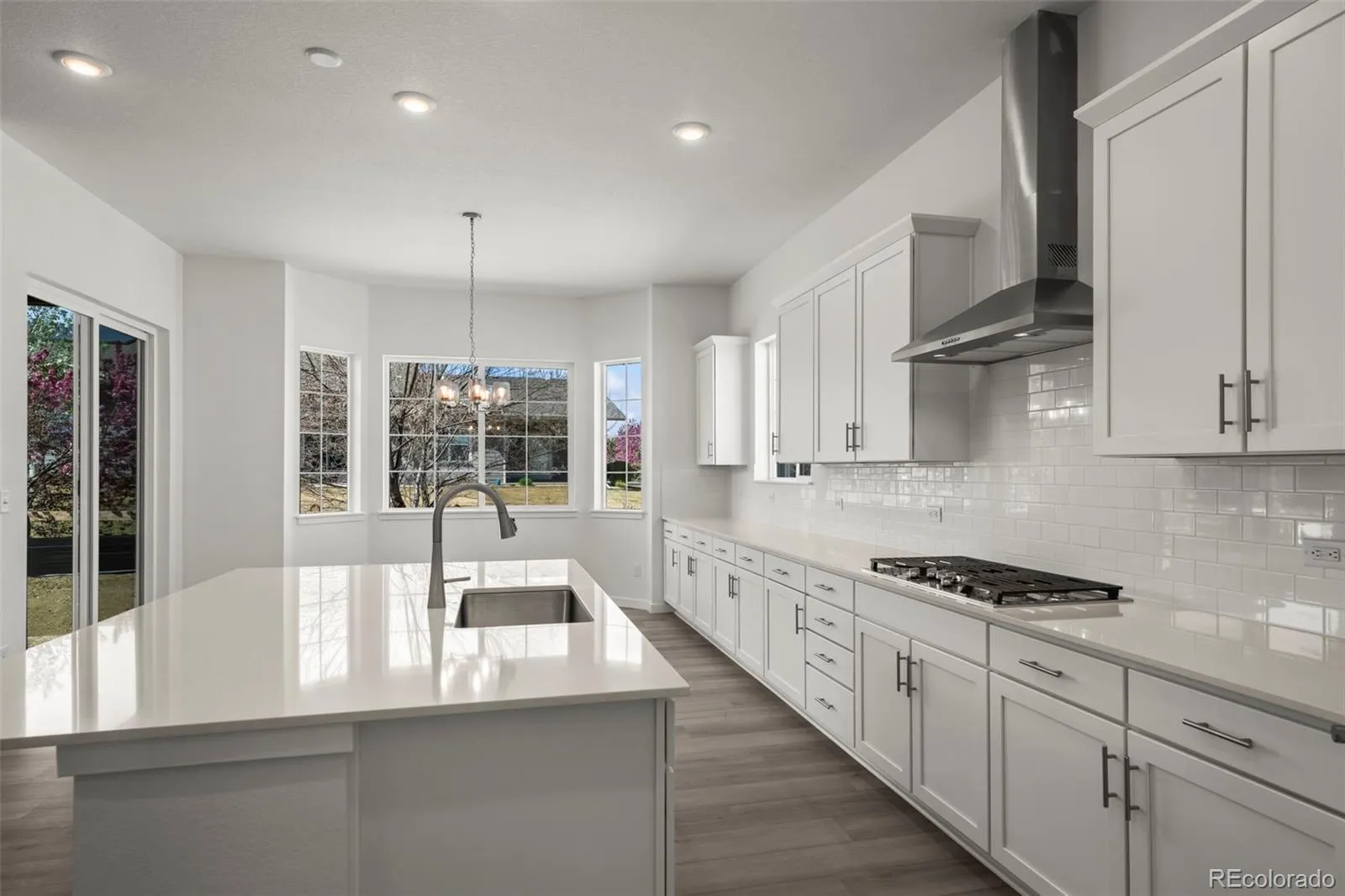 Stunning home with designer finishes, a 3 car garage, and fronts to a community open area. This home features a bright office with French doors and durable LVP flooring. The gourmet eat-in kitchen offers a large center island, quartz countertops, gas cooktop, double convection ovens, and a spacious pantry. The great room boasts a fireplace and natural light. The main floor includes a formal dining room, perfect for gathering.