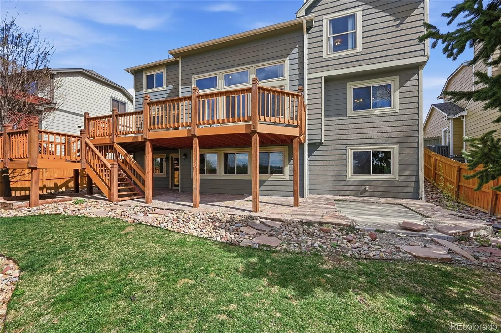 Experience refined Colorado living in this exceptional 5-bedroom, 4-bath walkout home perfectly positioned on a premium lot backing to serene open space with breathtaking mountain views. Designed for both grand entertaining and everyday comfort, this residence seamlessly blends elegance, space, and lifestyle. Step inside to a dramatic two-story family room bathed in natural light, creating an impressive focal point that flows effortlessly into the beautifully updated kitchen — ideal for gathering and hosting. Formal living and dining rooms add timeless sophistication, while the main-floor bedroom with adjacent ¾ bath offers flexibility for guests or multigenerational living. Upstairs, retreat to your luxurious primary suite featuring a fully updated spa-inspired bath — thoughtfully designed with elevated finishes and a serene, private feel. Three additional spacious bedrooms complete the upper level. The finished walkout basement expands your living experience with a kitchenette, expansive family room, oversized laundry area, and dedicated fitness space — perfectly suited for entertaining, extended stays, or multi-generational living. Outdoor living is unmatched with an oversized deck and multiple entertaining areas designed to capture Colorado sunsets and open space tranquility. The home is upgraded with a steel composite roof, and the exterior has also been freshly painted! Enjoy the ultimate convenience — walk to the community pool, tennis courts, and top-rated Cherry Creek schools. Just minutes to trails, the rec center, and Cherry Creek bike path, and only 10 minutes to Southlands, Costco, Trader Joe’s, and Whole Foods.
