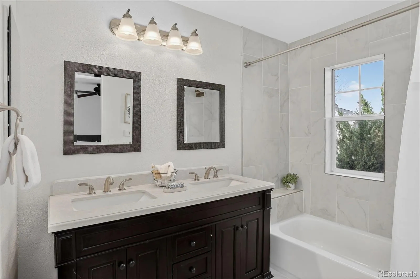 Upstairs, all four bedrooms are thoughtfully located on one level. The primary suite captures those incredible mountain views and includes dual sinks and a spacious walk-in closet. Three additional bedrooms offer flexibility for guests, home offices, or play space, and share a 3/4 bath complete with a brand new vanity.