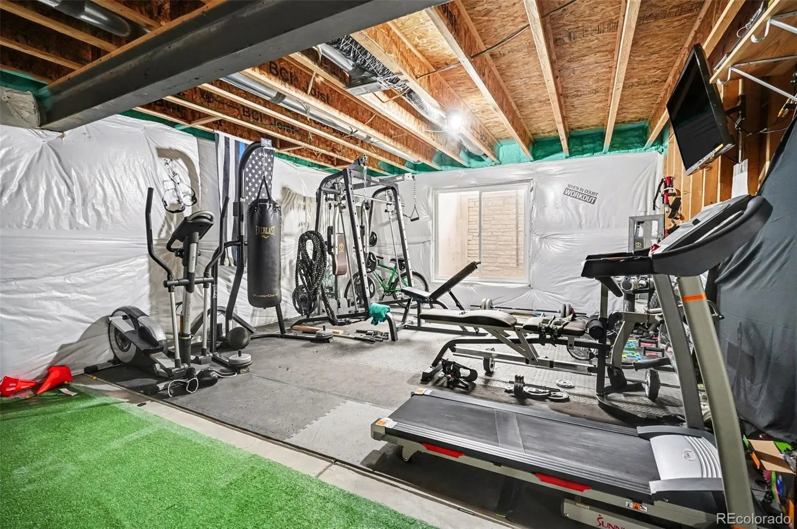 Downstairs, the expansive unfinished basement offers incredible potential, and is already roughed-in for a wet bar and bathroom. It also features multiple egress windows and ample space to customize to your needs. Step outside from the back door onto a stamped concrete patio, perfect for outdoor dining or relaxing, all within a fully fenced backyard that enjoys gentle eastern sunlight.