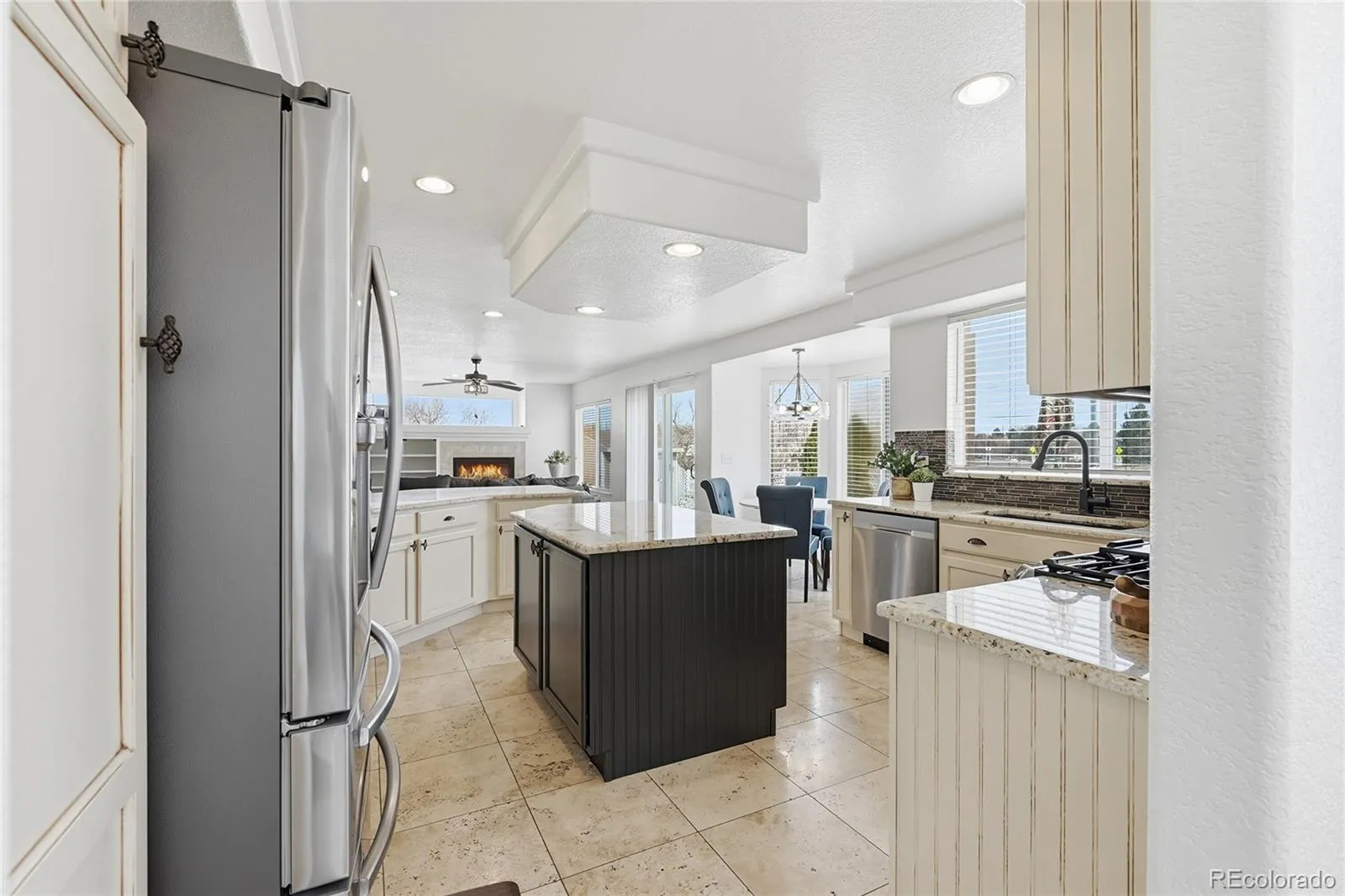 Welcome to this five-bedroom, four-bathroom home located in Green Valley Ranch! This home offers ample amounts of upgrades throughout, including fresh interior paint, new lighting and more! Step inside to a bright office space, ideal for those who work from home, flowing seamlessly into a spacious living room with vaulted ceilings and an open-concept layout. The formal dining room sits conveniently near the eat-in chef’s kitchen, which offers a large island and spacious countertops for prepping and cooking, ample cabinetry, and stainless steel appliances. Plus, a breakfast nook with a sliding glass door opening to the backyard for easy indoor-outdoor living. The family room offers plenty of space, natural light and a cozy fireplace with built-in shelving. A powder bathroom and laundry room with included washer and dryer complete the main level. Upstairs, the primary suite is a true retreat with plush carpet, a fireplace, two walk-in closets and a private, five-piece en-suite bathroom with a double vanity, soaking tub and walk-in shower. Two additional bedrooms, a full bathroom, and a versatile loft provide flexible living space. The finished basement expands your options with a large family room, kitchenette, and two additional bedrooms, one non-conforming, ideal for a playroom or office, and a full bathroom. This would also be an ideal setup for guests or multi-generational living. Outside, enjoy a private backyard oasis with a grass area and two spacious patios, making Summer gatherings and outdoor relaxation a dream. Located in the desirable Green Valley Ranch community, this home offers convenience with easy access to shopping, dining, and everyday essentials. Enjoy nearby parks, sports fields, trails and the Green Valley Ranch Golf Club, perfect for outdoor recreation. Commuters will appreciate quick access to Peña Boulevard, providing an easy drive to Denver International Airport, as well as I-70 for seamless travel to Downtown Denver and beyond. Welcome home!