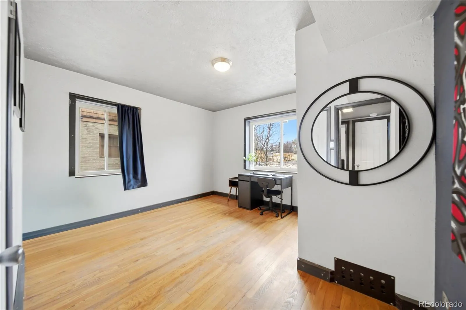 Inside, spacious room sizes, an open layout, and original hardwood floors create a warm and comfortable atmosphere. Artistic details, including custom-fabricated steel shelving and trim, add unique character and style. The primary bedroom easily accommodates a king-sized bed, while the second bedroom offers generous storage with double closets.