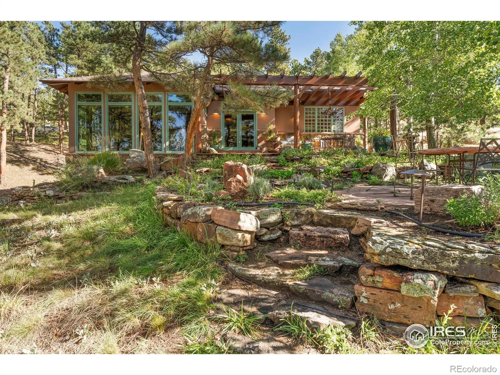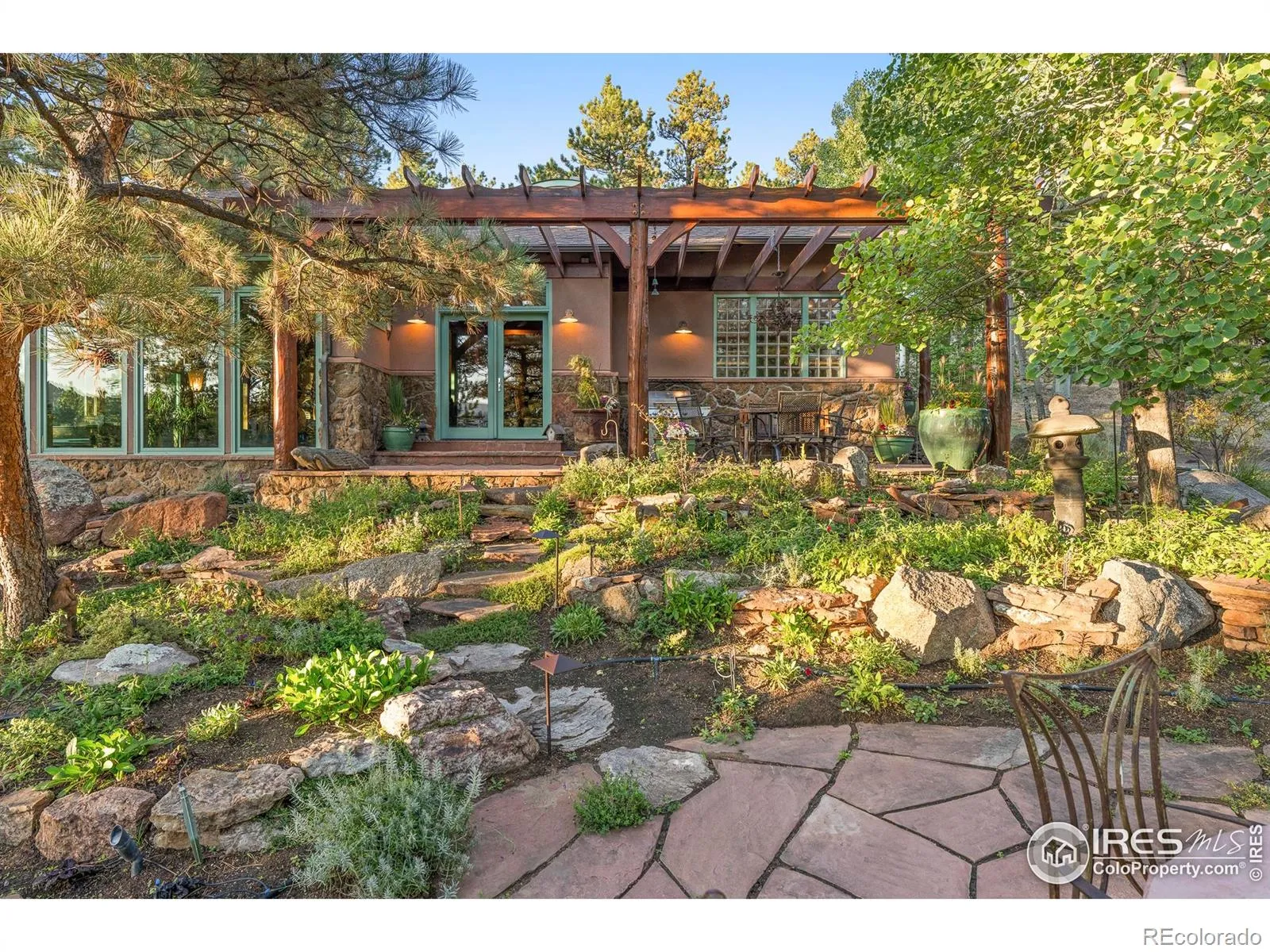 A peaceful sanctuary awaits off a quiet mountain road in Boulder’s coveted Seven Hills enclave. Just 2.5 miles up historic Sunshine Canyon & less than ten minutes from downtown, this retreat offers a rare blend of open skies, sweeping vistas, & serenity seldom found so close to town. Set on two acres & bordered by a neighborhood nature conservancy that preserves uninterrupted views & privacy, the property blends nature, artistry, & refined mountain living. Gardens, water features, flagstone patios, & inviting outdoor spaces create a setting designed for relaxation & gatherings. Artfully updated by award-winning architect Stephen Sparn, the residence reflects timeless elegance deeply connected to its natural surroundings. A climate-responsive design optimizes passive solar exposure in winter & reduces heat gain in summer, creating a naturally comfortable & energy-conscious living environment. Balinese-inspired elements add warmth & sophistication. Natural light, organic materials, & wood details define the interiors, while distinctive eyebrow dormers showcase rare craftsmanship. Multi-level living room centers around floor to ceiling windows framing woodland views & light-filled space. The chef’s kitchen feat. Sub-Zero & Viking appliances, a prep island, & breakfast bar ideal for daily living & entertaining. A private office & library with custom oak built-ins offer abundant study & workspace. The primary suite includes dual walk-in closets, a five-piece bath, & private patio access. Two upstairs bedrooms share a bath, while the lower level offers a rec room, fourth bedroom, bathroom, laundry w/ ample storage, & cedar closet-ideal for guests, au pair, or teen. A detached 2-car garage is topped by a finished studio or office w/ full bath & wide-plank cherry floors. Equal parts mountain refuge & refined residence, this Seven Hills property captures the spirit of Sunshine Canyon living-natural beauty, privacy, & easy access to downtown Boulder.