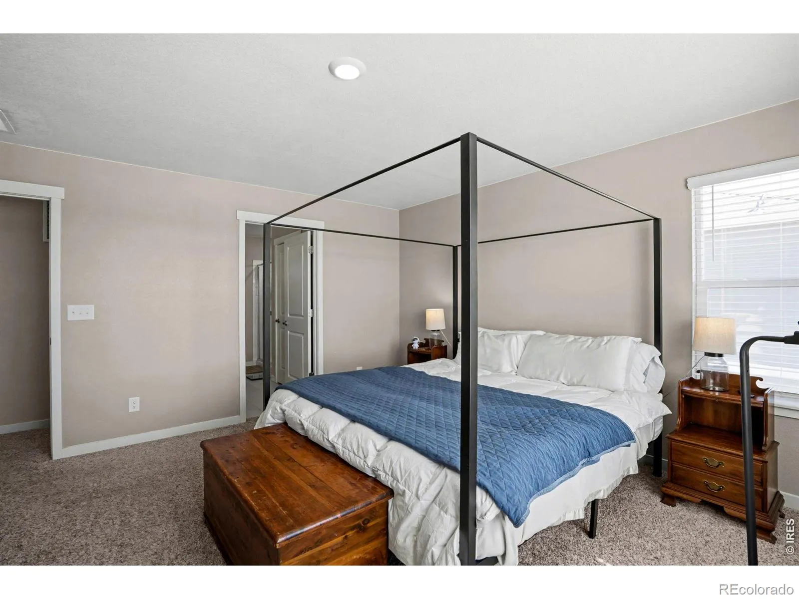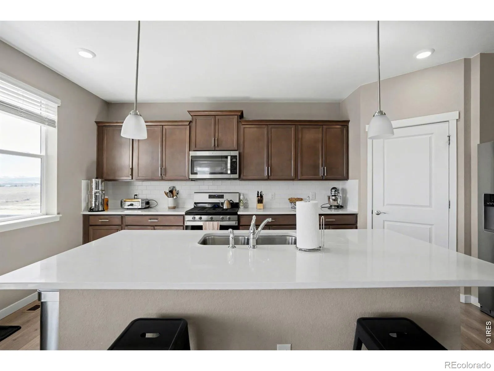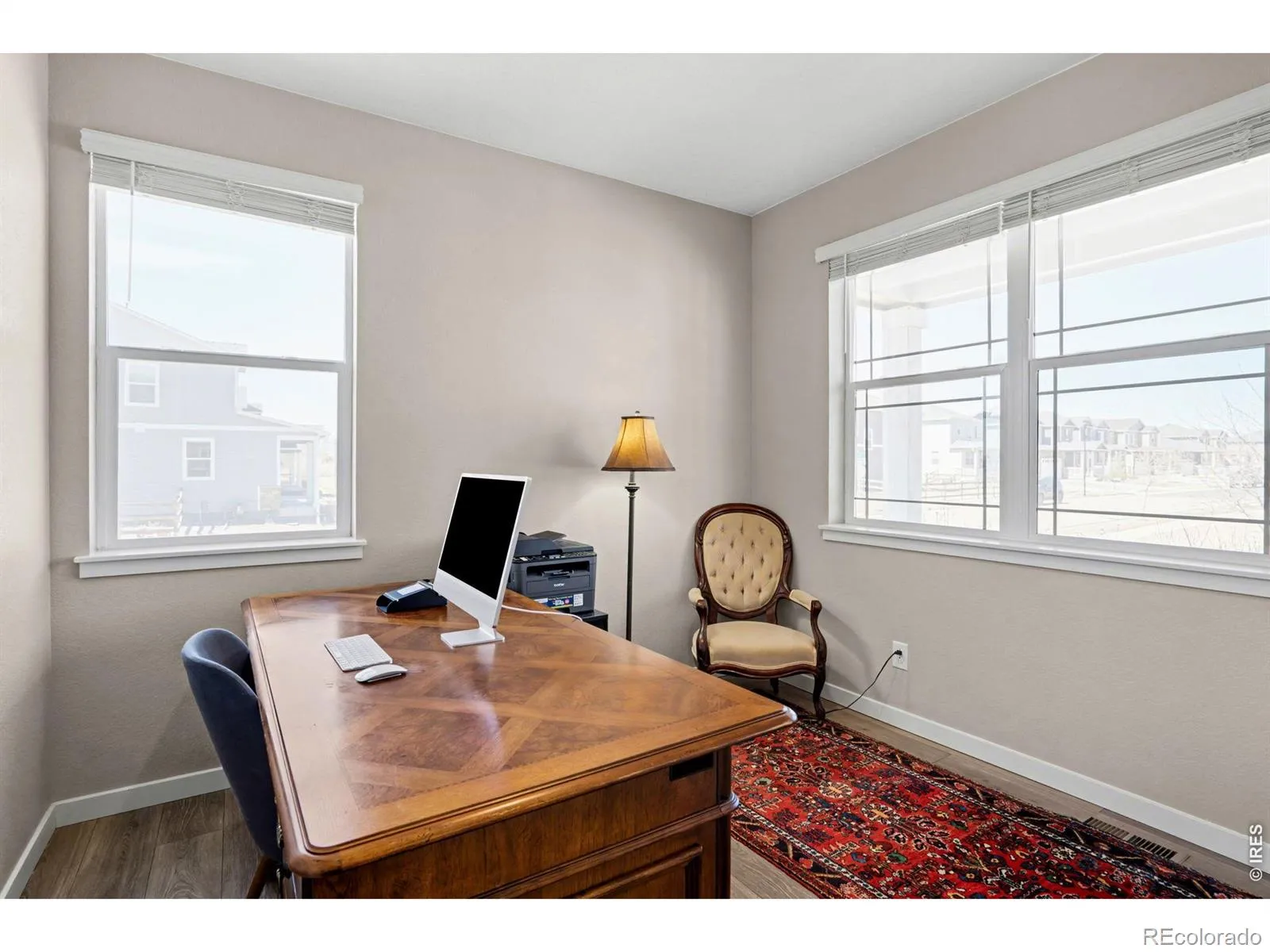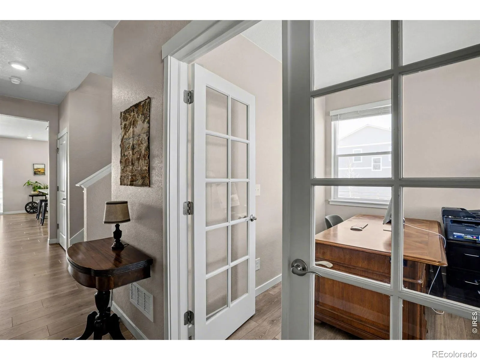 Stunning Fort Collins home with Rocky Mountain views! Ideally located and no metro district. This bright, open 4-bedroom, 3-bath residence features an inviting floor plan with laminate flooring throughout, a designated office with French doors, and abundant natural light in every room.The well-appointed kitchen is a chef’s delight, offering a gas range, quartz countertops, and a large walk-in pantry. Upstairs a versatile loft and four bedrooms provide dual views of the park and mountains, while quartz counters continue through the bathrooms for a clean, contemporary finish.Outside, enjoy a fenced backyard with irrigation, a covered back porch perfect for morning coffee or evening entertaining, and direct access to the trail just over the fence. The community enhances daily life with two parks, a playground, and scenic walking trails.Conveniently located minutes from Timnath Middle-High School and I-25, and only a 10-minute drive to Old Town Fort Collins, this home blends modern comfort, outdoor lifestyle, and exceptional location.
