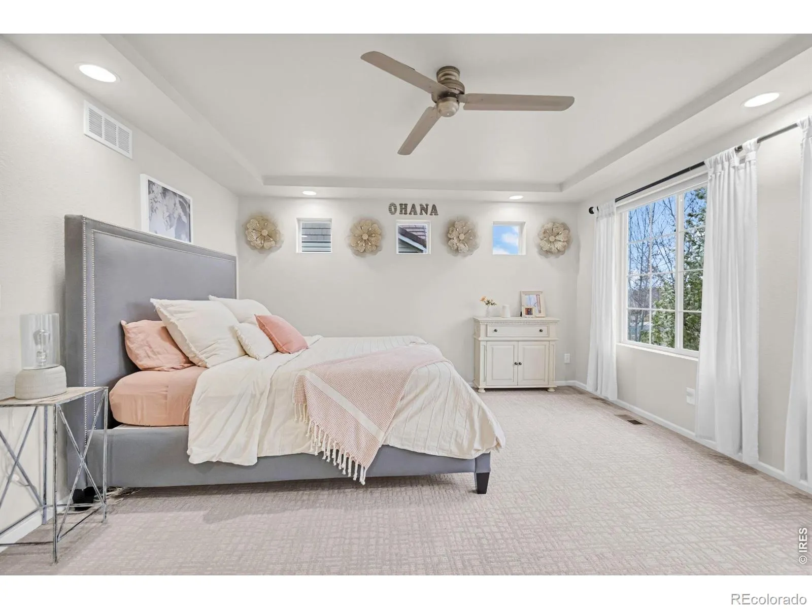 Welcome to this beautifully upgraded home featuring a spacious, open-concept floor plan filled with abundant natural light throughout. The main level showcases stylish laminate flooring, while the upper level offers designer carpet, creating a fresh and modern feel from top to bottom.The kitchen has been tastefully updated with a marble backsplash, providing a clean and elegant space that flows seamlessly into the main living areas, perfect for both everyday living and entertaining. Upstairs, you’ll find additional updates in the laundry room and secondary bathroom, along with a stunning Mediterranean-style walk-in shower in the primary suite, offering a spa-like retreat.Step outside to enjoy your private, fully fenced backyard backing to open space, complete with a stamped concrete patio and sand fire pit-ideal for relaxing evenings or hosting gatherings with family and friends.This home is loaded with valuable upgrades, including a tankless water heater, whole-house humidifier, HALO LED in-duct air purifier (zero ozone verified), radon mitigation system, and a sprinkler system, providing both comfort and peace of mind.Located in a highly desirable community, residents enjoy access to three neighborhood playgrounds, miles of walking trails, and two community pools, club house and weight room. A K-8 school is conveniently located within walking distance. With easy access to I-25 and close proximity to shopping, dining, and everyday conveniences, this home truly offers the perfect combination of upgrades, location, and lifestyle.*******Home has a assumable VA loan at 2.75% (Buyer must be a Veteran )