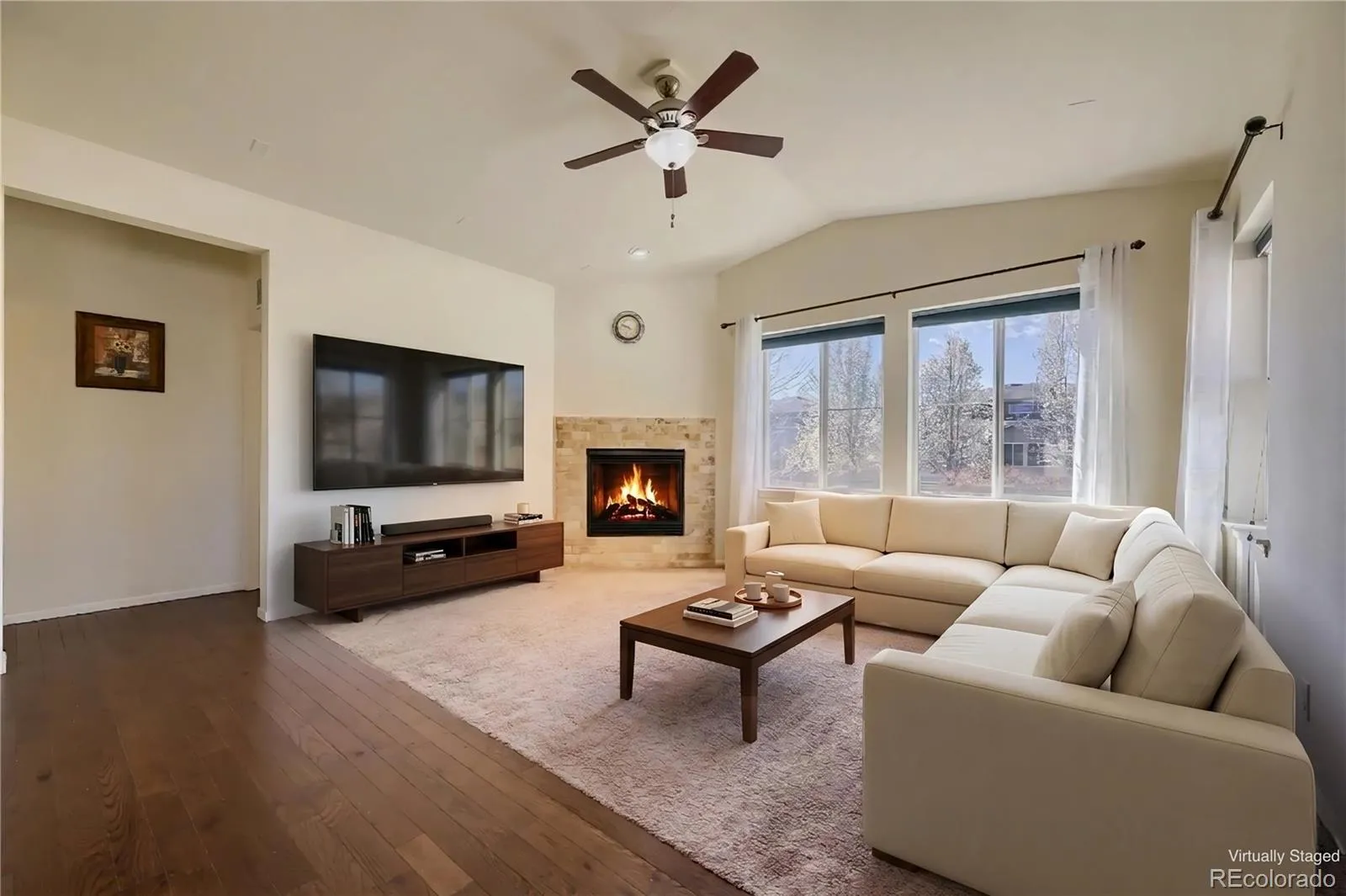Get ready to fall in love with your dream home! This gorgeous 4-bedroom, 3-bath home is move-in ready and comes with a 3-car garage! Picture this: living on a spacious corner lot that requires minimal outdoor maintenance. One owner. Pet-free and smoke-free home. As soon as you walk in, you’ll be welcomed by stunning hardwood floors in the foyer, kitchen, and dining room. The kitchen is a showstopper with its beautiful quartz countertops, an oversized island, tons of cabinets, and a fabulous pantry. There’s a rare main-floor bedroom with hardwood floors and a full bath just steps away! Upstairs, prepare to be amazed by the primary bedroom featuring more hardwood flooring, a walk-in closet, and a luxurious 5-piece bathroom with breathtaking mountain views. You’ll also find a laundry room, a cozy loft, two additional bedrooms, and another full bath! Tech lovers will appreciate the pre-wiring for in-wall speakers, and the unfinished basement is your canvas to create an amazing space. And let’s talk outdoor living! Host get-togethers on the stylish covered stamped cement patio, or unwind in the backyard, which backs onto a peaceful greenbelt! The front and back yards are equipped with 3-year-old artificial turf, so you can say goodbye to lawn care and hello to a forever green paradise! With a new roof (2.5 years old) and a freshly painted exterior (1 year old), this home feels as good as new. The community is fantastic, featuring a waterpark-style pool that’s perfect for family fun. Located in a quiet, safe neighborhood, you have stunning Coal Creek Trail and open spaces right at your fingertips for hiking, jogging, biking, or just leisurely strolls. The Bob L. Burger Recreation Center, the Great Outdoors Waterpark, Lamont Does Park, and Old Town Lafayette are all just a short drive away. Only a few blocks from Peak to Peak Charter School! With easy access to Hwy 287 and I-25, everything you need is conveniently close. Don’t let this incredible opportunity pass you by!