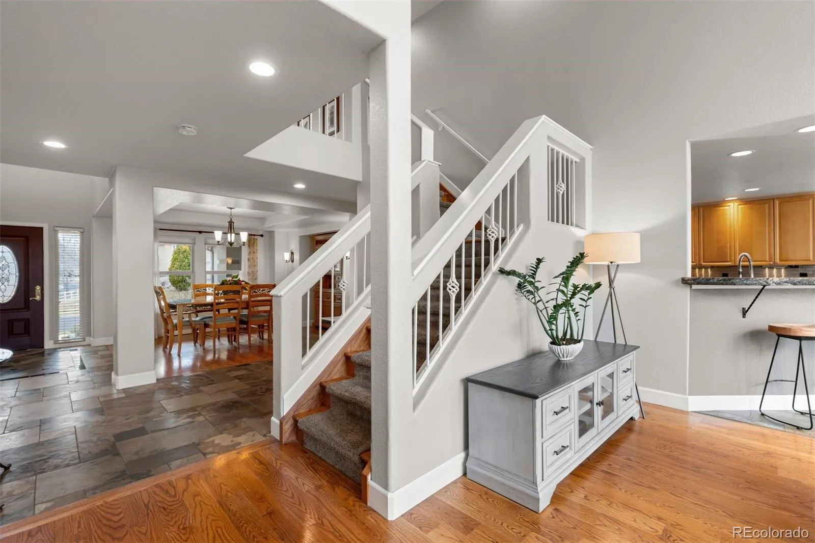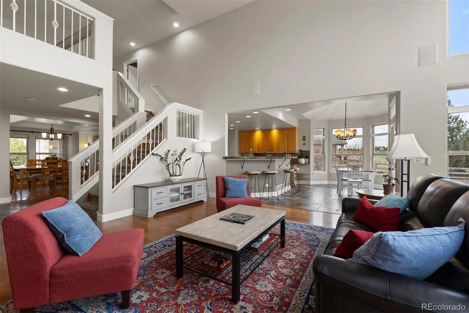 GOLF COURSE LIVING | MAIN FLOOR PRIMARY | RARE WATER, FAIRWAY & MOUNTAIN VIEWS! Situated on one of the largest lots in the Broadlands, this exceptional corner homesite backs to the 9th tee box and captures rare golf course, pond, and mountain views. Surrounded by mature trees and lush landscaping, it offers privacy and a serene, park-like setting. The light-filled interior features soaring two-story ceilings, abundant windows, and extensive hardwood floors. The dramatic living room with fireplace anchors the home, while a private main-level office with French doors provides ideal work-from-home space. The chef’s kitchen showcases maple cabinetry, slab granite, stainless appliances, gas cooktop, pantry, heated tile floors, and a large island that opens seamlessly to the main living areas. A rare main-floor primary suite offers a dual-sided fireplace, spa-like remodeled bath with heated floors, walk-in closet, and peaceful views. Upstairs includes spacious bedrooms, remodeled baths, and a loft with mountain views. The finished basement adds a bedroom, bath, family room, and fitness area. The outdoor living experience is exceptional—designed for entertaining and everyday enjoyment. A flagstone patio, built-in fire pit, custom pergola with integrated lighting, and outdoor kitchen create multiple gathering spaces, all set against a private, tree-lined backdrop overlooking the golf course. A tranquil cascading water feature enhances the setting—an incredibly rare offering within the Broadlands. Oversized 3-car garage with EV charging. Located within the highly sought-after Broadlands community with access to pools, clubhouse, parks, trails, and top-rated schools. Thoughtfully updated and move-in ready, this home offers a rare combination of lot size, views, and main-floor living. Enjoy seamless indoor-outdoor Colorado living with a private, resort-like backdrop. Minutes to dining, shopping, and major commuter routes.