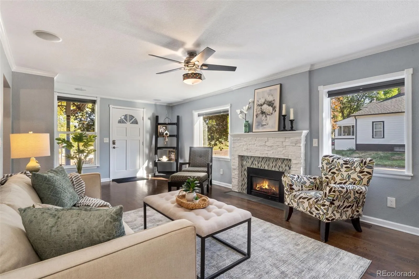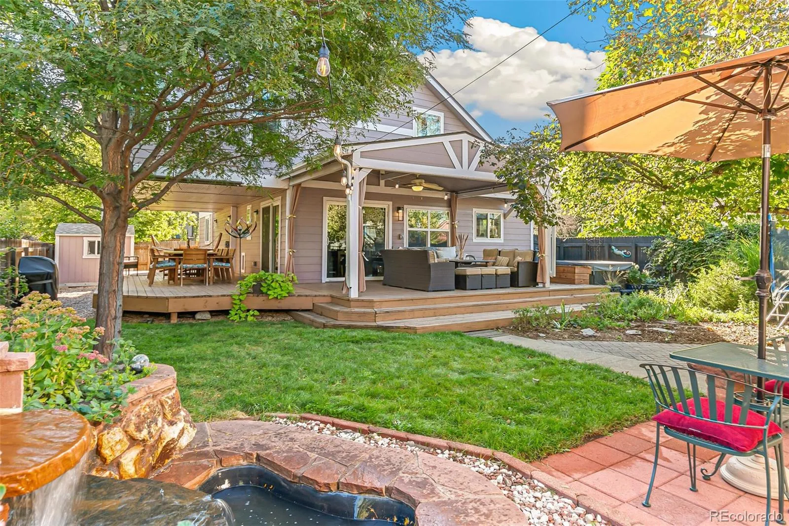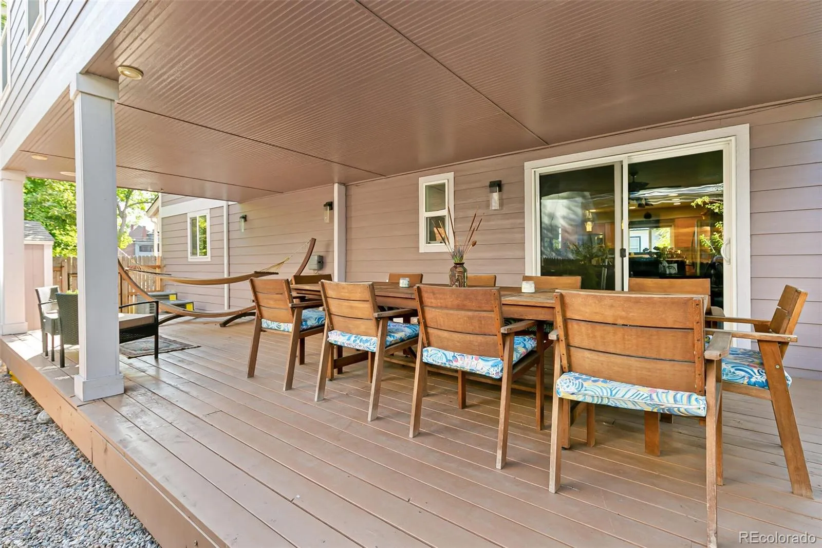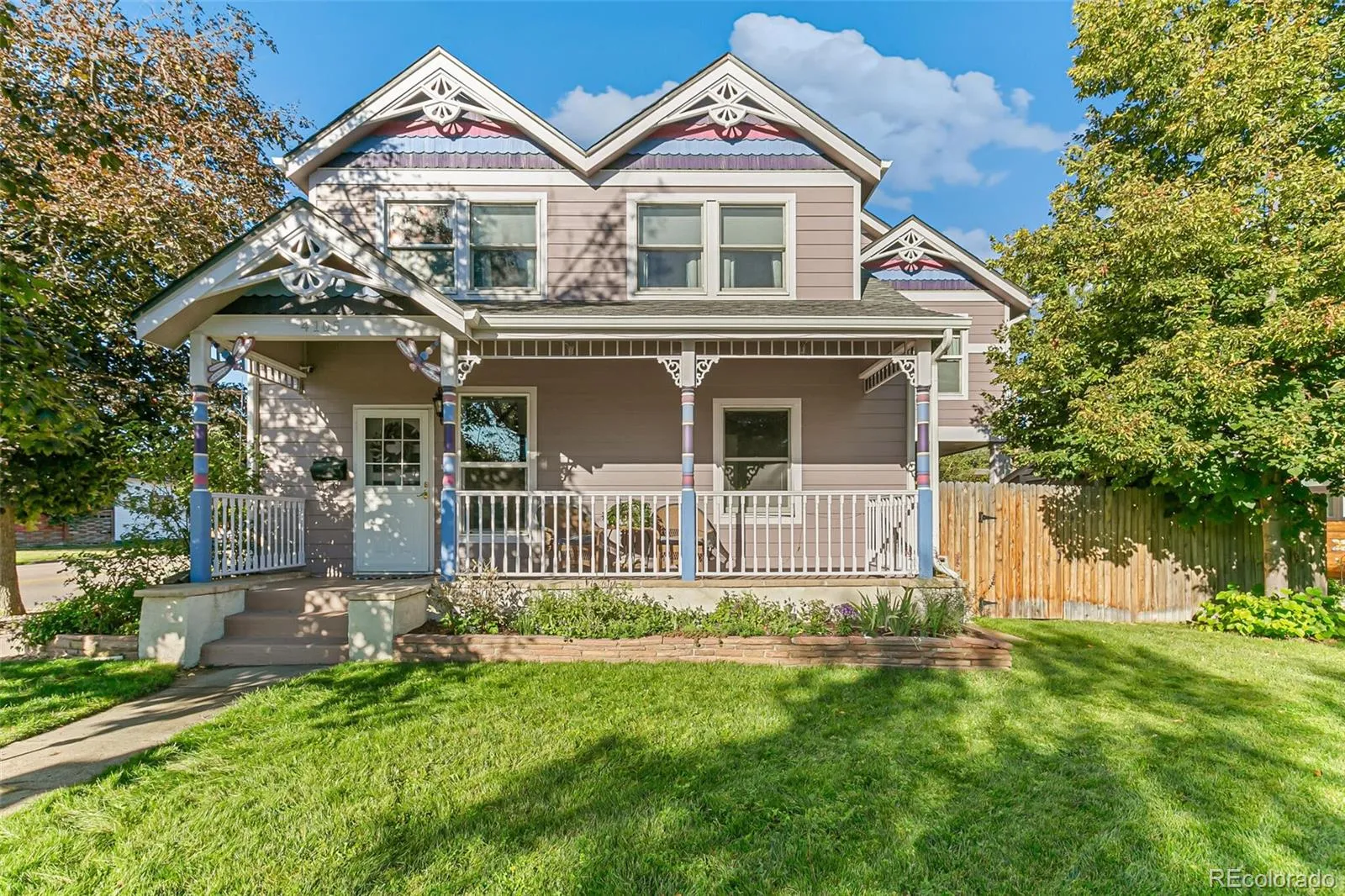 This 1905 house, in the coveted Berkeley neighborhood just west of the Highlands, retains historic charm while benefiting from a whole-house renovation in 2017. The renovation expanded the home to 4 beds and 2 baths upstairs. Exterior upgrades included an over-framed roof, new siding, gable pediments for a Victorian façade, and a re-designed porch. The fireplace was modernized to complement the expansive living area. An L-shaped covered deck and two sliders frame the dining room to create indoor/outdoor living. Enjoy the irrigated perennial gardens with a built-in bench, a wide cascading fountain, grass area, and mulched space for relaxation. There are four irrigated 7’ x 4’ vegetable boxes on the southwest end of the parking strip, with perennials on the southeast end. Keep your gardening tools in a free- standing shed, and enjoy a two car garage with two additional off street parking spaces. The 19′ x 18′; expansive primary bedroom suite includes a sophisticated primary bath with a dental cabinet, glass top vanity, and custom tile in the oversized shower. The other three bedrooms are also large, sized at least 11’ x 12’. The enormous second bathroom has a free-standing clawfoot tub, separate glass shower, Tiffany ceiling light, and full closet for extra storage. On the main floor, enjoy a flex bedroom that serves as a home office or mother-in-law suite. The remodel increased storage to include a large walk-in pantry with room for a full-sized refrigerator. The enormous kitchen boasts high-end stainless appliances including a gas stove with a double oven. Berkeley is Denver’s hottest neighborhood, with a diverse selection of entertainment on Tennyson, just a few blocks east, and mere minutes from the heart of Downtown Denver and Sloan’s Lake. Enjoy First Fridays with live music in Chavez Park and a plethora of dining options. Enjoy easy access to Colorado mountains and endless recreation opportunities.