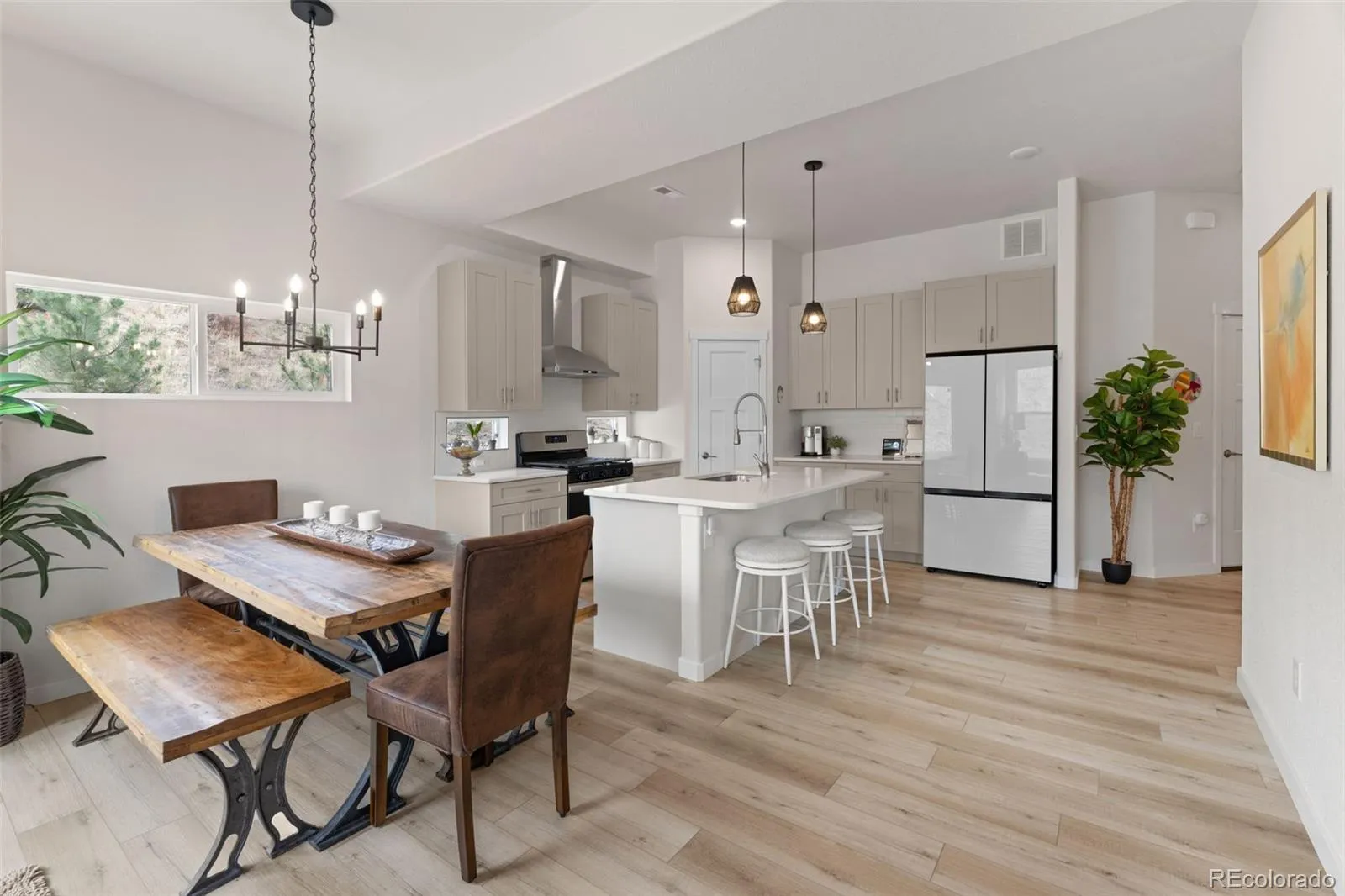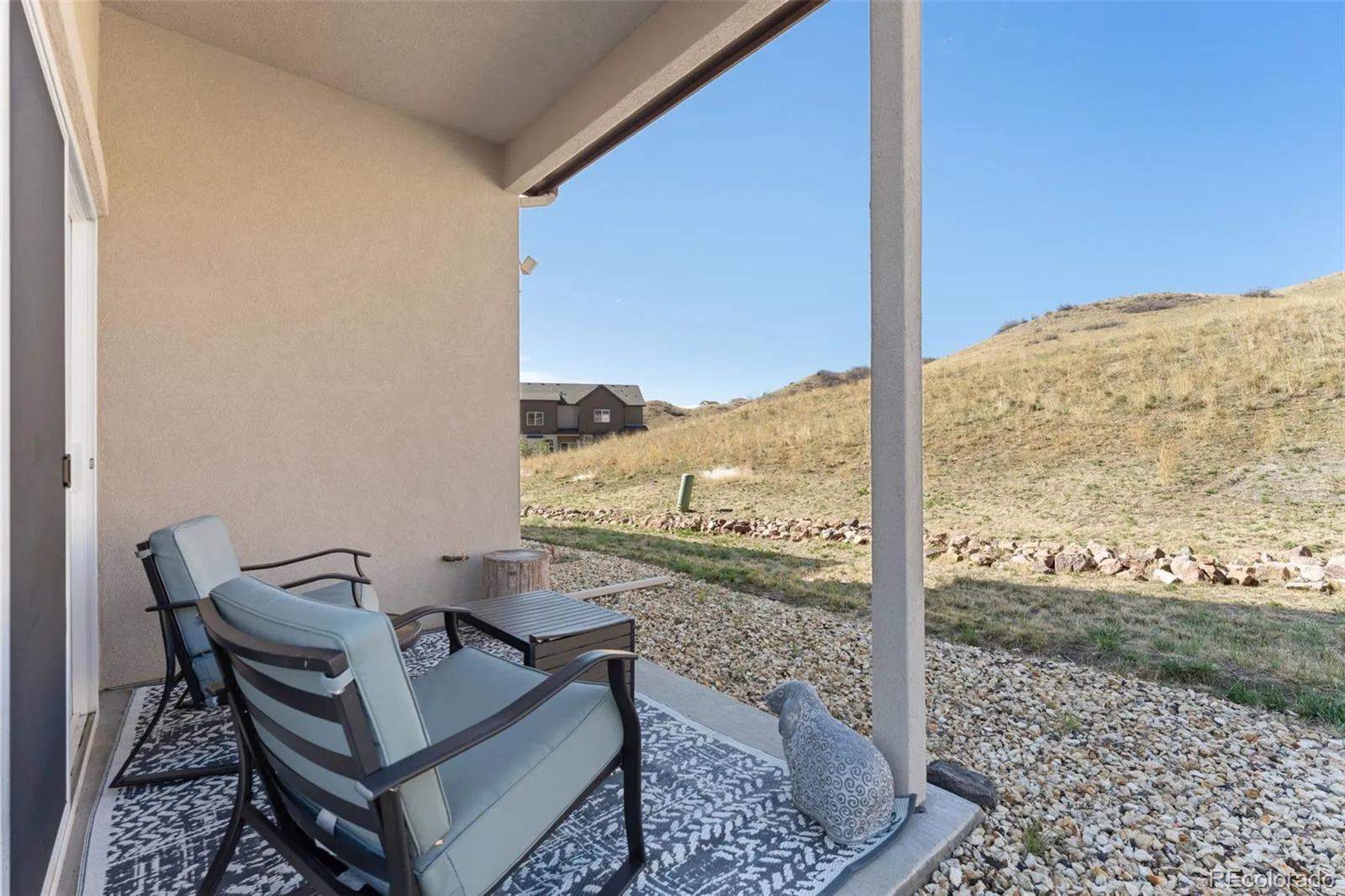 Discover the peace and privacy you’ve been searching for in this stunning end-unit townhome, perfectly positioned on the best lot in the community, backing directly to protected open space with no neighbors behind you and sweeping views of Colorado’s natural beauty. Nestled in the scenic West Side foothills of Colorado Springs, this 3-bedroom, 2.5-bath residence offers 1,805 square feet of thoughtfully upgraded, light-filled living where the mountains feel like your backyard. Soaring vaulted ceilings, expansive windows, and luxury vinyl plank flooring create a warm, airy ambiance throughout. The open-concept main level features a chef-inspired kitchen with upgraded shaker cabinetry, quartz countertops, a corner pantry, and a large island with seating. Stainless steel appliances including a gas range complete the space. Unwind by the custom gas-log fireplace, or step onto your covered back patio, with a gas line for grilling, where wildlife and the quiet of permanent open space greet you daily. Hit the trails from your back door, with Ute Valley Park and Garden of the Gods just minutes away. Upstairs, the luxurious primary suite features a tray ceiling, dual walk-in closets, and a spa-inspired ensuite with dual vanities and an oversized walk-in shower. Two additional bedrooms, a full bath, and upper-level laundry complete the floor. Loaded with premium upgrades, custom privacy blinds, and luxury features, this meticulously maintained home is move-in ready. HOA covers lawn care, exterior insurance, roof, trash, and snow removal for effortless lock-and-leave living. End unit. Protected open space. Unmatched privacy. This is the one.