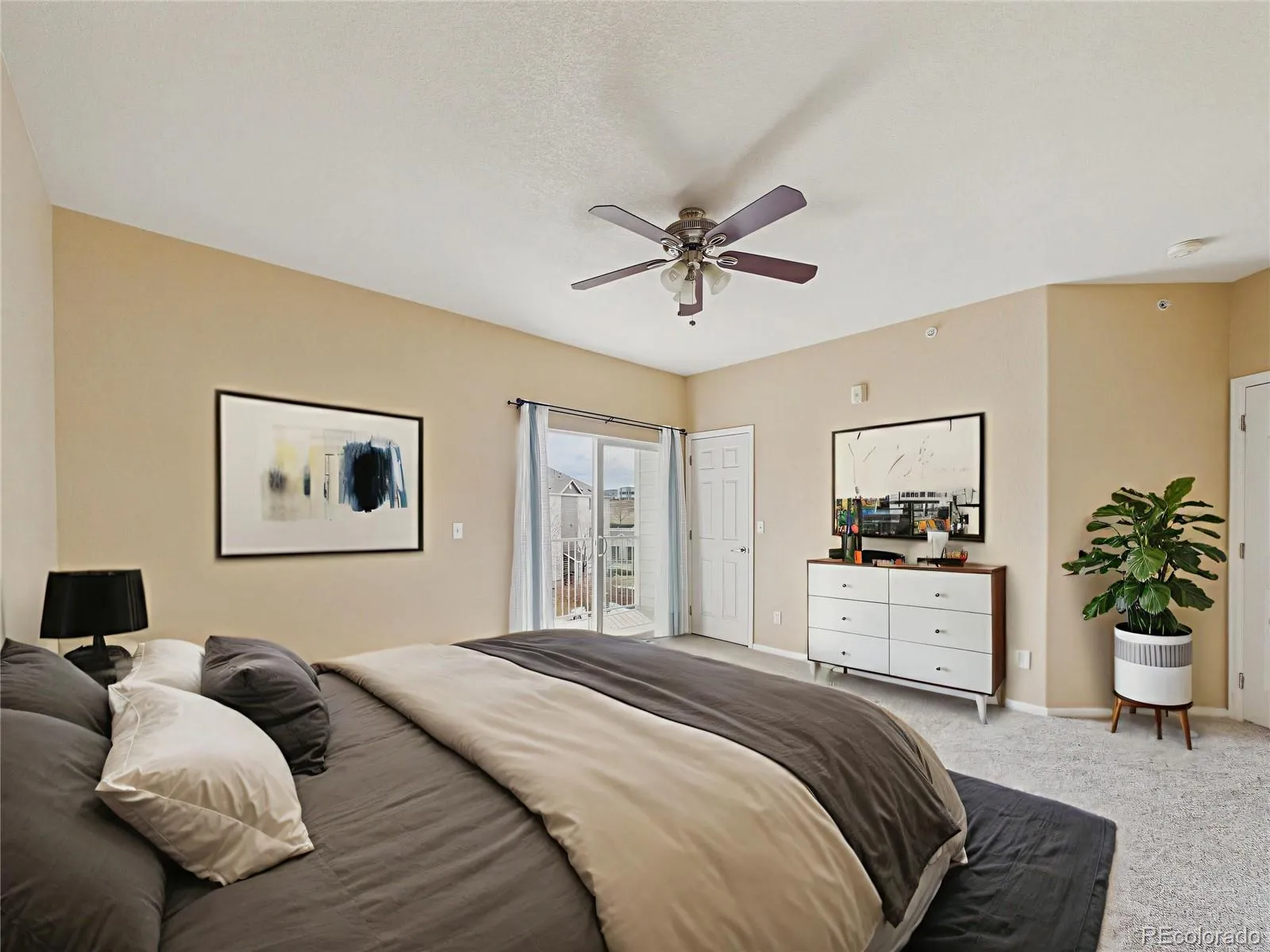 This beautiful, south-facing residence seamlessly blends comfort, style, and spaciousness. Enhanced by fresh new carpet throughout, the open-concept layout is defined by high ceilings and an abundance of natural light that creates a vibrant, welcoming atmosphere. The inviting living area, featuring a sleek fireplace, leads naturally to a private balcony and into the kitchen, making it a perfect hub for both lively entertaining and quiet relaxation. The thoughtful floor plan is designed for intuitive everyday living, offering generous storage, three full bathrooms, spacious rooms, walk-in closets, and a dedicated in-unit laundry closet. Step outside onto your choice of two private balconies to enjoy peaceful views and fresh air, the ideal spot for a morning coffee or winding down at the end of the day. Residents also benefit from the exclusive amenities of this secure, gated community, which includes a fitness center, swimming pool, and scenic walking trails. Parking is remarkably stress-free, featuring a detached garage, an additional reserved space, and ample parking for guests. Located in a prime area with quick access to local shops, dining, and major roadways, the home is also situated within the highly coveted Cherry Hills School District. Whether you’re looking for a peaceful retreat or a welcoming home base for your next chapter, this residence truly offers the perfect combination of comfort and convenience. Welcome home!