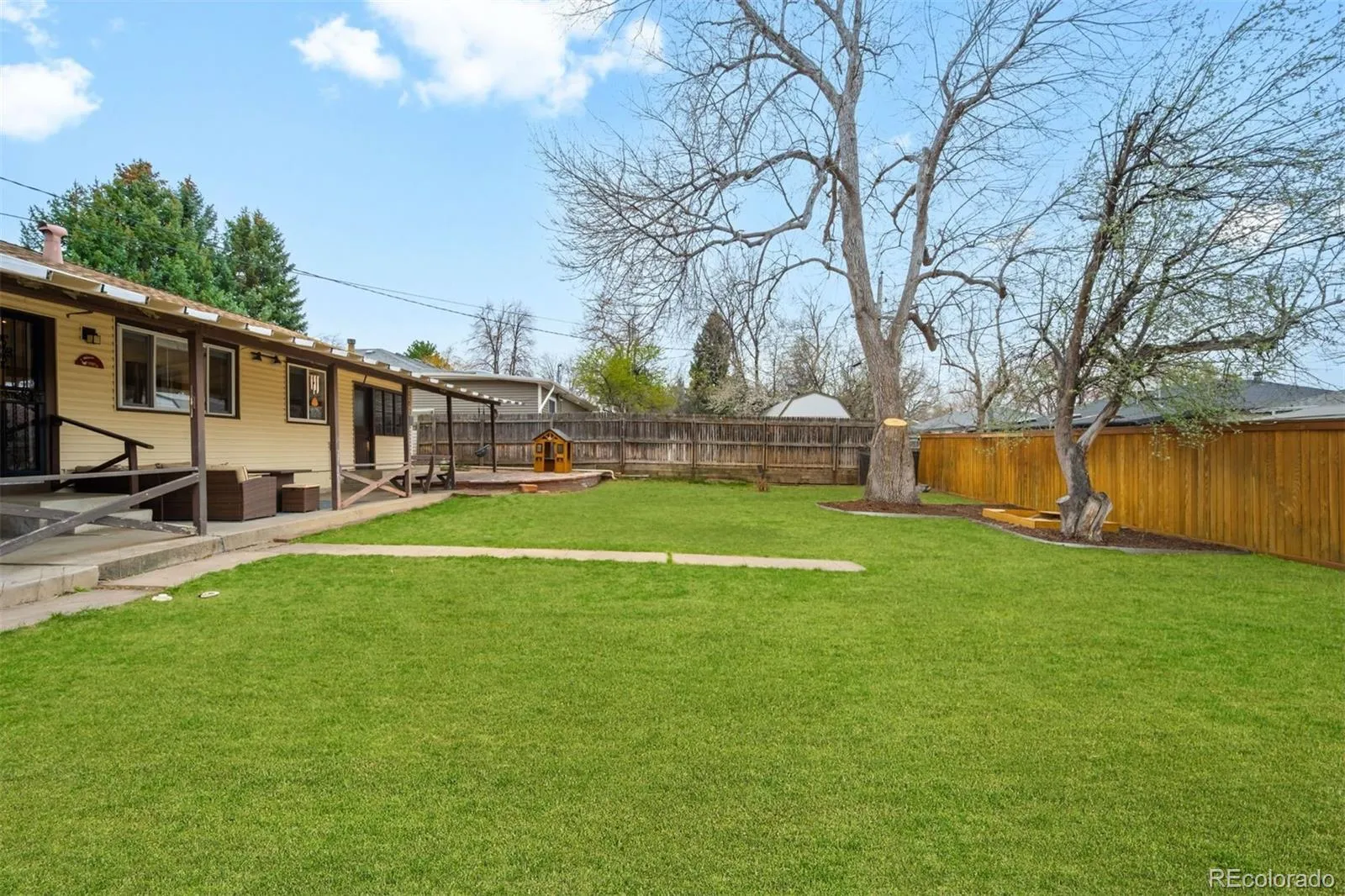 Mid-century character meets refreshed updates, with 3 bedrooms up and flexible living on both levels. At the entry, built-in cabinetry creates a functional drop zone, setting the tone of character + practicality. The main living is anchored by dramatic west + east-facing windows, complementing the home’s sun-filled feel throughout the day. A defined dining nook sits adjacent, maintaining open flow. The kitchen is fully refreshed with quartz countertops, stainless steel appliances, ceiling-height cabinetry, open shelving, and stylish lighting. Just beyond, a sun-drenched multifunctional mudroom connects the attached one-car garage (2026 garage door) to the backyard. French windows and a Dutch door extend the home’s character, creating a flexible and light-filled workspace. Three main-level bedrooms include a generous primary with a walk-in closet and a shared full bath. Both bathrooms were fully renovated in 2021, including new showers, updated hardware, a new vanity in the lower bath, and an added bathtub on the main level. The lower level expands livability with additional living space, integrated storage, and defined zones for media/ play. A built-in desk nook adds a second dedicated flex space, offering a quiet zone for work, alongside an additional bedroom + updated 3/4 bath for comfortable guest accommodation. A spacious laundry room adds further flexibility and is currently used as a home gym. Outdoor living centers around a large covered patio with built-in bench seating, overlooking generous green space. Set within the Virginia Village neighborhood, the home offers easy access to I-25, proximity to downtown Denver (5-miles), and moments to Ash Grove Park and playground. Nearby neighborhood favorites include Esters + a new Recess Beer Garden slated to open nearby in Fall 2026!