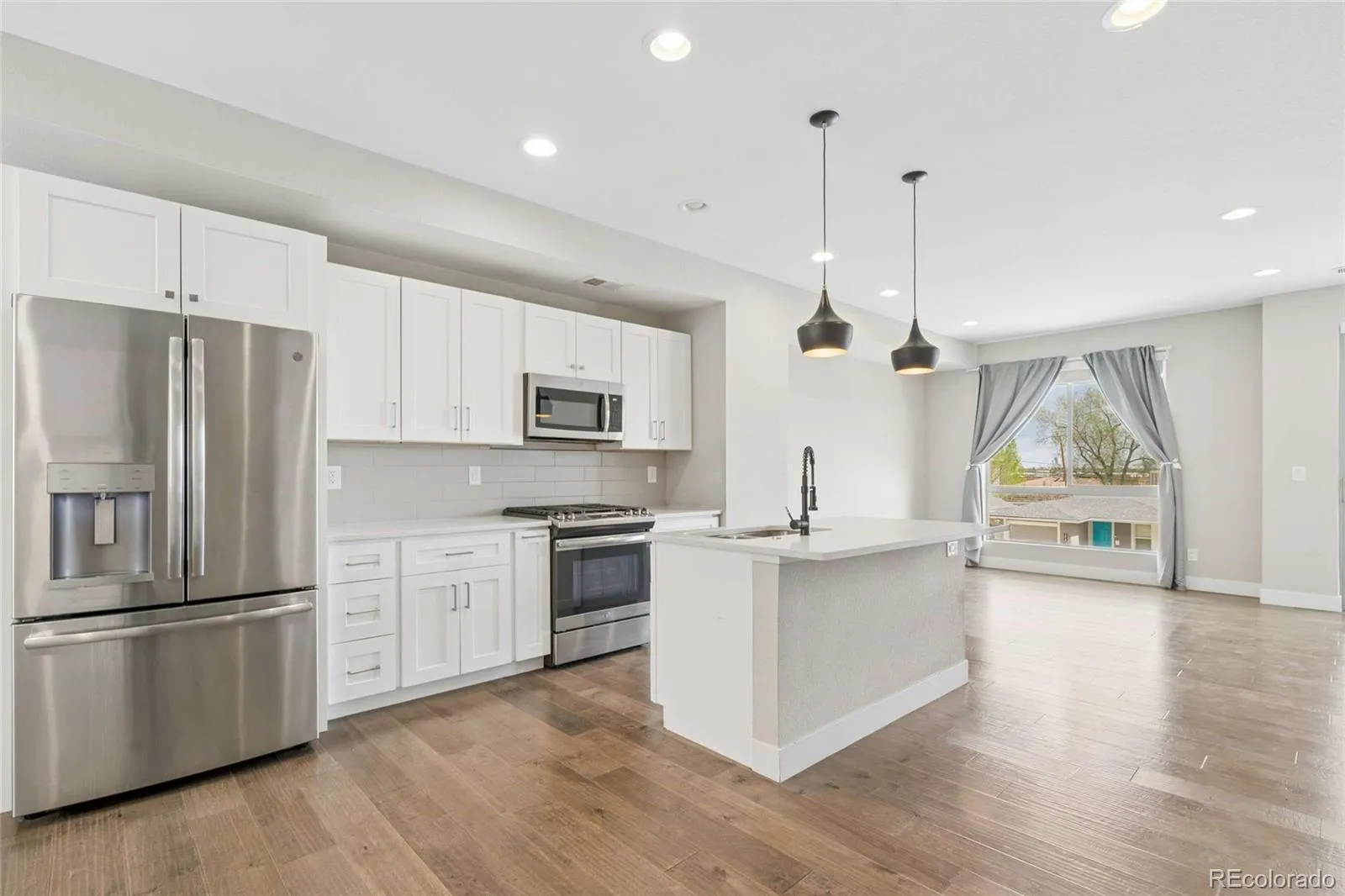 First time on the market since construction, this 2018 built townhome delivers the ideal combination of location, layout, and views. All priced under $750K. Thoughtfully designed across three levels, the main living floor features an open-concept kitchen, dining, and living space with natural light, city views, and a powder bath. Making it perfect for entertaining. Each bedroom includes its own en-suite bathroom, with a flexible main-level suite and two bedrooms upstairs, including the primary suite. The standout feature is the private rooftop patio with views of Sloan’s Lake, downtown Denver, the mountains, and Edgewater Public Market. A truly rare offering at this price point. Located just steps from Edgewater Beer Garden and some of Denver’s best westside amenities, this home offers true walkability and lifestyle. Seller is proactive and flexible, offering a paint credit or willing to complete interior paint prior to closing, giving buyers immediate upside and customization. Opportunities like this – newer construction, rooftop views, and prime location under $750K, are rare. Don’t miss it!