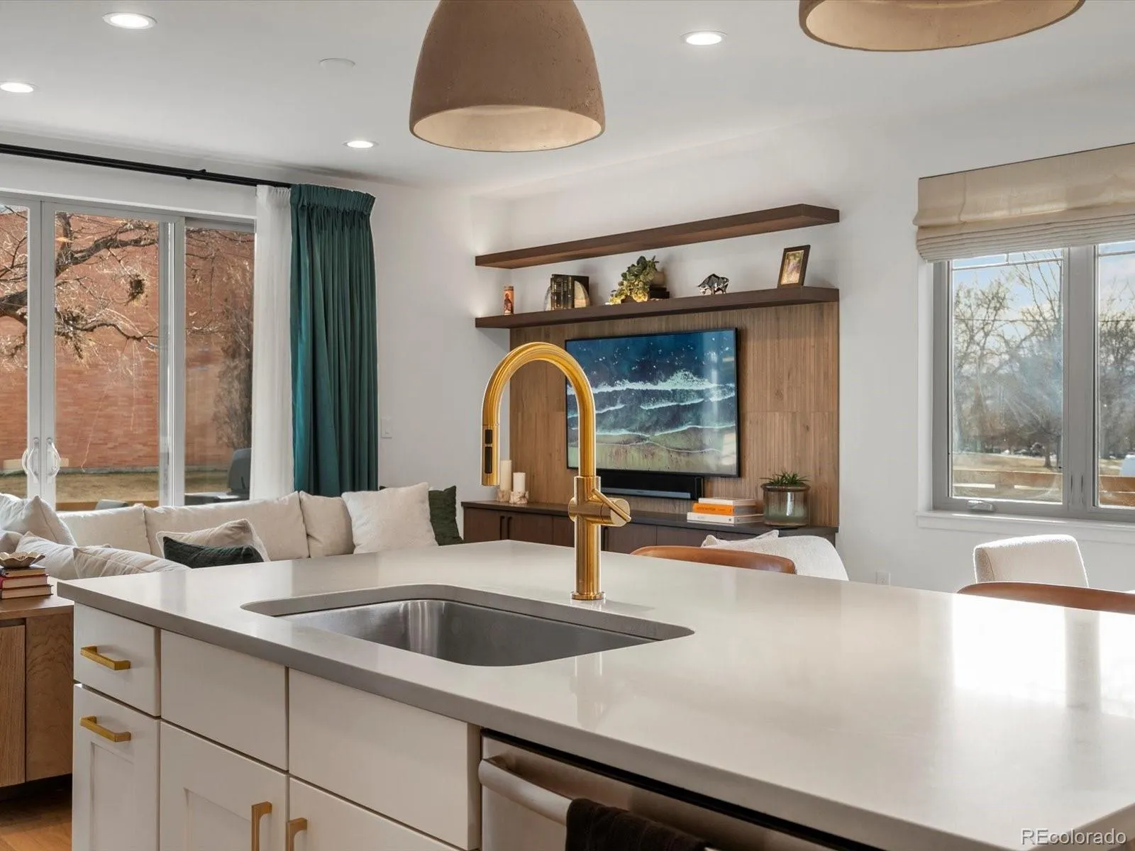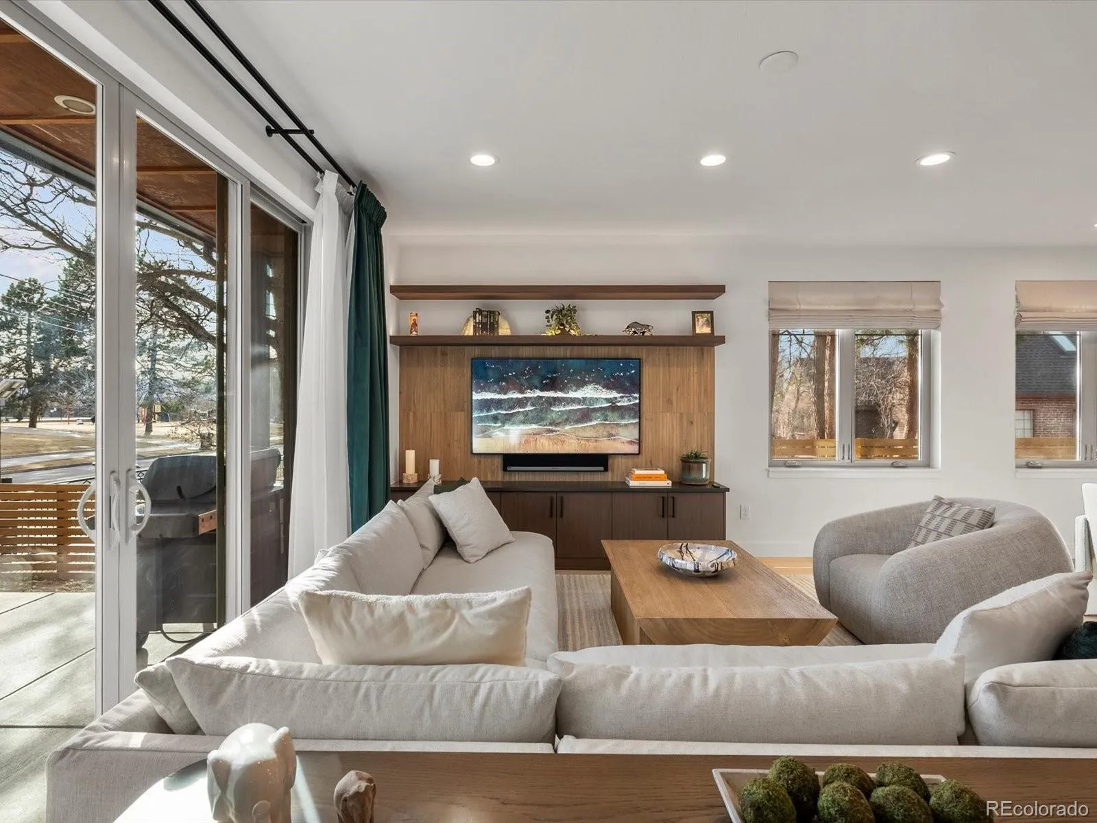Directly fronting Harvard Gulch Park, this renovated home was built in 2012 by Sprocket Design-Build. The main level was completely reimagined by Kaleidoscope Design in 2025. The open floorplan shows off with dual sliding doors that provide a plethora of natural light. Thoughtful updates and designer finishes include metal seem roofing, white-oak engineered hardwood floors, new window coverings, velvet curtains, walnut cabinets and black quartz counters below the custom TV surround. The kitchen features stainless appliances – Viking fridge, Bosch oven, gas-range, microwave, and dishwasher, new concrete pendant lighting, quartz counters, shaker cabinets, under-cabinet lighting, designer herringbone tile backsplash, and built-in wine storage. The second floor was remodeled in 2022 and includes a spacious primary suite with a southern facing balcony, shiplap wall paneling, vaulted ceilings, and walk-in closet with custom built-ins. The primary bath features a steam shower with overhead rain shower, dual vanities, and make-up area. Two more bedrooms and a full bath round out the second floor. The lower level includes a rec-room with a reclaimed wood accent wall, an additional guest bedroom and ¾ bath. Don’t miss the hidden bookshelf to the storage room beyond. A new water heater (2026), newer furnace (2022), and 2-car attached garage with epoxy flooring, new ultra-insulated garage door (2026), EV charger, and more custom storage round out the home’s offerings. Harvard Gulch Park includes a par-3 golf course, rec-center, outdoor pool, playground, and more. Walking distance to the shops on South Downing St, South Pearl St, and Denver Beer Company, don’t miss your opportunity to live park-side in Central Denver.