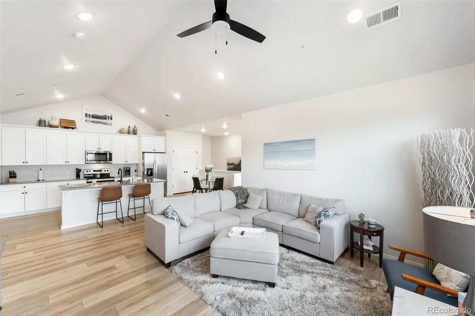 This practically brand-new second-level condo showcases true pride of ownership and features a bright open-concept, vaulted ceiling layout ideal for both everyday living and entertaining. Enjoy a thoughtfully designed floor plan with spacious bedrooms, comfortable living areas, and a kitchen that flows seamlessly into the main living space.