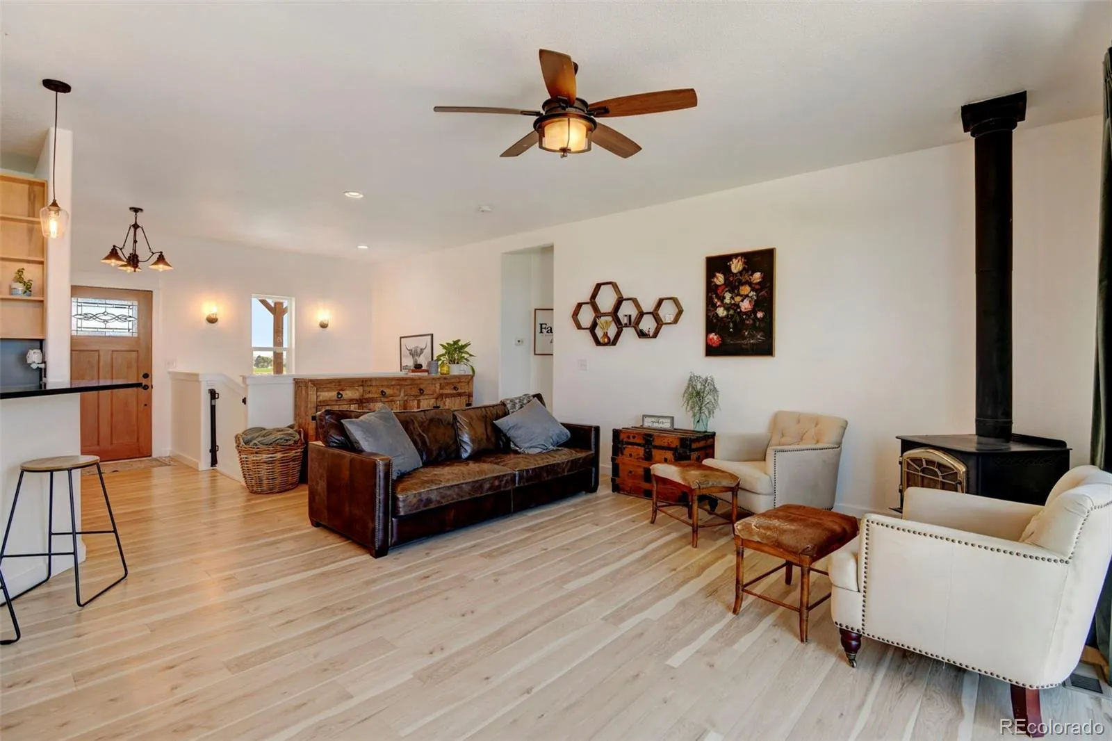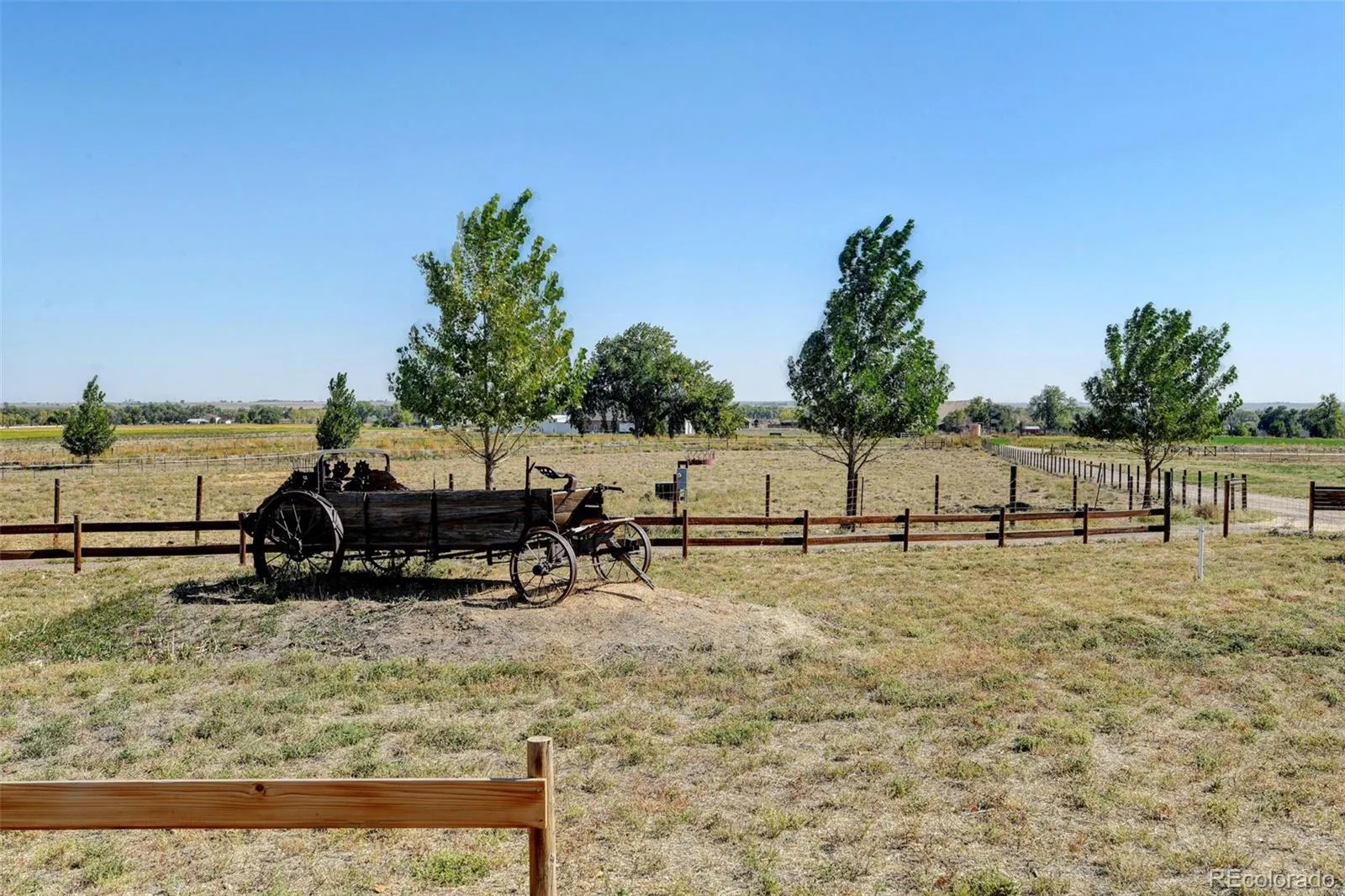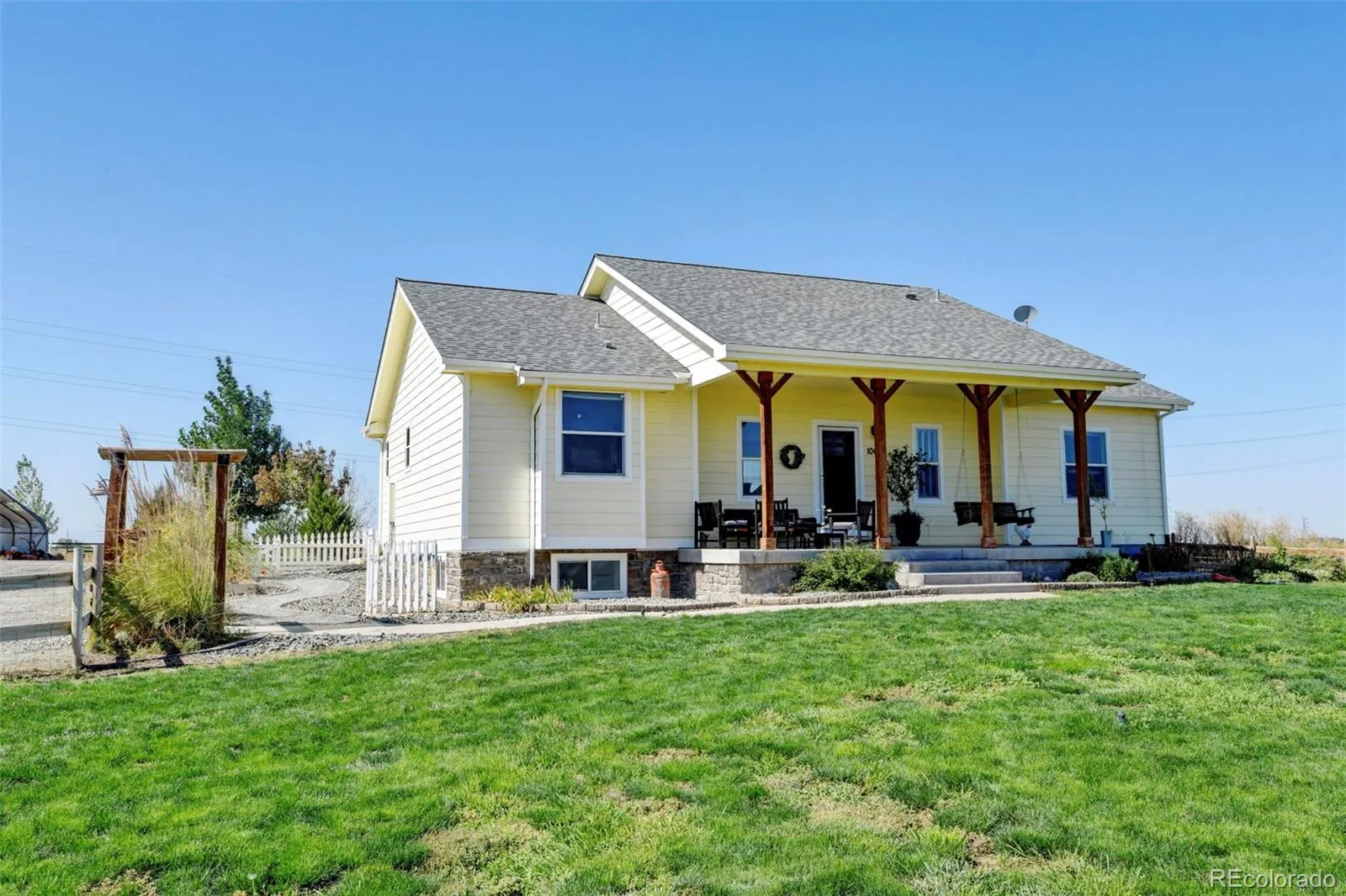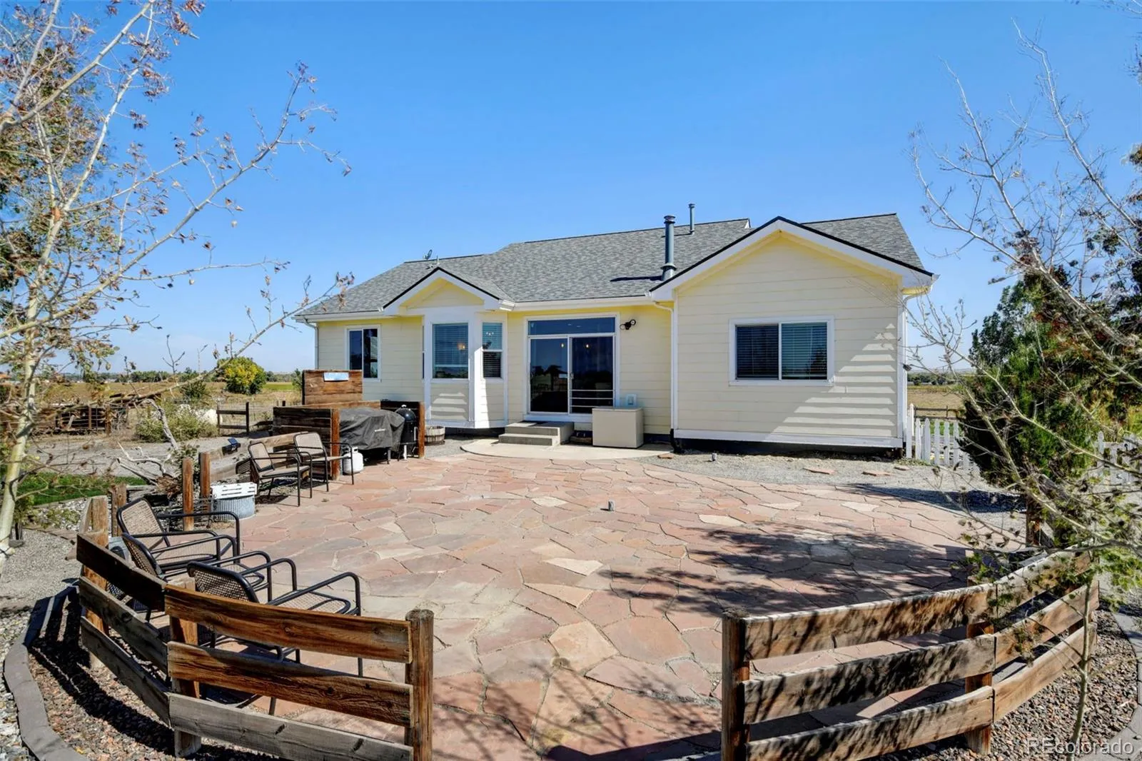 Custom ranch home on 9.66 acres with breathtaking mountain views and room to roam. Calling all hobby farmers, homesteaders, and animal lovers—this property offers the space, functionality, and peaceful country lifestyle you’ve been searching for. Enjoy stunning sunrises and sunsets, fresh air, and privacy that’s hard to find. This 5-bedroom, 3-bathroom home features an open-concept kitchen, dining, and living area ideal for entertaining, plus a cozy wood-burning stove for Colorado evenings. The spacious primary suite includes a 5-piece bath, dual closets, and a jetted tub. The finished basement with 9-foot ceilings provides flexible space for a media room, gym, or hobby area. Equestrian-ready and thoughtfully designed, the property includes a 40×60 horse barn with two indoor matted stalls, hay storage, workspace, and electrical upgrades. A 90×120 fenced riding arena with manicured sand footing offers excellent usability for training or recreation. The land is well organized with multiple fenced pastures and pens, including areas for horses, livestock, and smaller animals, plus a chicken coop with attached predator-proof run.