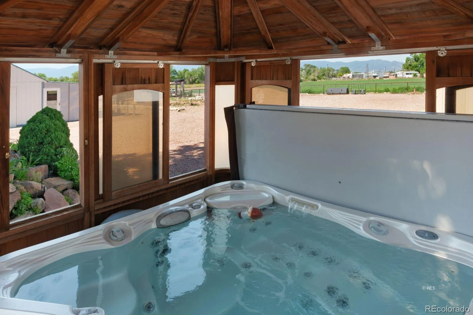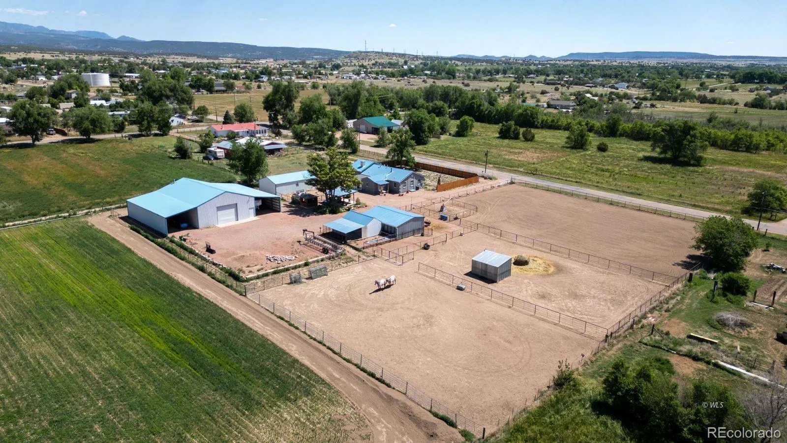 HORSE PROPERTY, OUTBUILDINGS GALORE — Welcome to one of the best-designed five-acre horse properties in Penrose! Pull in through the remote-controlled gate and drive slowly to take it all in! Nestled attractively on the east end of the property is this charming rancher, detached 38×17 garage, 60×40 heated shop with built-in air compressor, 220 electric, (2) 20 x 60 storage on each side of the shop with loft, (2) 12 x12 horse stalls with feeders, 12×24 cover over stalls for shade, one 12×18 horse stall, heated water, pipe fencing, 24×12 tack room with cement floor, 24×11 feed room w/electric, 14×8 utility/storage/greenhouse, chicken coop, 32×41 dog pen, covered patio with waterfall feature/flower garden, and hot tub! Since purchasing, the Seller has done many upgrades. Inside, 2 primary bedrooms with ensuite baths, 3rd bedroom, and a guest bath. Vaulted tongue and groove Aspen ceiling, wood burning stove, and a propane fireplace. In the kitchen, two pantries, Dacor appliances, all attached to a spacious mud/laundry room. Attached heated/cooled sunroom built in 2022. Privacy fencing, central heat and air conditioning, decorative pond/water feature (rebuilt), approx. 3.5 acre crop and 5 shares of Beaver Park Water.