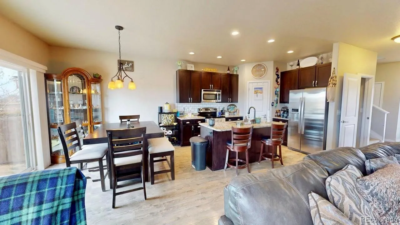 This two-story home has a great location in the community backing up to open space with mountain views and concrete walking paths. This 3-bedroom and 3-bath home features provide a great functional floor plan. The upstairs begins with 3 bedrooms and 2 full baths plus a covenant separate laundry room. Primary bedroom with ensuite full bath and large walk-in closet. 2 additional bedrooms and 2nd full bath. The kitchen boasts a center island open bowl stainless sink, 42″ cabinets, granite countertops, stainless steel appliances, with a separate pantry and eating space. The open kitchen leads to the great room, allowing friends/family to gather comfortably. The unfinished basement gives the desirable option of future expansion, including rough-in plumbing for a potential bathroom. Exterior highlights include durable concrete siding with a stone façade, covered front sitting porch, new porch and patio lighting, new roof, and copper/brown tone gutters, plus an oversized curved concrete patio in the large usable fenced backyard. The 3-car tandem garage with an 8ft door provides ample parking and also has built-in storage shelving. This tandem garage option gives you the time saving possibility of leaving a boat, camper or trailer connected and still be parked in the garage! Convenient location with privacy and scenic surroundings.