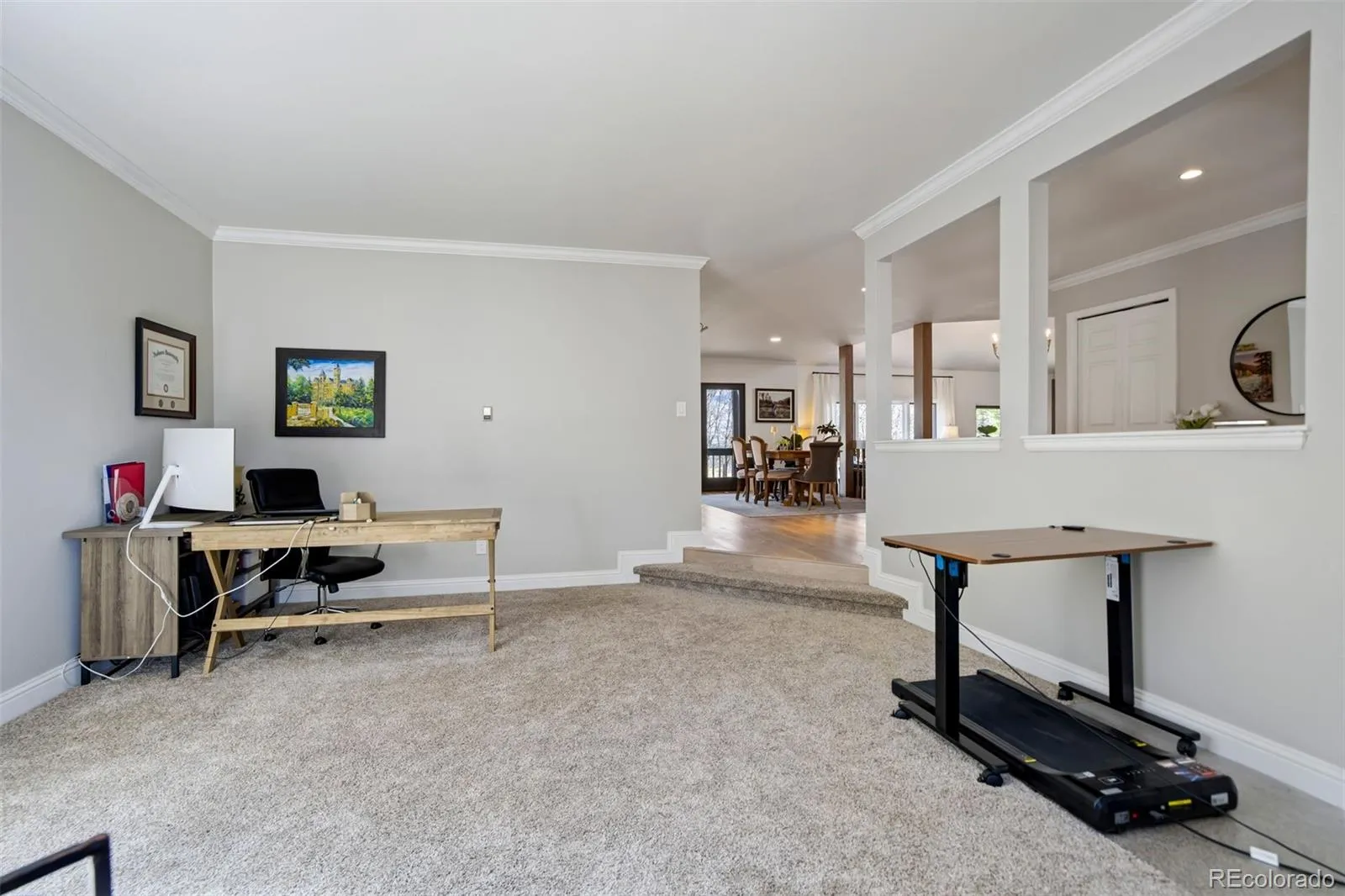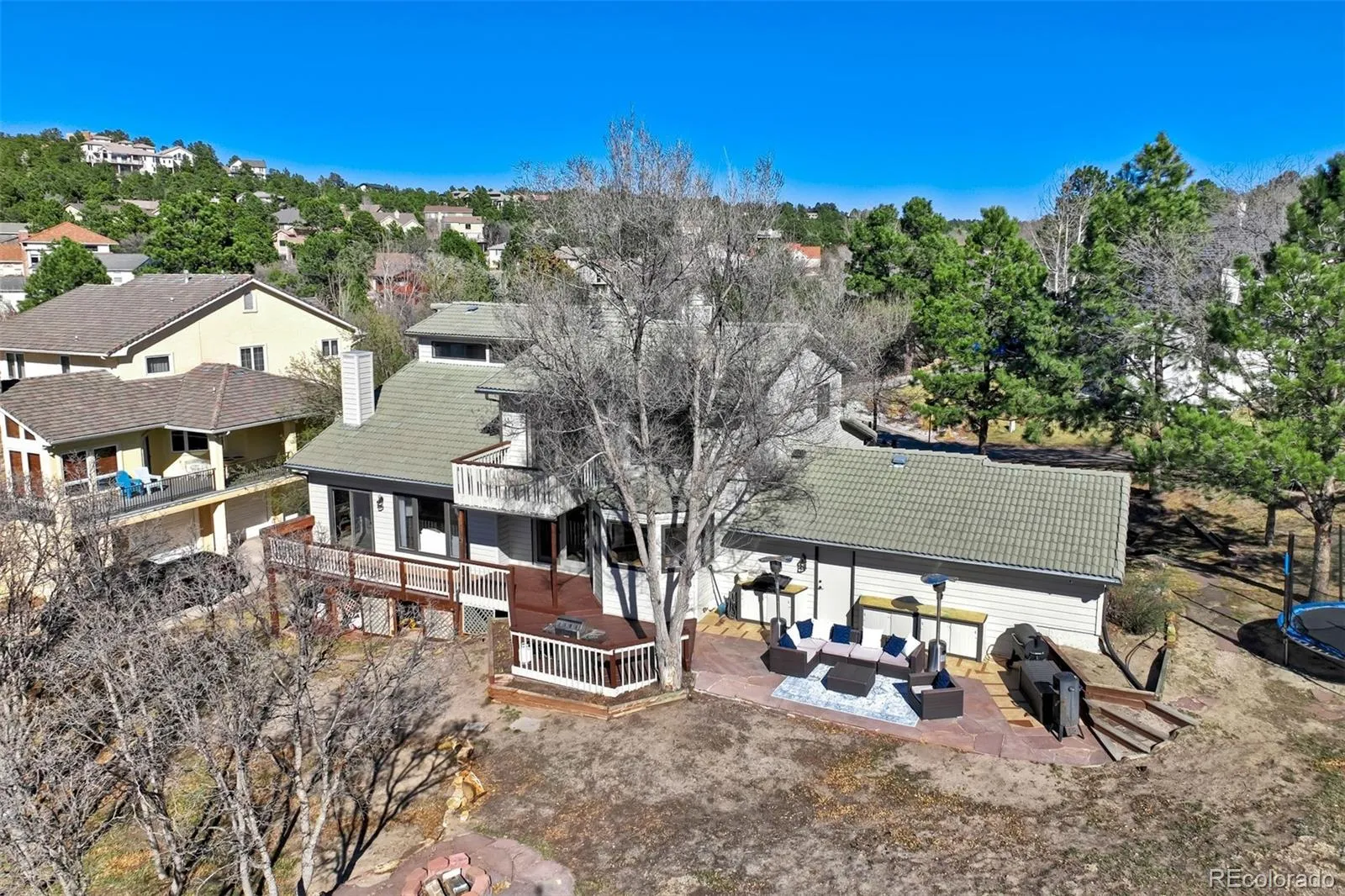Wake up to unobstructed Pikes Peak views and 400+ acres of protected open space just beyond your backyard. This is the kind of setting that rarely becomes available. Perfectly positioned on a quiet cul-de-sac in the sought after Valley at Erindale, this updated custom home offers a rare combination of privacy, views, and everyday livability on a third-acre lot backing directly to Pulpit Rock Park. Miles of trails, abundant wildlife, and sweeping mountain views create a backdrop that changes beautifully with the seasons. Inside, a thoughtful floor plan features over 4400sf with generous room sizes, multiple living areas designed for both comfortable living and effortless entertaining. The recently remodeled kitchen is both functional and refined, with updated cabinetry, quality surfaces, stainless steel appliances, and a bright breakfast nook positioned to capture the views. The great room impresses with vaulted ceilings, a striking stone fireplace, and custom built-ins. The main level includes a spacious office and a large bedroom with built-in shelving, a laundry room and remodeled half bath. Upstairs, the expansive primary suite offers a private deck with epic views. A five-piece bath features a soaking tub, dual vanities, and separate walk-in closets, while two additional bedrooms and a full bath complete the upper level. The walkout lower level adds versatility with a large family room, wet bar, additional bedroom, and three-quarter bath, ideal for guests or extended stays. Outdoor living is exceptional, with multiple decks and patios, including a flagstone patio with built-in grilling area, cabinetry, and counter space, all framed by sweeping mountain views. Additional highlights include solid 2×6 construction, an efficient six-zone hot water heating system, new exterior paint, a 3-car attached garage and over 4400 square feet. Homes with this setting, level of updates, and proximity to protected open space rarely come to market.