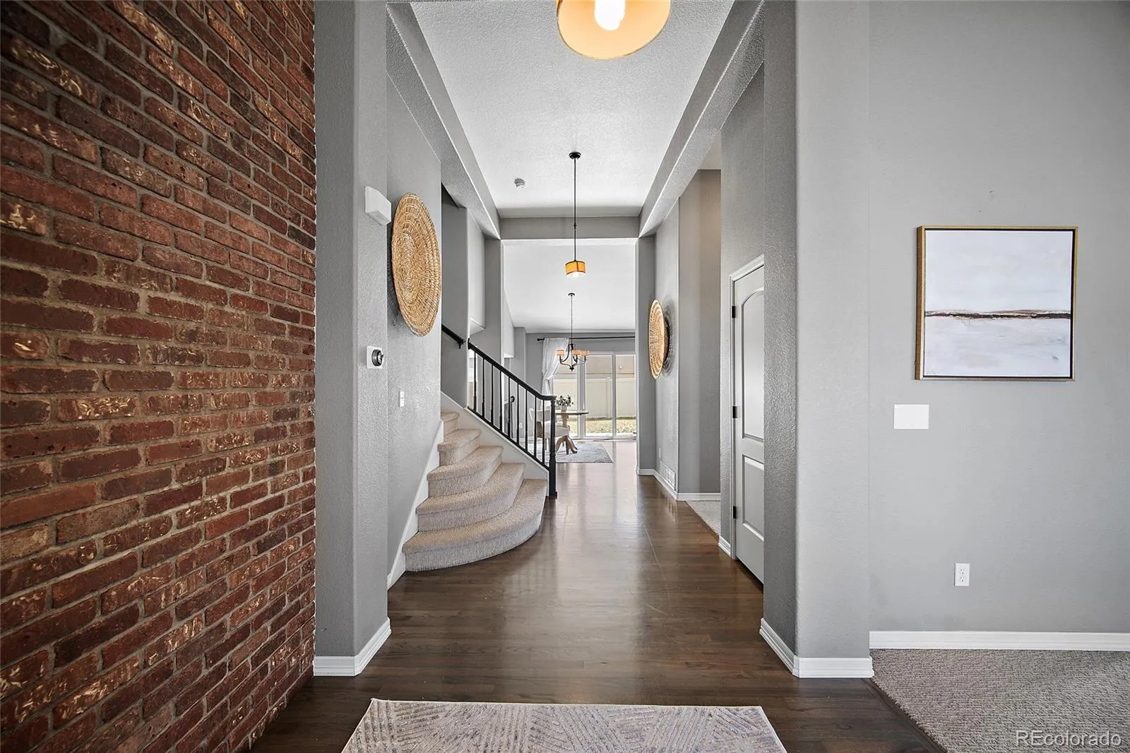 functionality. Step inside to discover rich hardwood floors, stunning interior brick accents, and soaring vaulted ceilings that