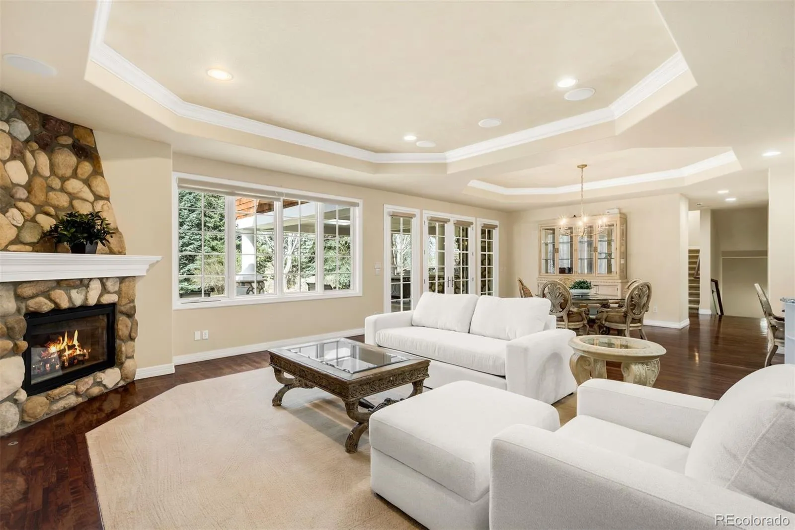 Outdoors, the grounds are complemented by a covered kitchen with built-in grill, dining space, and fire feature—ideal for enjoying Colorado’s seasons. A rare opportunity to live across from Buell Lake in one of Cherry Hills Village’s most sought-after communities.
