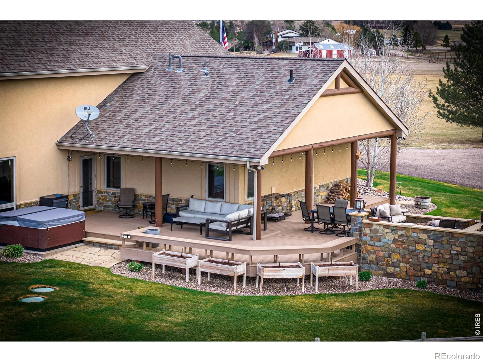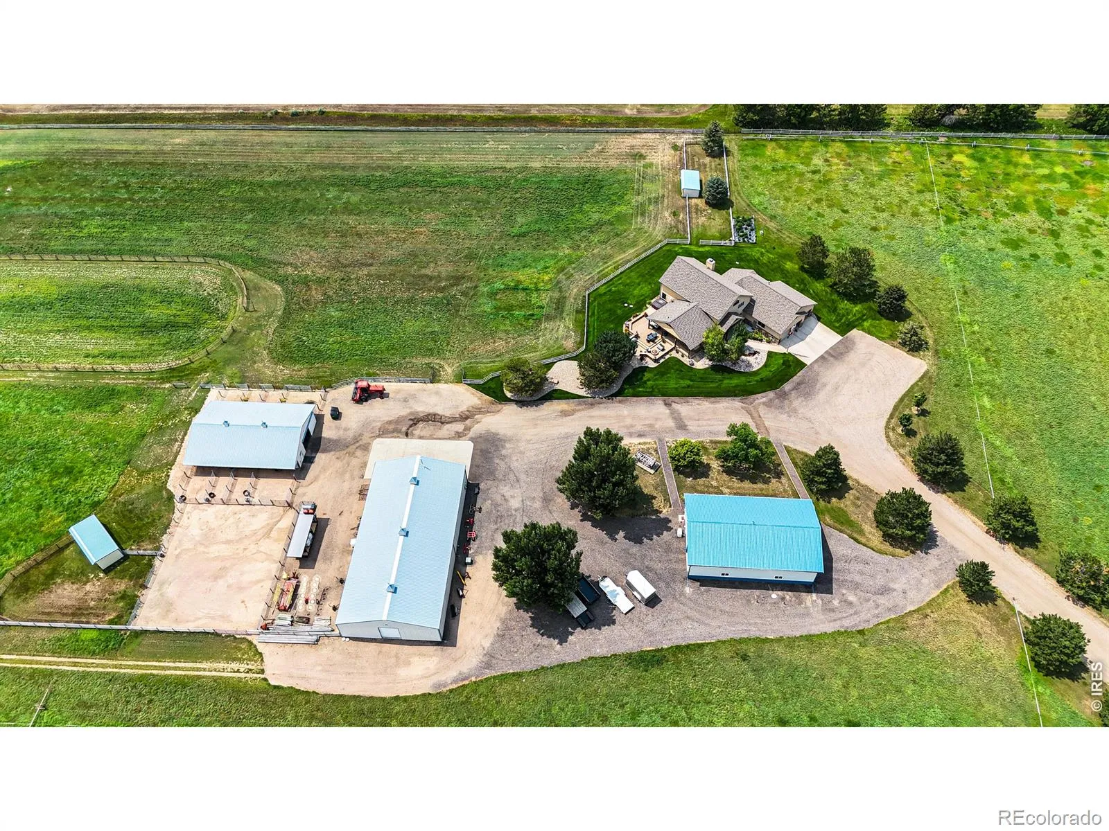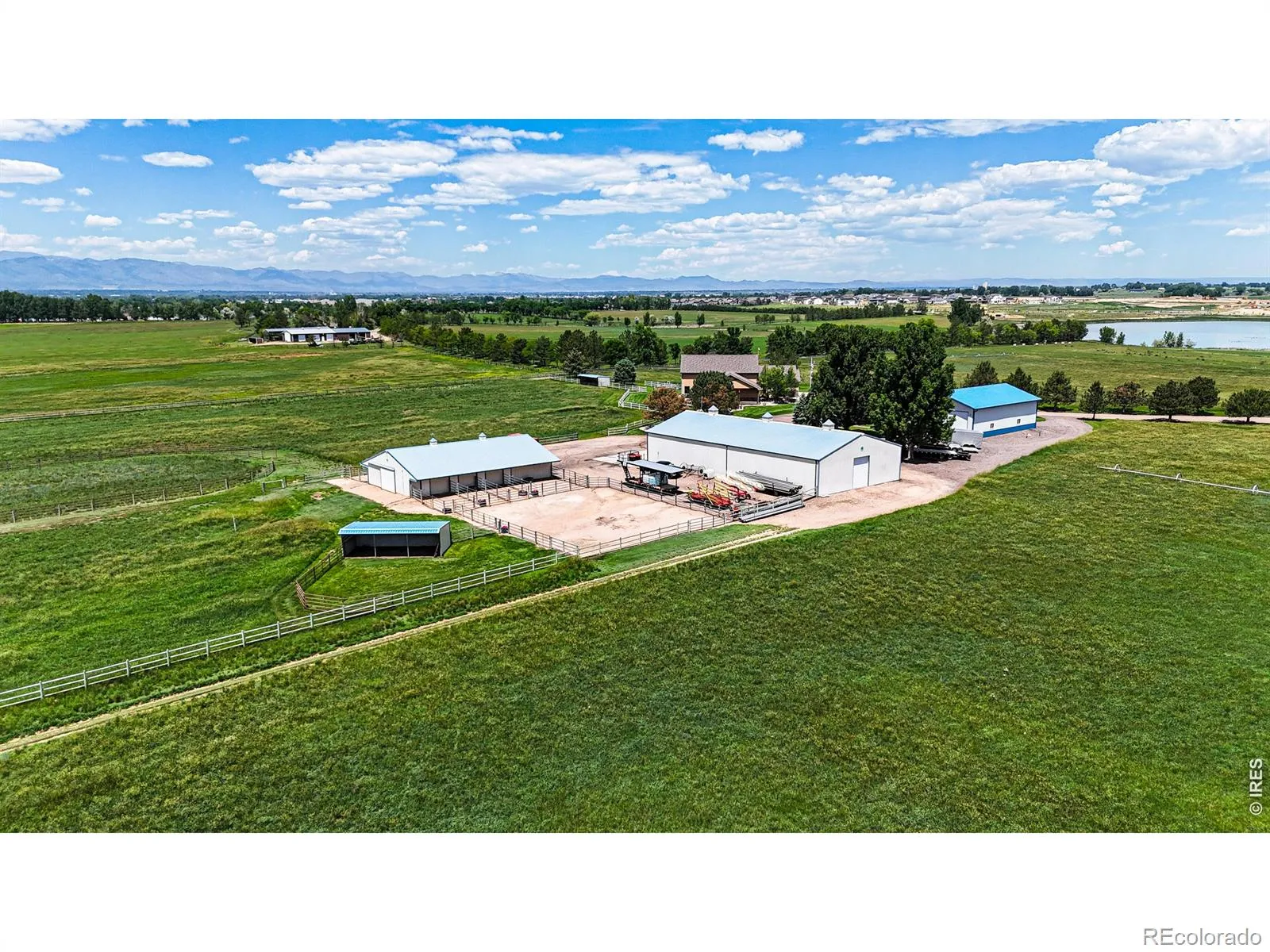 Hansen Farm is a rare combination of privacy, production, and location just minutes from Fort Collins. Set at the end of a tree-lined drive, it features a 6,752 sq ft home, irrigated hay meadows, and sweeping reservoir and mountain views. With 100+ acre-feet of water rights and quality improvements throughout, it’s a standout Northern Colorado legacy property. Properties like this don’t come to market often. Positioned on the north side of Timnath Reservoir and bordering the custom homes of WildWing, the property offers a unique mix of agricultural ground and high-end surroundings. The views over the reservoir and out to the Rockies are a standout feature. At the same time, you’re just 5 minutes to Timnath and 10 minutes to Old Town Fort Collins, making it easy to get the best of both rural and town living. From a production standpoint, the property is strong. With over 100 acre-feet of deeded water rights from Deadman Lake, the farm can be fully irrigated with additional surplus. It’s been used for quality hay production and irrigated, creating a lush, green setting that’s hard to find this close to town. The home has Colorado feel with tasteful updates. It totals 6,752 square feet with 4 beds plus a loft, 4 baths, and an attached 3-car garage. The main living area features vaulted ceilings, a large wall of windows capturing the mountain views, and a stone wood-burning fireplace. The kitchen has been updated with high-end finishes, and the primary bathroom has been fully remodeled. Downstairs includes a great bar and entertainment space. Outdoor living is well thought out, with a hot tub patio that’s perfect for mornings or evenings, along with a built-in outdoor kitchen, bar seating, and mature landscaping around the home. Exceptional Outbuildings – 40 64 Heated & Insulated Shop with concrete floors – 50 100 Shop with concrete floors – Horse Barn with 7 stalls/ tack room/ hay storage – Outdoor riding arena. Plus a pond with rope swing & fishing – bass & catfish!