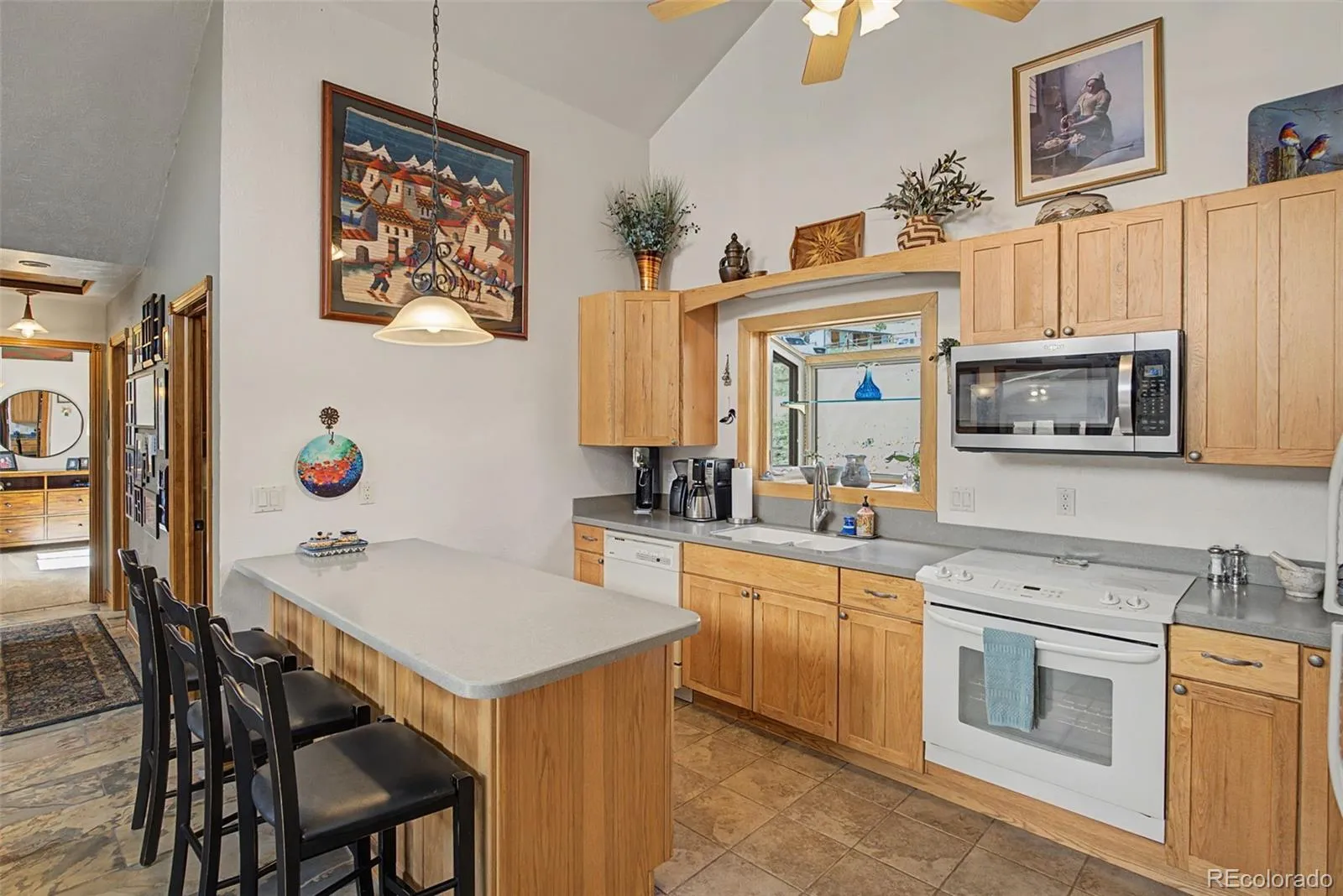 full accompanied kitchen includes counter seating space, creating a natural flow for daily living