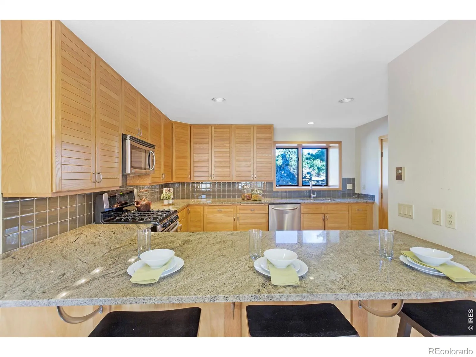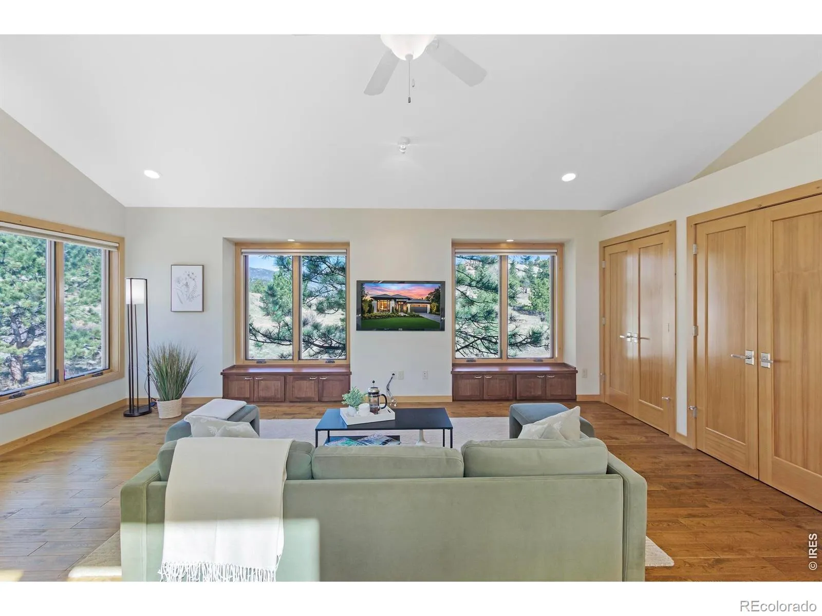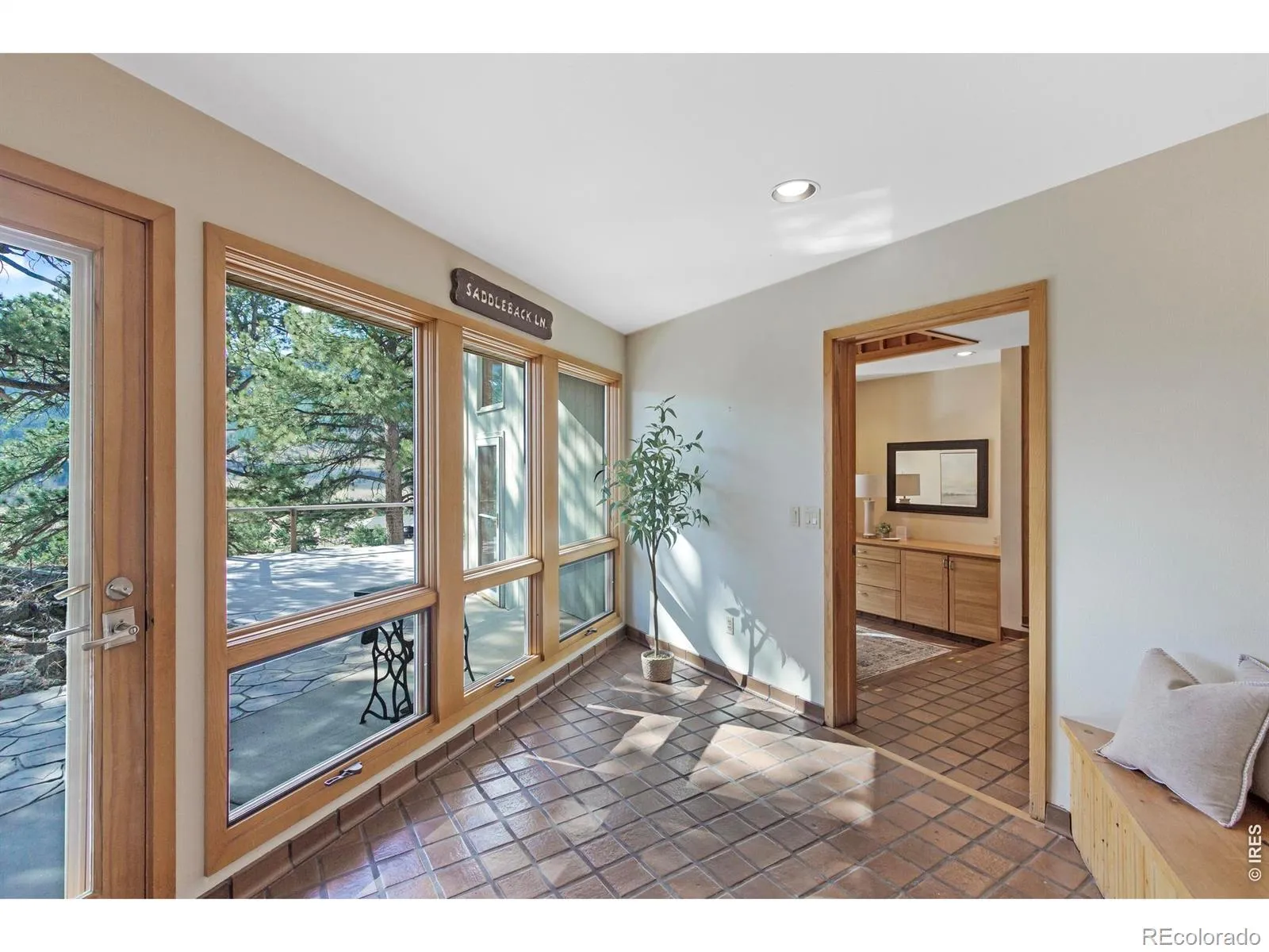 This stunning custom residence was built with a double-wall, envelope-style construction. It offers breathtaking mountain views and a range of luxury features. This is a rare opportunity to own a truly extraordinary property. The chef’s kitchen is complete with a dual-fuel range and oven, a Uline ice maker, and a walk-in pantry. The wet bar with wine fridge elevates both daily living and special occasions. A moss rock gas fireplace, tongue-and-groove ceilings, and skylights warm the open-concept living area. The home features multiple loft spaces, offering versatility for use as an art studio, reading nook, or additional workspace. The main-level primary suite features a gas fireplace, direct access to the sunroom, a south-facing composite deck, and oversized windows. Highlights of the suite are the custom-designed kitchen/coffee bar and in-floor bathroom heat. The walk-in closet boasts a built-in organizational system. The adjoining five-piece bathroom features marble countertops, a jetted soaking tub, and Grohe fixtures throughout. The home offers two additional bedrooms upstairs. Bedroom 2 features a window seat, a walk-in closet, and a private three-quarter bath. Bedroom 3 also features its own three-quarter bathroom, providing added comfort and convenience. Another highlight of this home is the significant recreation or bonus room, featuring engineered wood flooring and multiple closets. Design drawings available for an extra bedroom and bath. The main-level laundry area is spacious, with a dedicated sink, ample counter space, and room for a second fridge. Outdoor spaces are an extension of the home’s charm. The large composite deck is perfect for outdoor dining, while the sunroom offers a transitional space that can be enjoyed year-round. The natural gas fire pit makes evening gatherings a pleasure. Passive solar design heats the home’s interior. You’re minutes from parks, trails, and shopping, yet far enough removed to enjoy the peace of nature.