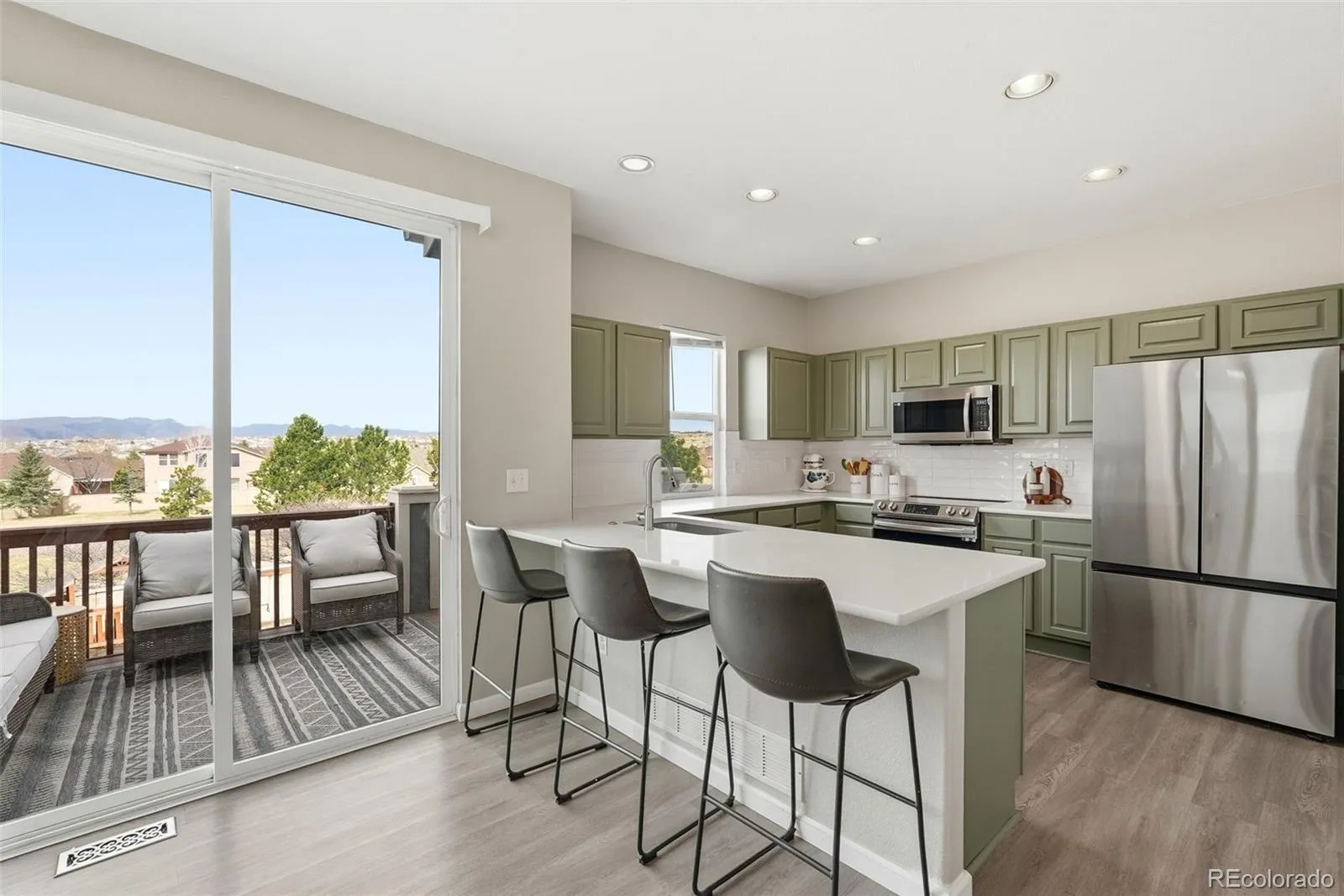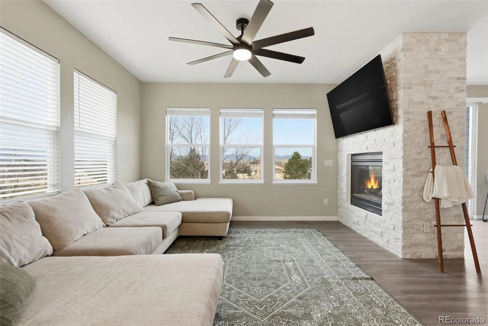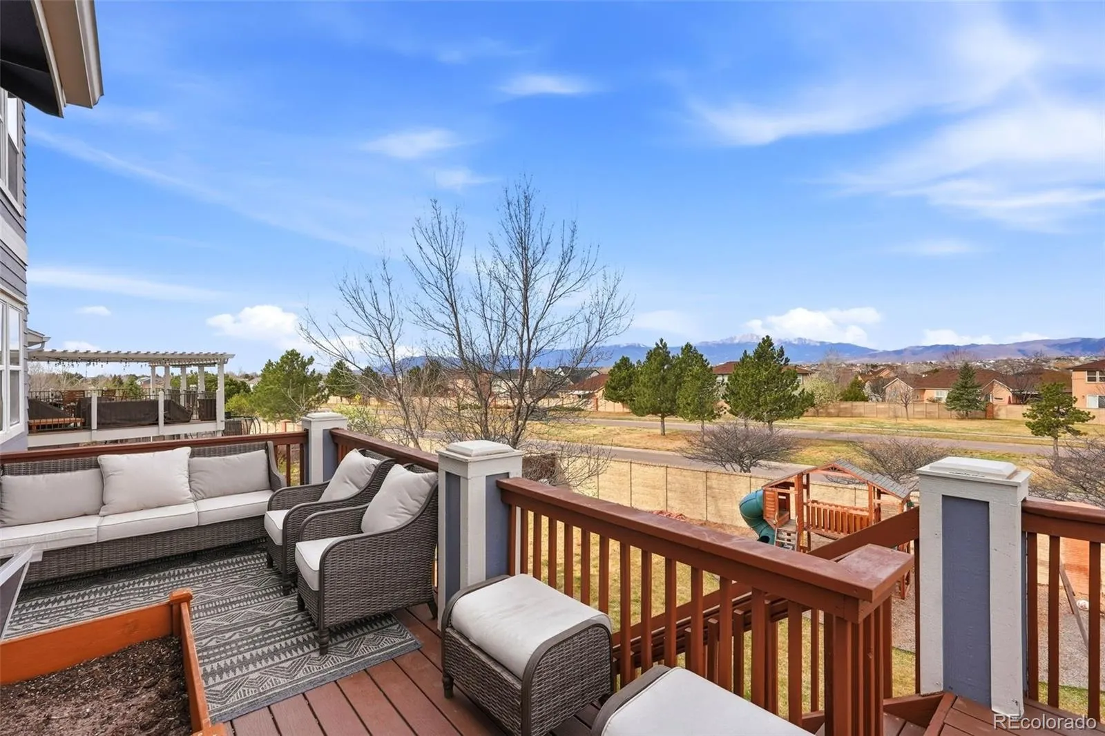 Rare Indigo Ranch gem with breathtaking Front Range views from nearly every room. This beautifully updated home offers 4 bedrooms, 3 bathrooms, a 3-car garage, and a walkout basement. The bright, open main level features a double-sided fireplace, built-ins, and large windows that perfectly frame the mountain views. The kitchen includes sleek black appliances, a breakfast bar, pantry, and a cozy dining nook with additional cabinetry and fireplace ambiance. Step onto the Trex deck and take in the sweeping views, perfect for relaxing or entertaining. The unfinished walkout basement is ready for buyers to finish to their exact vision, complete with a bathroom rough-in and endless potential for added living space. A rare opportunity to own a move-in-ready home with incredible views and room to grow.