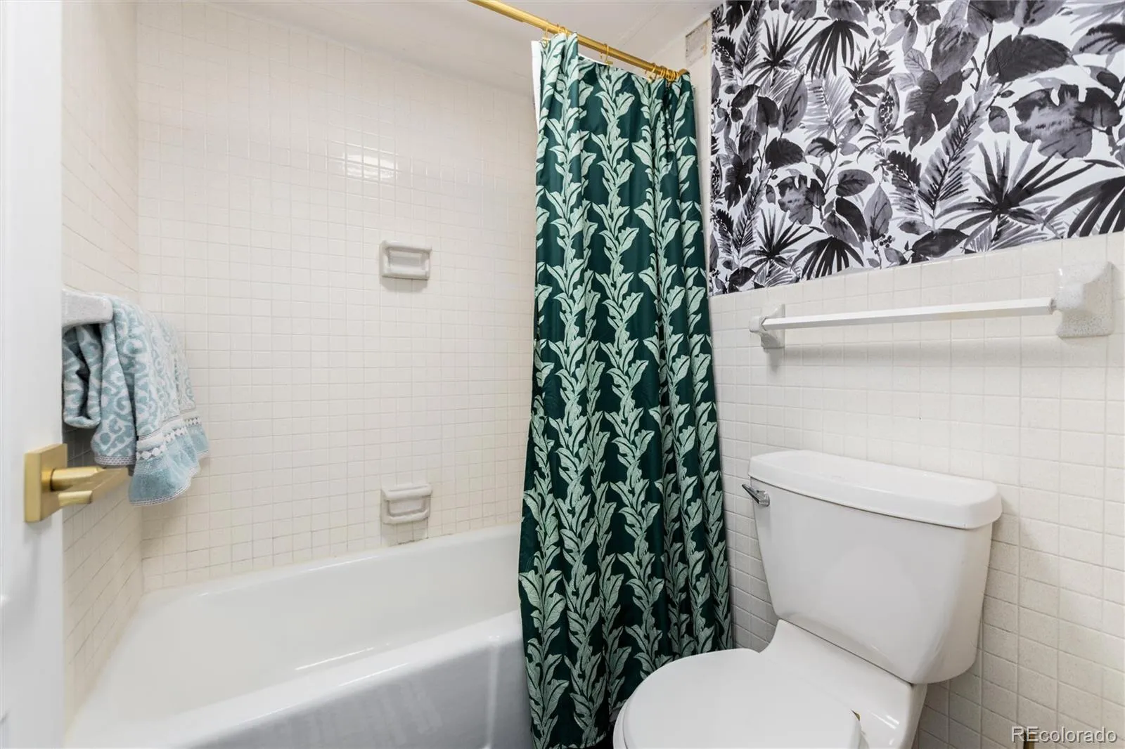 the living space. The bathroom features updated tile flooring and sleek newer quartz countertop for a clean, contemporary