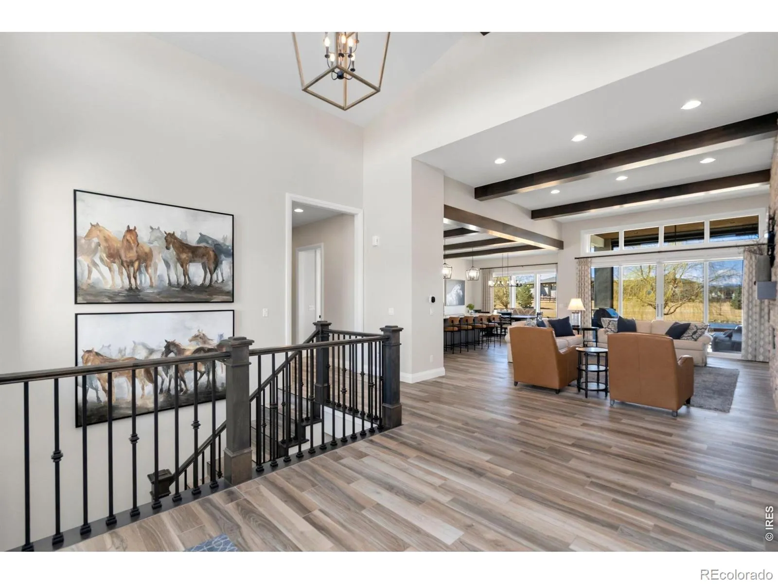 Beautifully crafted by Stonebrook Homes, this custom residence in Harmony Club offers 5,844 square feet of refined living space with serene pond views. The open-concept main level features exposed beams, natural light, a designer kitchen with large island, and a spacious study allowing for flexible living, plus two additional bedrooms.The finished basement impresses with 10-foot ceilings, a generous rec space, wet bar, and three additional bedrooms. Harmony Club offers resort style living with Golf, Clubhouse, pool, state-of-the-art-gym, sport courts and private dining.