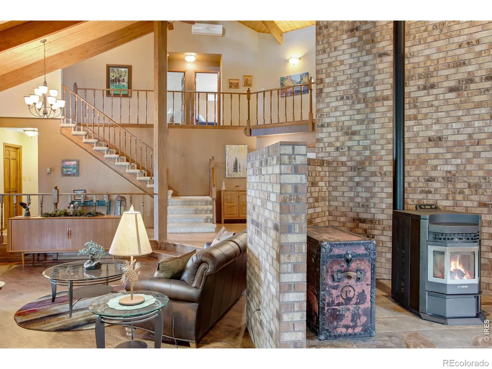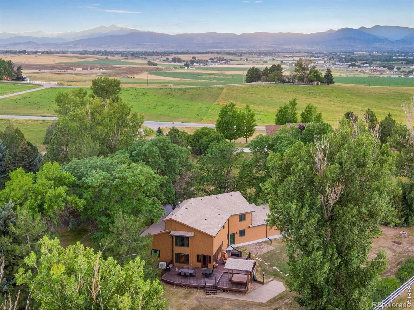 Rare opportunity! Beautiful small acreage in South Loveland perfectly set-up for horses! Situated on 3.3 private acres with mature trees, this 4179sqft 4 bed/3bath home includes a oversized attached garage + additional bay for tool/equipment storage, and a 412sqft detached workshop complete w/ heating and cooling, dust collection system, 220V and 90amp service + carport. Fully fenced pasture w/ 2 horse pens, 2 horse stalls + 422sqft barn, heated auto waterers, power and water. As you enter the home you are greeted with expansive 25′ vaulted ceilings w/ T&G and solid wood beams above, and Australian Cypress floors under your feet. Wonderfully updated kitchen features knotty alder cabinets w/ soft close, granite counter tops, induction cook top, new appliances, and pantry. (2) finished and temperature controlled sunrooms. (2) pellet stoves + (6) mini-split units provide plenty of heat and cooling throughout. Vaulted ceiling in primary bedroom w/ balcony. Finished basement includes additional storage and bedroom. Last, but NOT least, you will love the massive composite deck w/ covered hot tub (included)! Backup propane generator w/ dedicated tank also stays . Fantastic location w/ quick access to I25 from 402 and less than 10min to grocery stores, Home Depot and more!