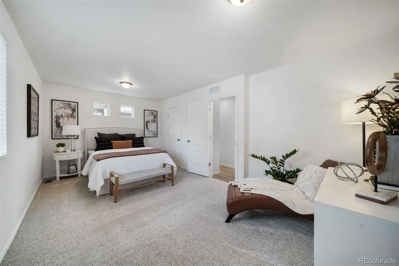 The Muir, modern living at Thompson River Ranch. to a thoughtfully designed two-bedroom, two-bathroom home that brings together open-concept living and everyday ease. The kitchen-centered around a functional eat-in island-flows effortlessly into a welcoming living room, making it an ideal space for both connection and quiet moments. The spacious primary suite offers the comfort you crave, with a large walk-in closet and seamless access to the main living areas-all on the same level for added convenience. Step out onto the balcony just off the living room, and you’ll find a perfect extension of your lifestyle, blurring the lines between indoors and out. This is a representation of a buildable plan however contact us at to see if we have an available home of this plan today! Located in the heart of Thompson River Ranch, just south of the Promenade Shops at Centerra, you’ll live where amenities meet lifestyle. Enjoy two outdoor pools, a fitness clubhouse, disc golf, playgrounds, scenic trails, and year-round community events-all in a master-planned setting that feels like a permanent vacation. Actual home may differ from artist’s renderings or photography.