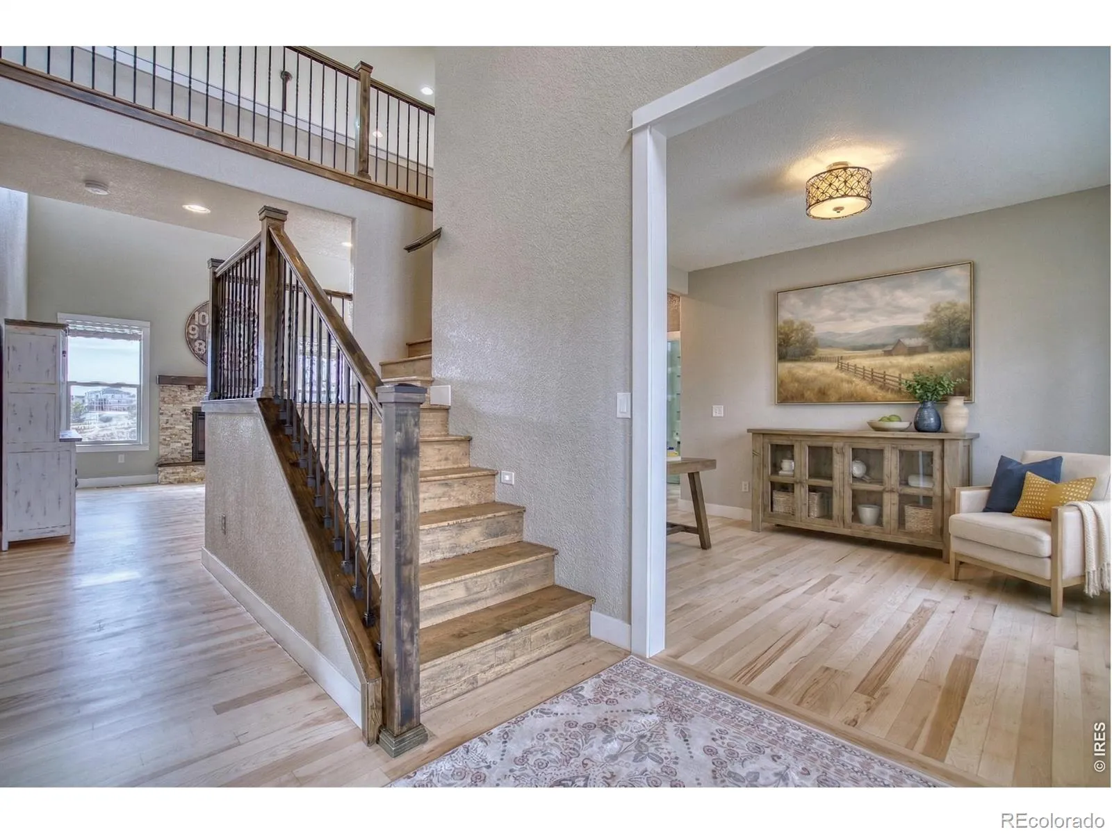 Nestled in a serene corner of Severance, and 15 minutes to Old Town Fort Collins- this beautifully crafted home offers an unparalleled blend of comfort, style, and functionality. Set on a large half-acre lot, fully fenced with mature landscaping and a full sprinkler system, the property provides easy access to walking and equestrian trails, recreational ponds for paddle boarding, and Colorado’s natural beauty at your doorstep. Step inside to discover hardwood floors throughout the home, a tall open ceiling in the living room, and an inviting layout designed for both everyday living and entertaining. The chef’s kitchen is a true centerpiece, featuring two-tone cabinets, tile backsplash, under-cabinet lighting, stainless steel appliances, a shiplap ceiling, and stunning granite countertops. The home offers flexible living spaces for every lifestyle. With two primary suites, one on the main-level provides a private retreat, while the thoughtfully designed second-level primary suite ensures comfort and privacy. Upstairs, a loft provides an additional versatile space, and two additional guest bedrooms. Large picture windows in three bedrooms frame scenic views and fill the home with natural light. Step outside to enjoy an oversized elevated covered deck with breathtaking mountain views or a private front patio overlooking undeveloped northeast land. Practical luxury abounds with a fully insulated, temperature-controlled three-car garage with upgraded doors, a fully framed basement ready for your personal touch, and durable Class 4 Malarkey shingles. Ag water share system keeps summer watering costs low, making yard care effortless. With serene privacy, thoughtful amenities, and a prime location near trails and recreation, this home perfectly blends Colorado charm with modern elegance. Don’t miss the opportunity-schedule your showing today!