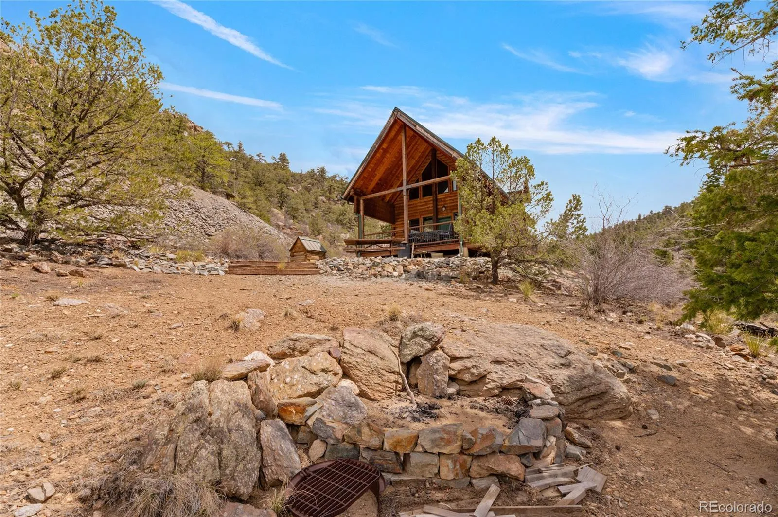 This exceptional property boasts seven patented mining claims, encompassing 66.4 acres of pristine Colorado wilderness. With exclusive deeded road access on Austin Trail, a locked National Forest gate keeps all other motor vehicles away, ensuring your privacy and seclusion are guaranteed. This property is situated near the revered Browns Canyon National Monument and offers unparalleled access to nature’s wonders. Step into the charming 832 sq ft cabin, crafted entirely of solid wood, featuring custom pine D-logs, aspen and pine tongue-and-groove walls and ceilings, and finished aspen banisters. Two bedrooms, one full bathroom, a roomy loft, a full kitchen, and a living room combine for a comfortable space for you and the family. Cozy up next to the wood fireplace in the wintertime with great year-round access. Embrace off-grid living with the Sun Tracker solar system, and a very productive domestic well. The well permitting allows for two additional buildings to be connected to the well, as well as the watering of livestock. Indulge in outdoor living on the wrap-around porch, relax on the suspended porch swing, or gather around the custom fire circle below the cabin for nights under the stars. The cabin offers iconic Rocky Mountain scenery, with clear views of the Collegiate Peaks. Delve into the area’s rich history with access to multiple retired mines, including the Red Fox Mine, boasting over 100 yards tunneled into the mountainside. Gold medal fishing on the nearby Arkansas River and incredible hunting access to the surrounding National Forest within Colorado Game Management Unit 57. The mixed habitat hosts abundant wildlife, including elk, mule deer, bighorn sheep, bears, turkeys, mountain lions, and more. Enjoy nearby mountain biking to world-renowned rafting, or relaxation time at the natural hot springs all within the Salida area. Whether you seek a weekend escape or year-round living, this property offers the perfect blend of tranquility and adventure.
