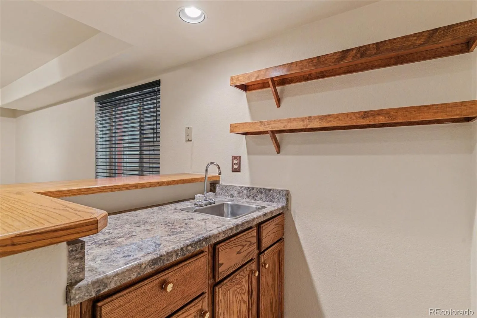 The main floor features a bright living room and formal dining area with vaulted ceilings, providing an open and airy feel. The kitchen offers warm oak cabinetry and flows seamlessly into the inviting family room, complete with built-in cabinetry for added function and charm. The main level includes two bedrooms, highlighted by a spacious primary suite with a private three-quarter bath, as well as a full bathroom for guests or the secondary bedroom. A convenient main-floor laundry room adds to the ease of everyday living. The finished basement expands the home’s versatility with two additional bedrooms, including a large bedroom with a walk-in closet and a non-conforming bedroom (no closet). A generous bonus room with a wet bar creates the perfect space for entertaining, media, or relaxation. Behind French doors, you’ll find an additional room ideal for a home office, study, or craft space, featuring beautiful built-in wood shelving. Additional updates include a newer roof with Class 4 impact-resistant shingles, 5-inch gutters, and a 50-gallon water heater, offering added value and peace of mind. Enjoy the benefits of HOA-maintained grounds and snow removal, allowing for truly low-maintenance living. The home also includes a two-car attached garage with built-in shelving for extra storage. A rare opportunity in this desirable community, this home stands out with its finished basement and abundant additional living space. Don’t let this one get away!