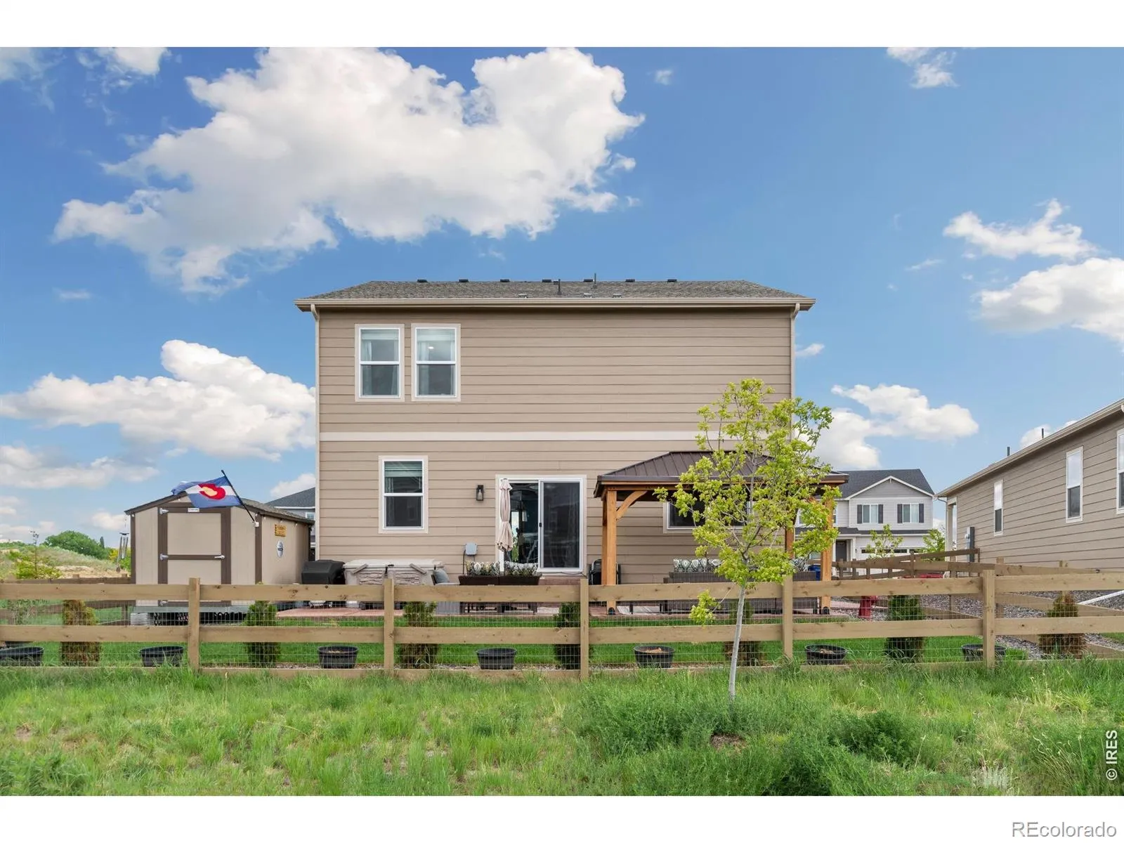 Welcome to the best lot in the neighborhood-packed with upgrades to upgrade your Colorado experience! Tucked in the back of the Northridge subdivision and facing the future Eagleview Park (City of Greeley scheduled completion 2027), this beautiful 4-bedroom, 2.5-bath home offers the rare combination of convenient location and the elbow room you’ve been searching for. As you step inside, notice the fun upgrades throughout the home, such as the custom height storm door to let the breeze in on a spring day. Just inside, you’ll find a versatile front office bonus room and a bright, open-concept layout that seamlessly connects the kitchen, dining, and living areas-complete with thoughtful storage and a convenient half bath. The attention to detail shines through in every corner of the home with special upgrades like the gas stove, an extended front patio that will one day overlook the new park, and the discrete dog door. And then…there is the backyard. Step straight out of the dining area onto your 30-foot-wide stained patio, where native grass open space stretches out on two sides. Whether you’re hosting, relaxing, or simply soaking up the Colorado sunshine, the pergola with electricity (yes-it stays!) makes this outdoor space truly special. Storage won’t slow you down here, thanks to an included Tuff Shed and an extended garage-with just the right bump out to actually be useful for fitting your full-sized pickup, home gym, hobby space, or extra storage. Upstairs, a welcoming open hallway leads to a peaceful primary suite with open space views, a generous closet, and private bath. You’ll also find three additional bedrooms on the same level, a hallway bath with double sinks, and a laundry room roomy enough for folding and storage. This home has been lovingly maintained, inspected, and all items on the report were addressed. Schedule your showing today!