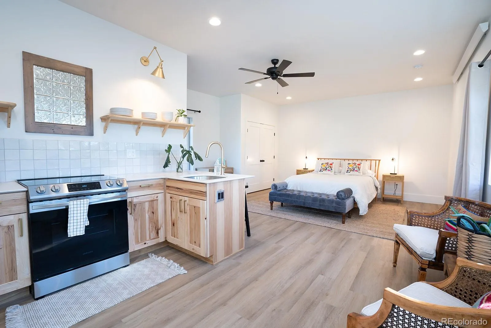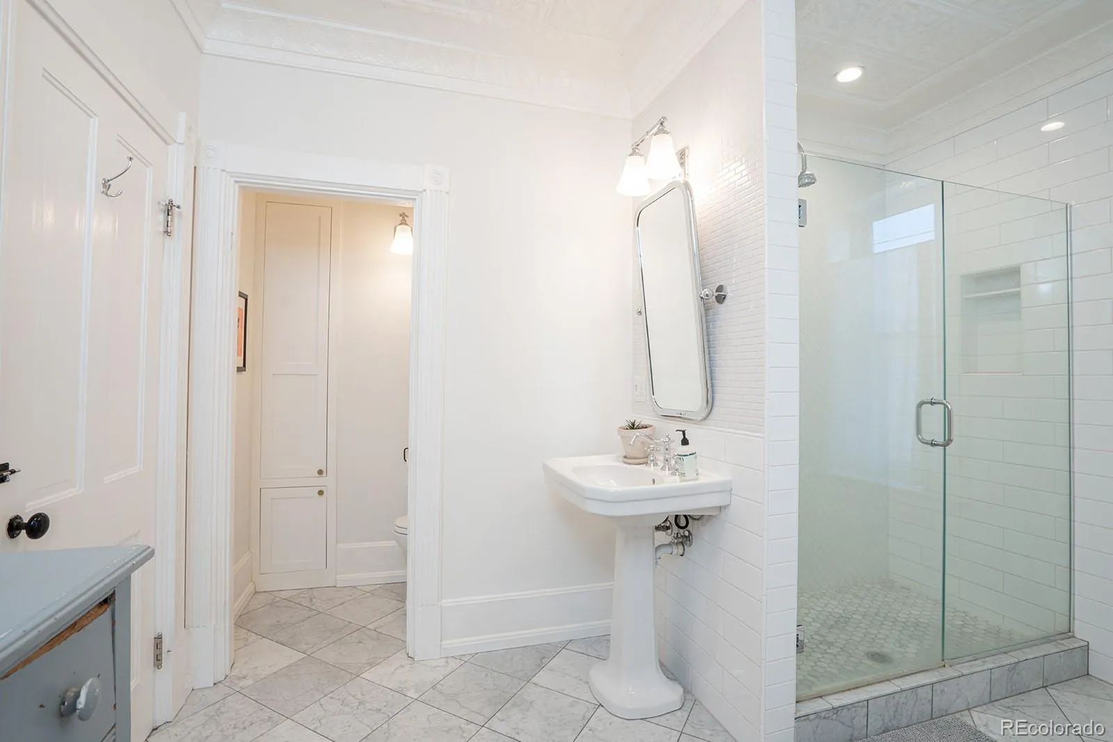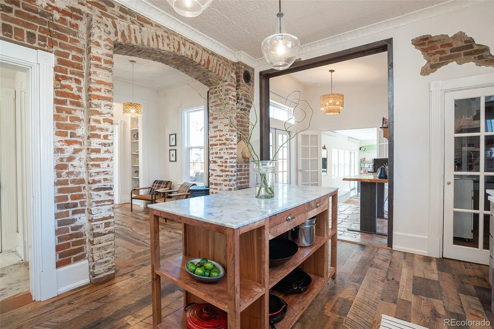 Spanning 3,425 square feet with five bedrooms and four bathrooms, this home balances timeless craftsmanship with modern comfort. Original double walled Salida brick exterior walls, original hardwood floors, artisanal hand-painted concrete floors, arched windows, built-ins, and elegant openings honor its turn-of-the-century construction, while updates such as in-floor radiant heat, Andersen windows, and modern renovations ensure everyday livability. The newly constructed 2023 attached apartment offers fully independent living with a private kitchen, bath, and entrance.