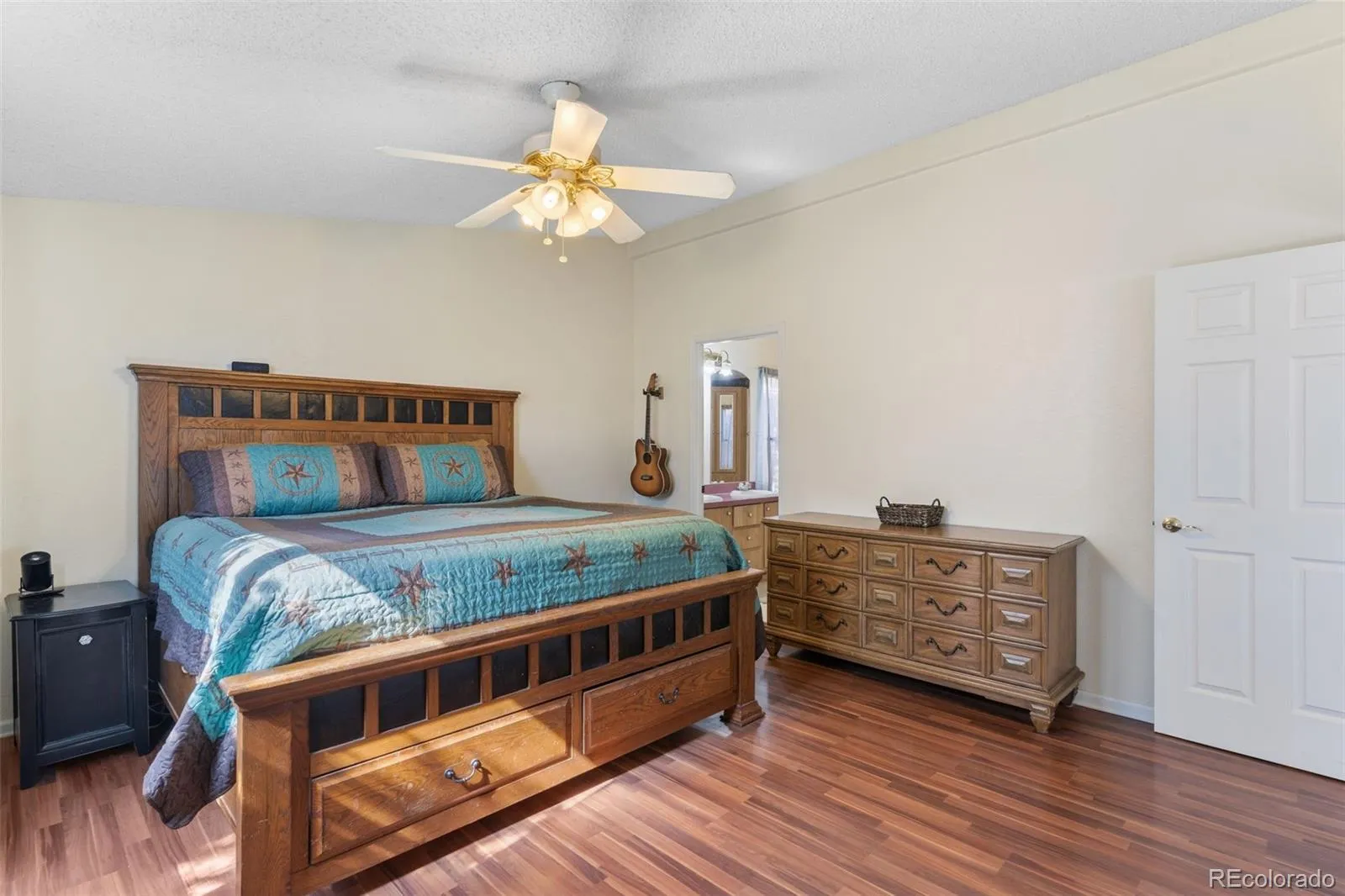 Don’t miss this ranch-style home nestled in a small, quiet and friendly neighborhood just east of Colorado Springs – away from the hustle and bustle, yet still conveniently located. Situated on a spacious ¼-acre corner lot, this home offers easy main-level living with an open-concept floor plan, vaulted ceilings, and a double-sided wood-burning fireplace that creates a warm, inviting atmosphere in the home. The large country kitchen features a new refrigerator, new dishwasher, pantry, and offers plenty of space to add an island or small breakfast table. Each bedroom includes its own walk-in closet, and the primary suite is thoughtfully separated from the additional bedrooms, complete with an adjoining five-piece bath for added privacy. An enclosed back porch provides the perfect setting for hobbies, projects, or a versatile flex space to suit your needs. Additional features include a detached 2-car garage (new door), mature trees, a concrete circular driveway, a fenced backyard, an oversized wood storage shed, and newer water heater. With local schools just a short drive away and an easy 20-minute commute to Schriever Space Force Base, this home offers a great balance of location and livability. Come and see all this property has to offer at an affordable price!
