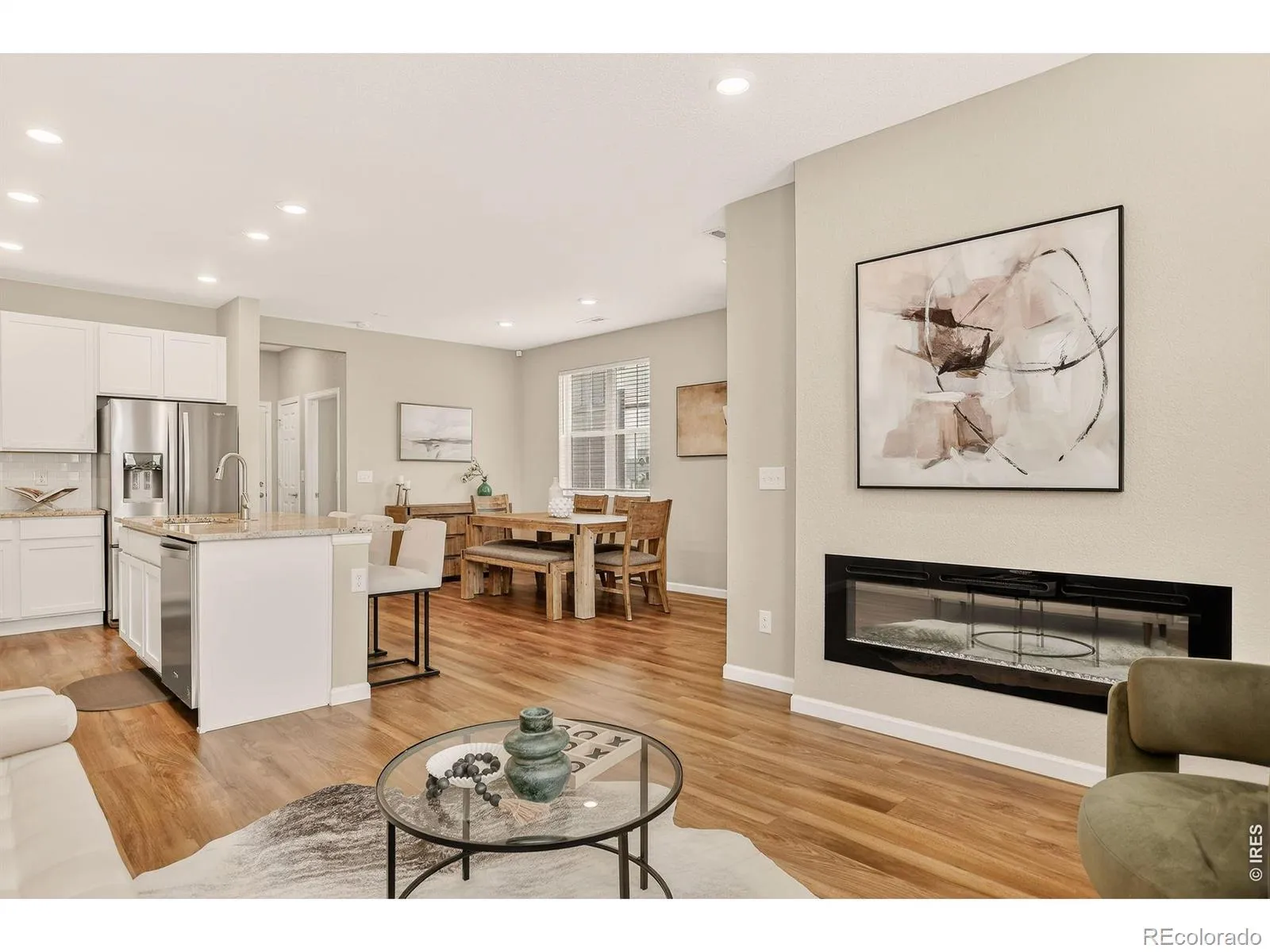 Fresh, modern, and well-maintained, this end-unit townhome in Erie Commons stands apart with its light-filled interiors and livable design.The main level unfolds with an easy, open feel-where the living, dining, and kitchen spaces come together conveniently whether you’re hosting friends or enjoying a quiet night in. The kitchen features timeless white cabinetry, granite counters and an expansive center island with bar top seating. The adjacent living room has a sleek gas fireplace, large windows & recessed lighting. Upstairs, the primary suite offers a calm retreat, complete with a spacious walk-in closet and an expansive bathroom with a large soaking tub, designed for unwinding. Also, you can enjoy a quiet morning moment on the sunlit private deck retreat off the primary suite. Two additional bedrooms and a full bath provide flexibility for guests or a home office The upper level laundry room includes a washer and dryer, plus additional space for storage or customizations to fit your lifestyle. Multiple closets on the main & upper levels provide ample organization opportunities and storage space. Outside, the covered front porch is an inviting spot to relax, while the community offers pathways and areas to enjoy the Colorado sunshine. There is an attached two-car garage keeping daily life convenient. The location is a true highlight-step out your front door to the Coal Creek trail. This townhome is just moments from Erie Community Park, Library, Community Center, and an easy stroll to the charm of downtown Erie with its local restaurants, shops, and cafes. The neighborhood pool and playgrounds add to the appeal, offering spaces to unwind, connect, and enjoy Colorado’s sunny days.