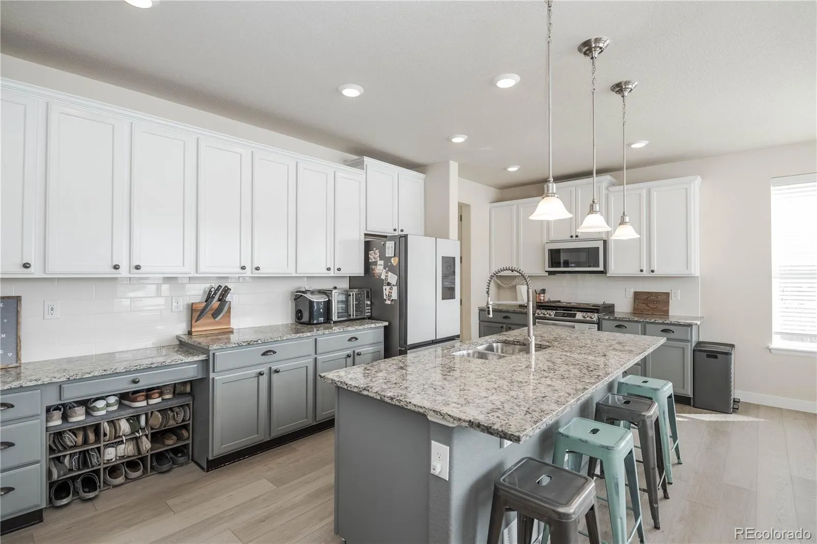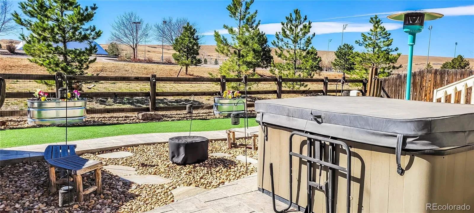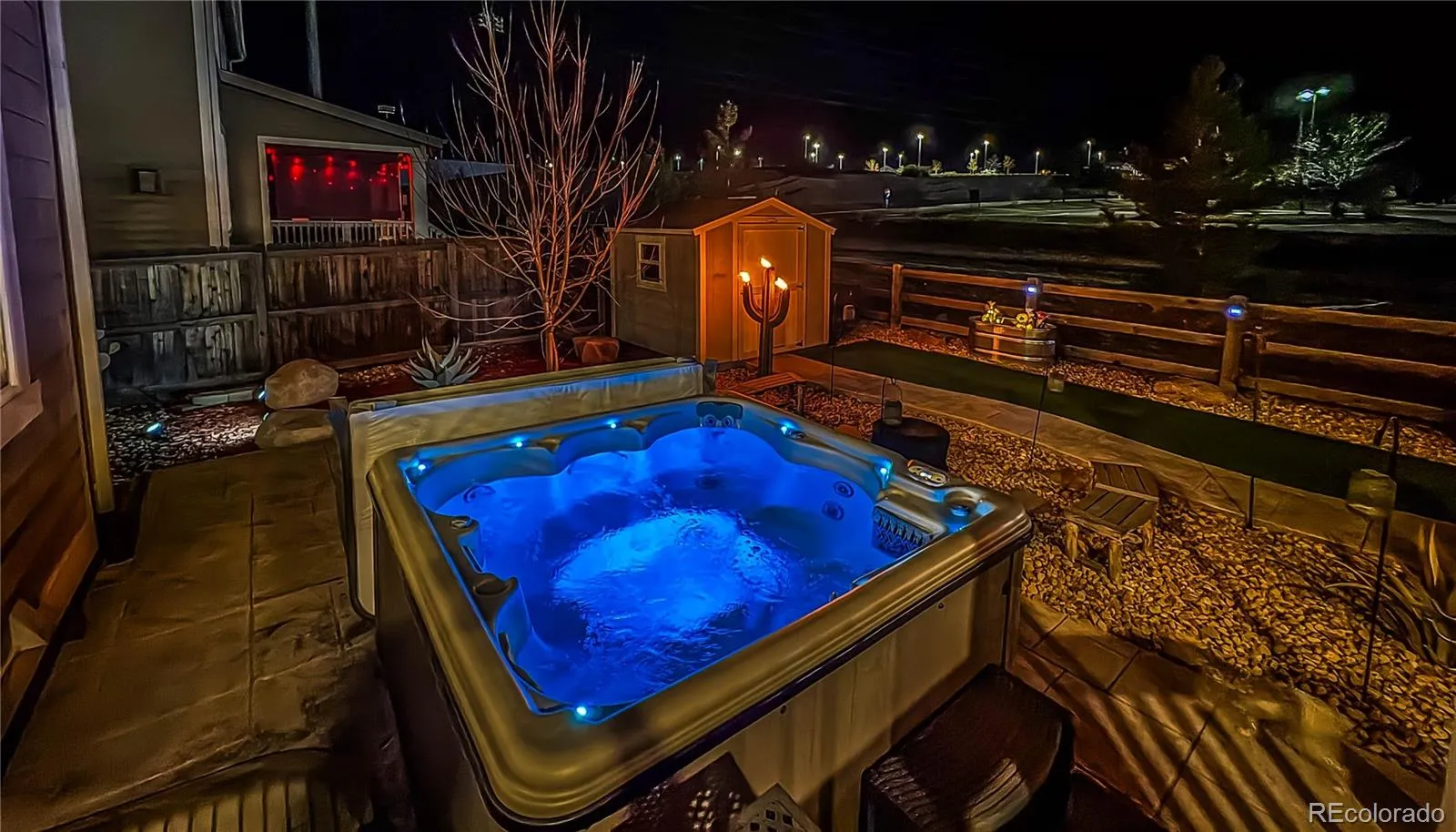 This beautifully maintained Parker Homestead home blends comfort, space, and professional upgrades. This two-story home offers a bright, open layout designed for everyday living. The main level offers a spacious study/office, a large living room with a gas log fireplace, and a 1/2 bath. The kitchen, the heart of the home, features granite countertops, a large island, Samsung Bespoke appliances, a generous pantry, a mudroom, and a dining area with an open view of the outdoors. Upstairs, the primary suite feels like a personal retreat with an expansive walk-in closet. The beautifully remodeled five-piece primary bath includes a dual sink vanity, granite counters, a stand-alone soaking tub, and a spacious shower. Three additional bedrooms, a large family room, a full bath, and the conveniently located upstairs laundry make daily living tasks simple. The professionally finished basement offers over 1,100 square feet of space containing a movie room, game room, a workout room or 5th bedroom, and a 3/4 bath. Step outside to a fully fenced yard with a covered patio, hot tub, custom landscaped backyard space, and a large storage shed. A three-car attached garage, central air, and assumable lease solar panels are included in this terrific home. Located near the Echo Park stadium, neighborhood parks, trails, schools, and everything Parker has to offer.