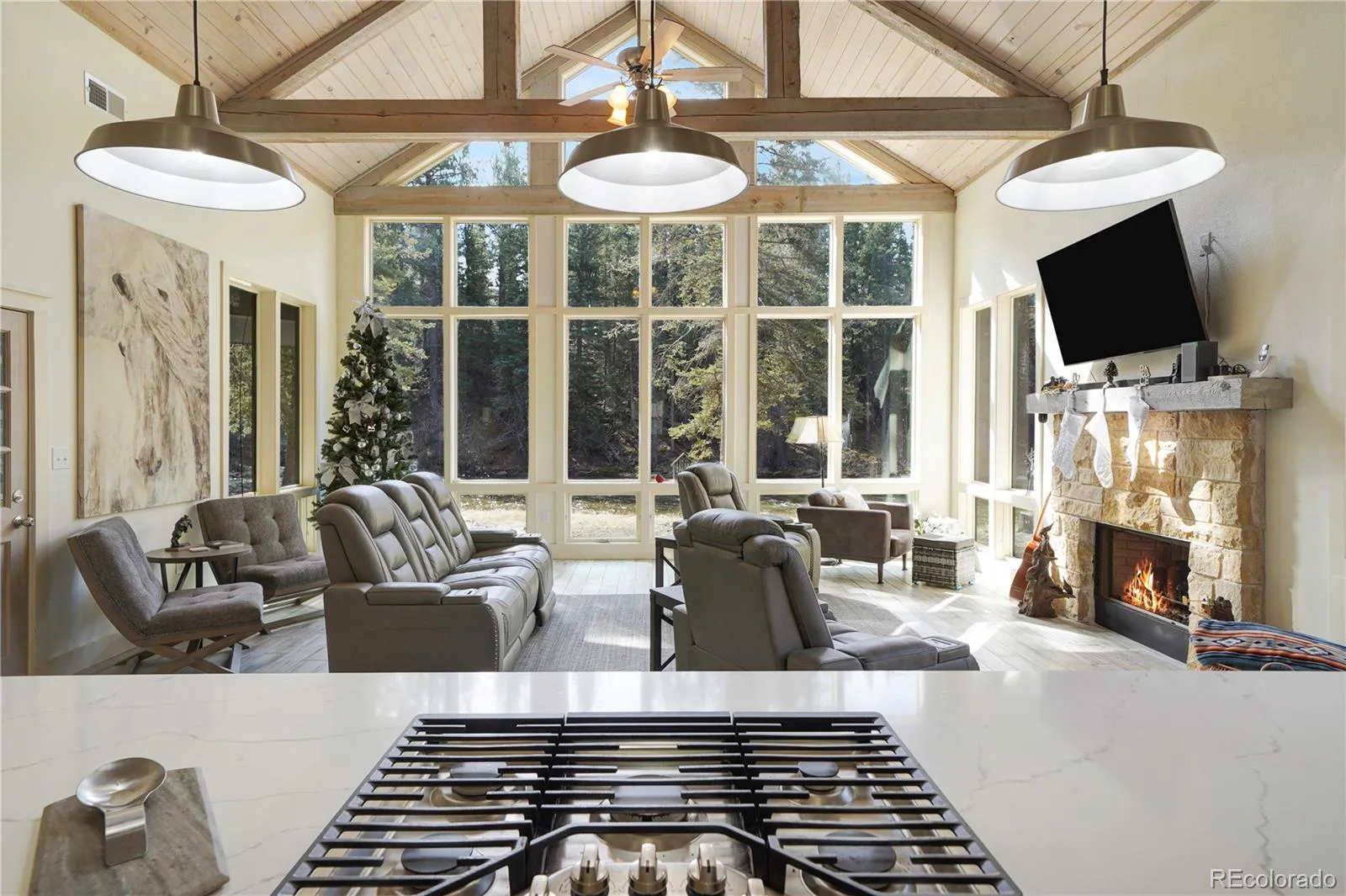 The riverfront home you’ve been waiting for! Set on a prime riverfront lot, this newly built home showcases a stunning wall of windows framing serene water views and abundant wildlife. The great room features soaring ceilings with wood beams, creating a bright yet cozy space anchored by a fireplace. The kitchen is well appointed and a popular place to hang out while your family chef is preparing the meal. A formal dining area sits just off to the side, surrounded by windows that bring the outdoors in.